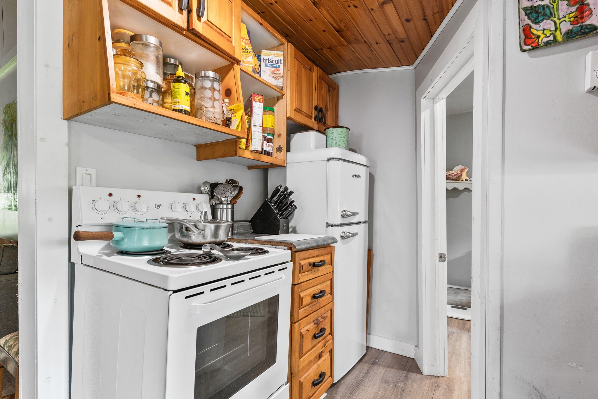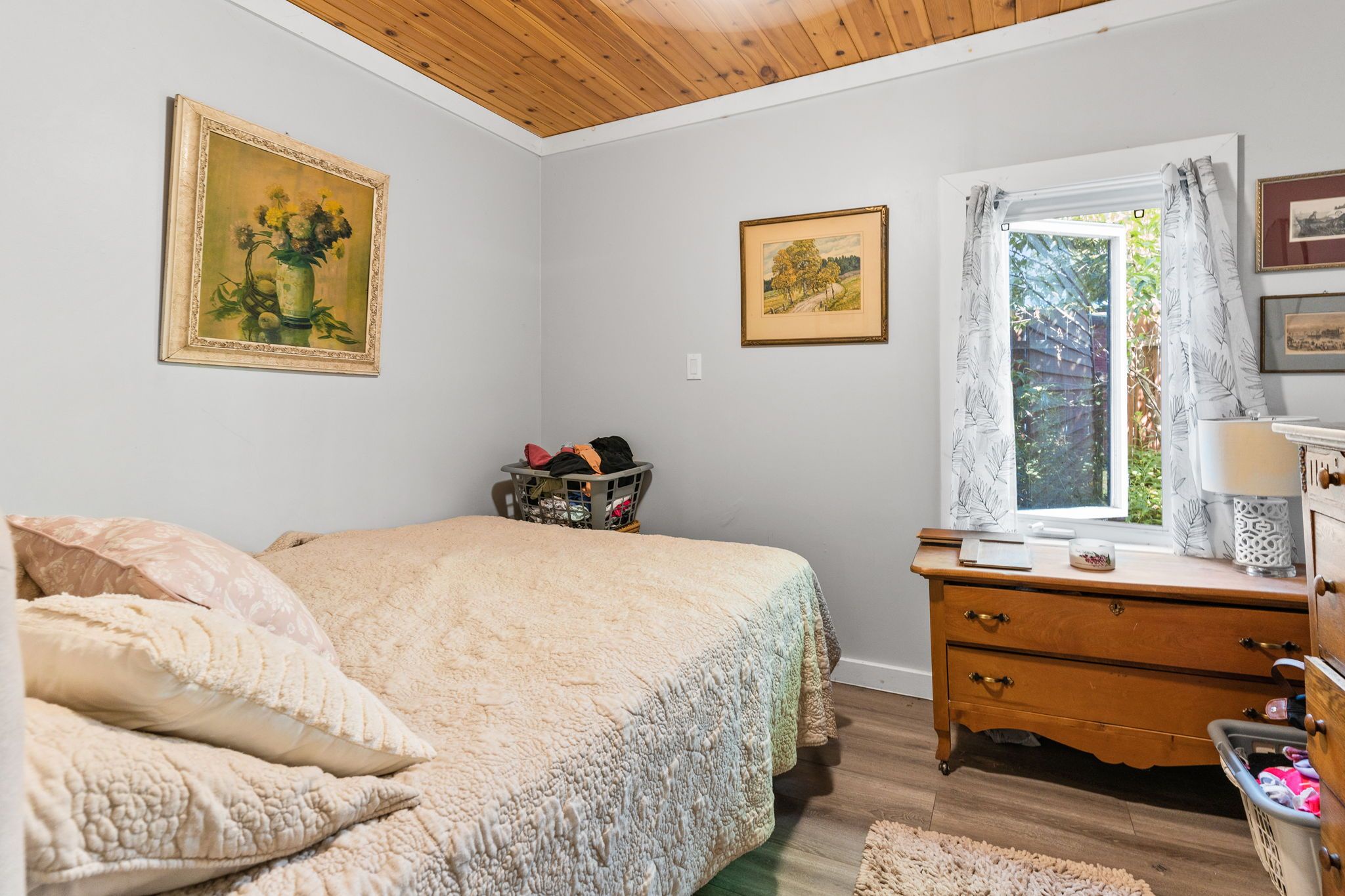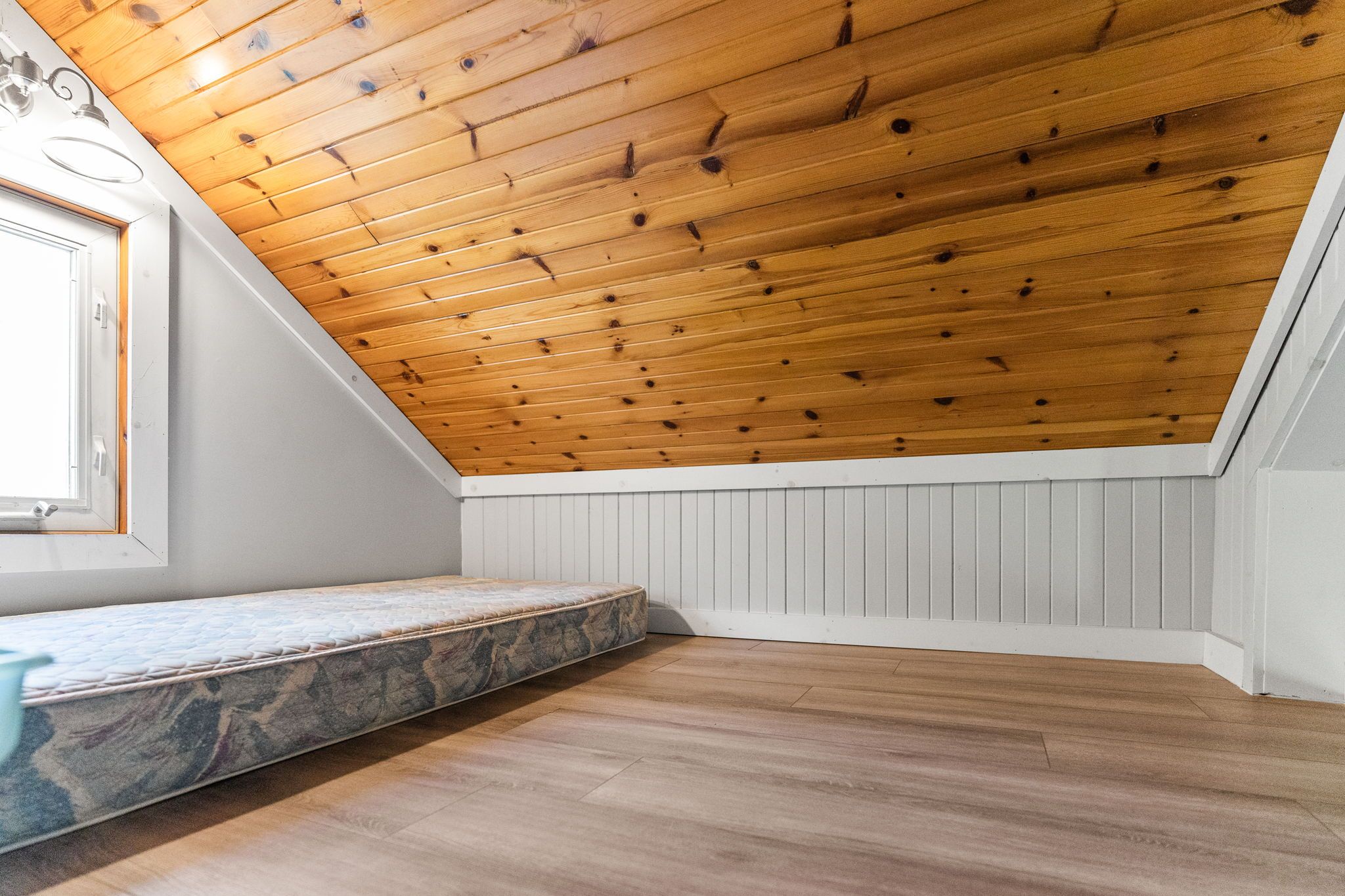 这座迷人的平房带阁楼,坐落于哈利伯顿县明登山(Minden Hills)古雅社区。这套两卧室住宅占地48.12×107英尺,后院无邻,私密性极佳。带顶棚的前廊通向宽敞的玄关,内置洗衣柜配备全尺寸洗衣烘干机。舒适的客厅拥有漂亮的松木拱形天花板和新款丙烷壁炉,为寒冷夜晚增添温暖。餐厨一体的厨房采用温馨的松木橱柜,配备复古风格冰箱和电炉——所有电器仅使用1年。主层设两间卧室、升级的三件套浴室(带站立式淋浴)以及通过木梯进入的 bonus 阁楼空间。全围栏后院、大型储物棚和三车位停车区一应俱全。