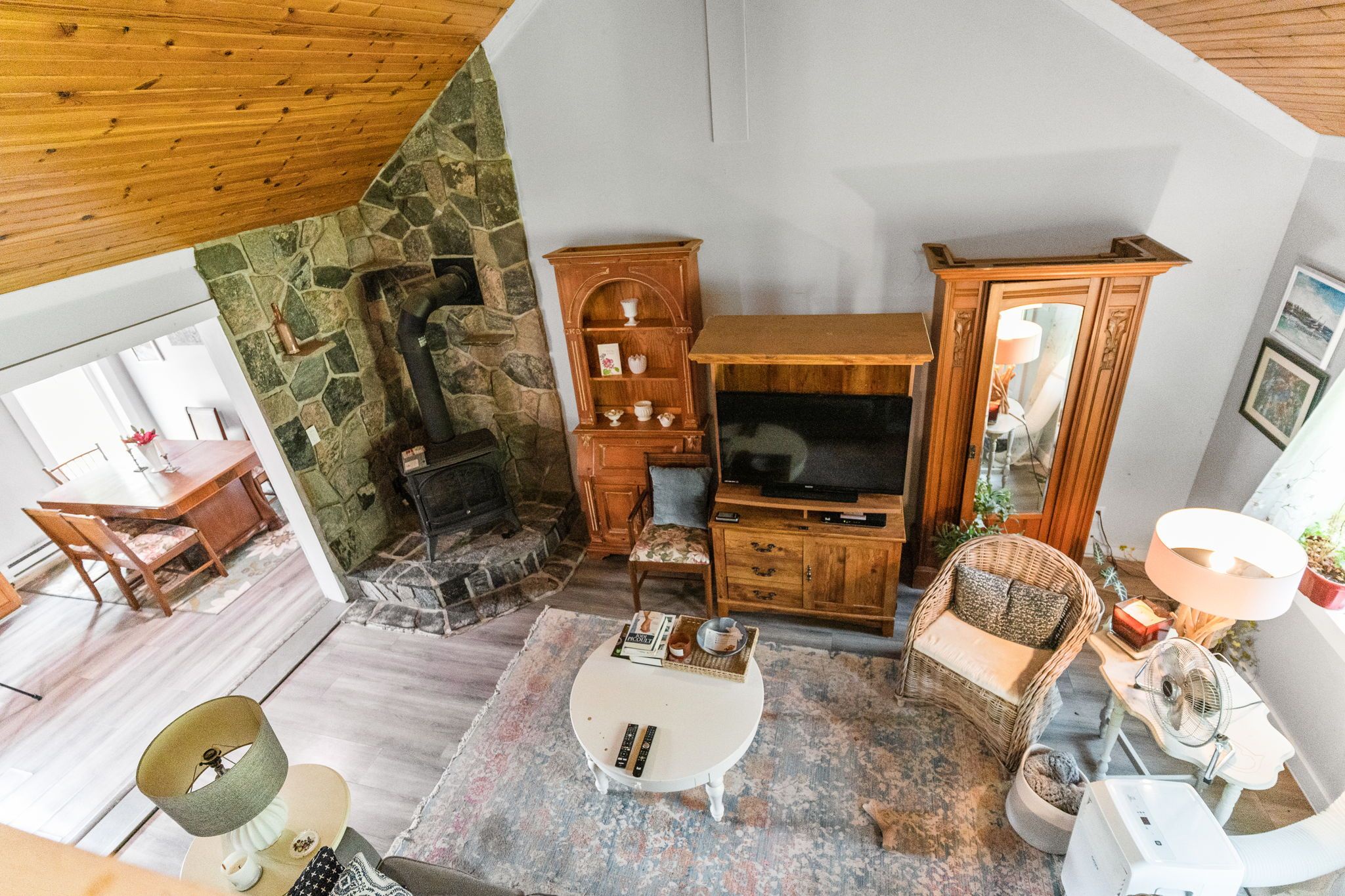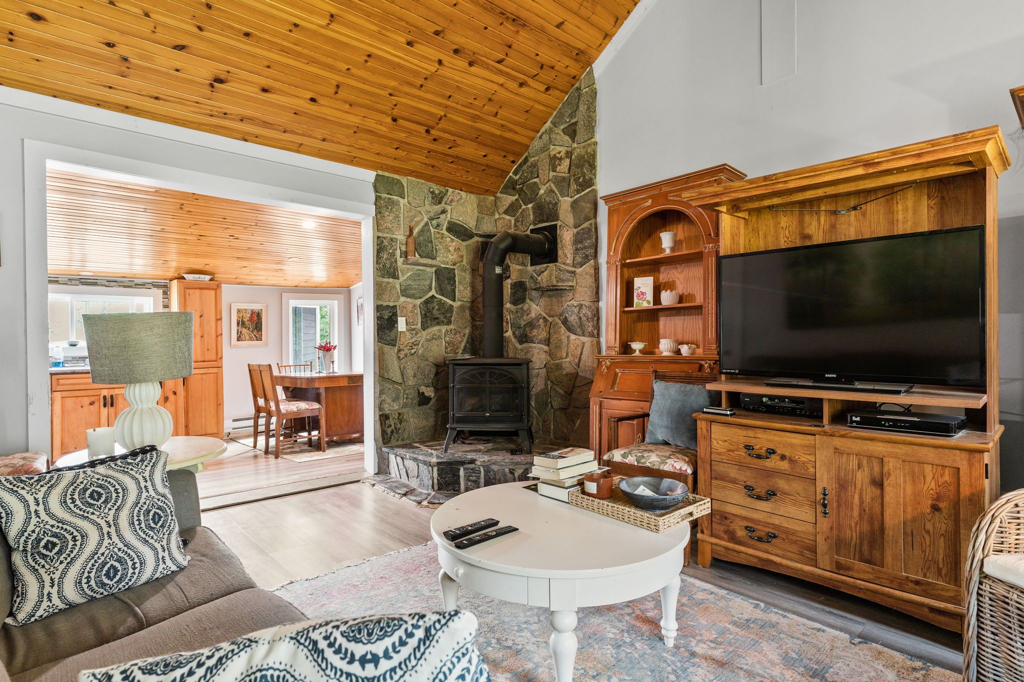 Charming bungalow with loft located in the quaint community of Minden Hills, Haliburton County. This 2-bedroom home sits on a 48.12 x107 lot - offering privacy with no rear neighbours. A covered front sitting area leads into a spacious entry with a laundry cupboard including full-size washer/dryer. The cozy living room features beautiful pine vaulted ceilings and a newer propane fireplace, perfect for chilly evenings. The eat-in kitchen offers warm pine cabinetry and comes equipped with a retro-style fridge and an electric stove - all appliances just 1 year old. There are two bedrooms on the main floor, an updated 3-piece bath with stand-up shower and a bonus loft, accessed by a wooden ladder. Enjoy a fully fenced backyard, large storage shed, and parking for 3 cars. Additional features include a new foot valve in the dug well, a 3-year-old owned hot water tank, and a recently pumped holding tank (May 2025). Just a 3-minute drive to Mindens S.G. Community Centre a modern facility opened in 2020 featuring a fitness centre, full-sized gymnasium for basketball, volleyball, pickleball, and badminton, plus a 2-lane, 200-metre indoor track perfect for winter walks or rainy days. The highlight is an NHL regulation-size ice rink with six change rooms and seating for 294 fans and standing room for 90, home to the Haliburton Huskies Junior A team, the Highland Storm, and the Minden Figure Skating Club. Located only 10 minutes to a beautiful public beach on 12 Mile Lake and close to downtown Mindens shops, restaurants, Kawartha Dairy, pharmacy, urgent care clinic and more. Outdoor enthusiasts will love nearby Gull River and the world-class Minden Wild Water Preserve. A perfect year-round home or seasonal retreat for summer lakeside living and winter snowmobiling. The community is surrounded by many beautiful Kawartha Lakes!