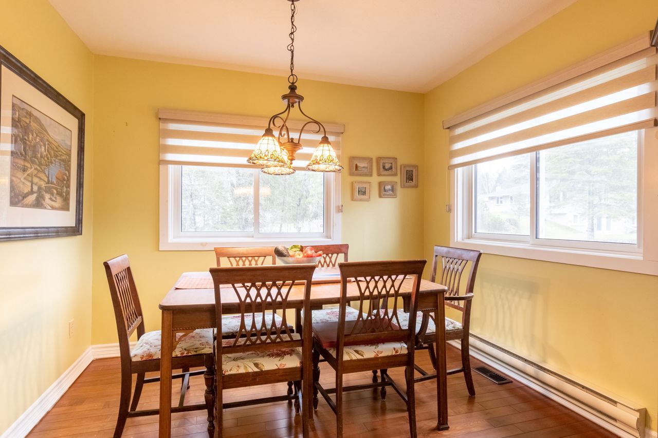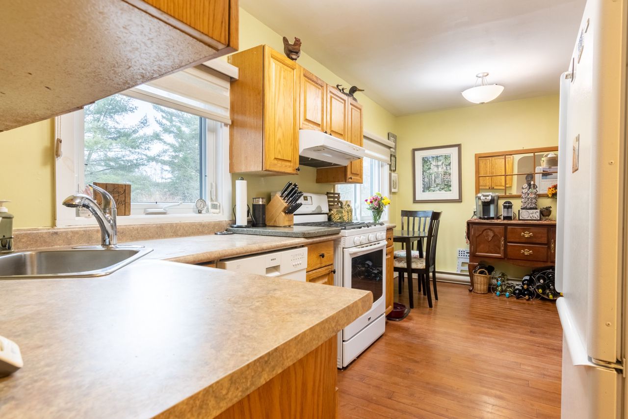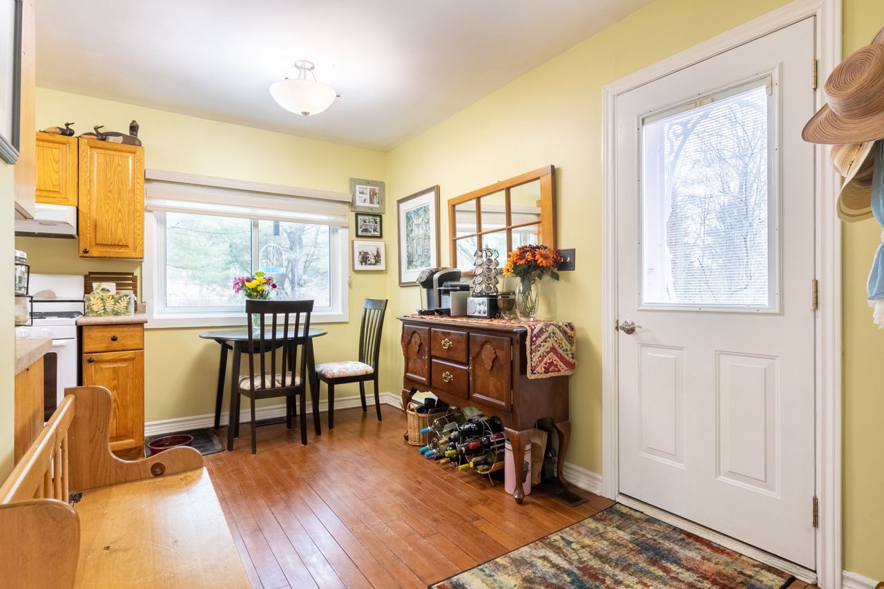 a walk out to the back deck. Dining Room for quiet dinners. The Eat In Kitchen offers a view of the river while