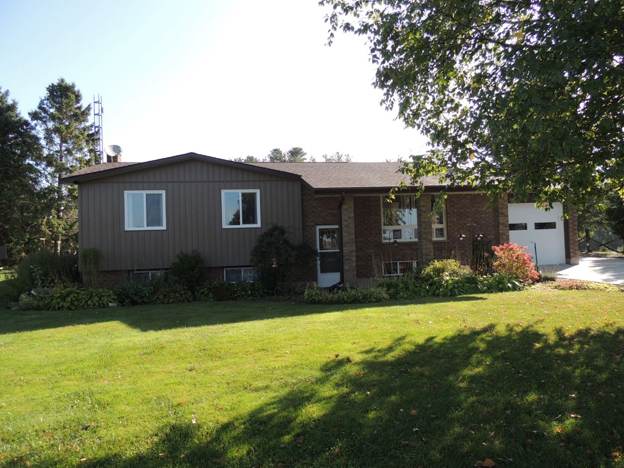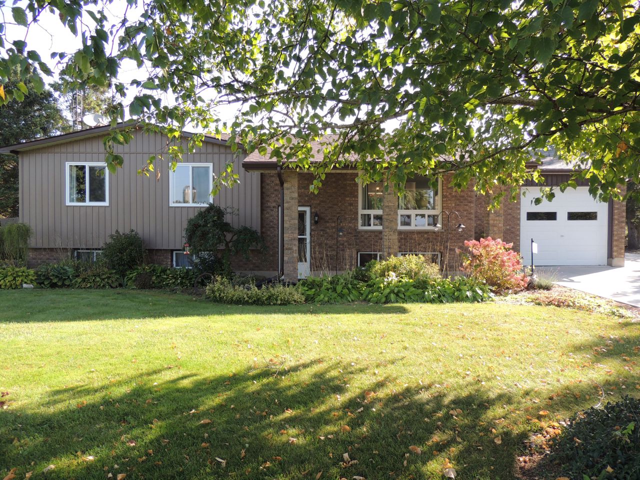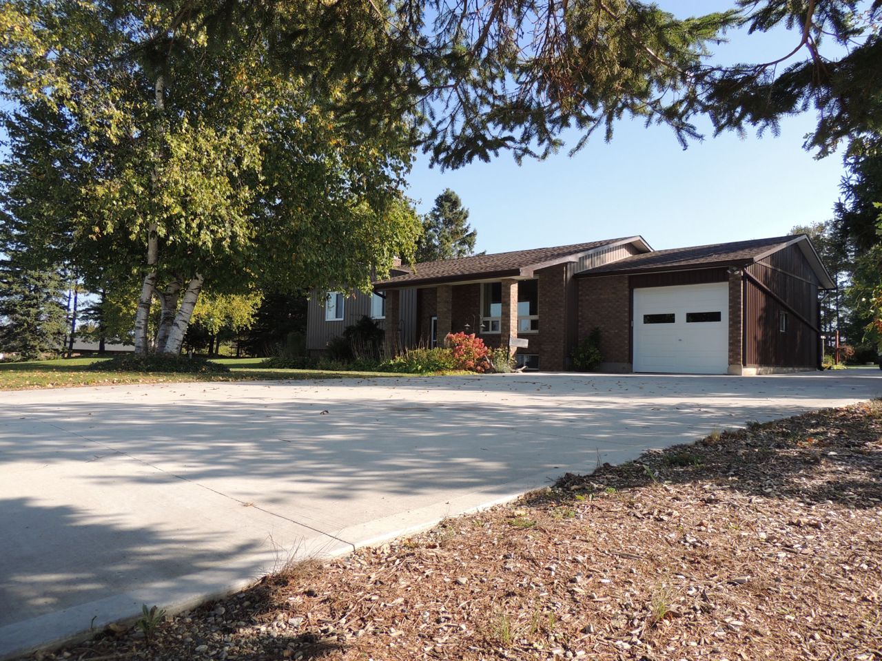 Sunlight pours into this bungalow on a beautiful 1.37 acre lot on dead end road just 10 minutes to Mount Forest. New siding, roof, windows and doors (2023). Three bedrooms and spacious bathroom on the main level. Open living room, kitchen and dining rooms with walkout to covered patio. Big deck, pergola and garden shed enhance the outdoor living space. The lower level of the home is finished with a family room, 4th bedroom and huge storage room with interior access to the attached garage. Concrete driveway with lots of parking. Backup generator (9000w), central air and central vac. Internet provider is Netflash. Drilled well at south boundary just beyond concrete drive. Septic at north east corner of house. Hydro $146/month equal billing. Propane $3100/ year includes tank rental...current rate is .69cents /litre