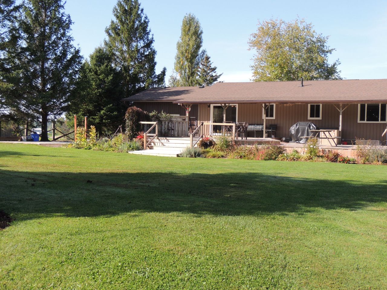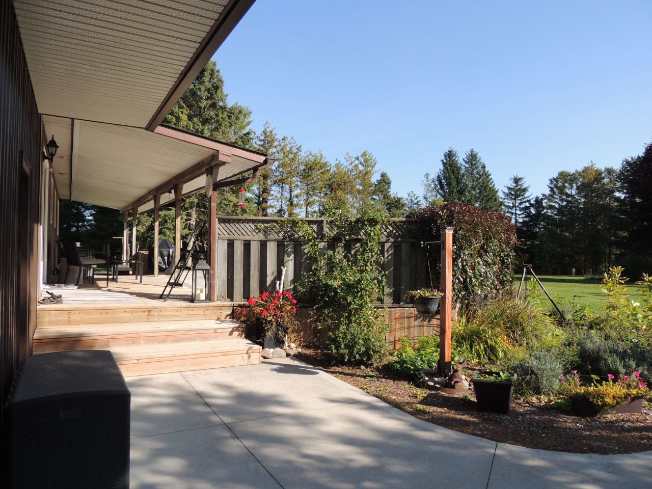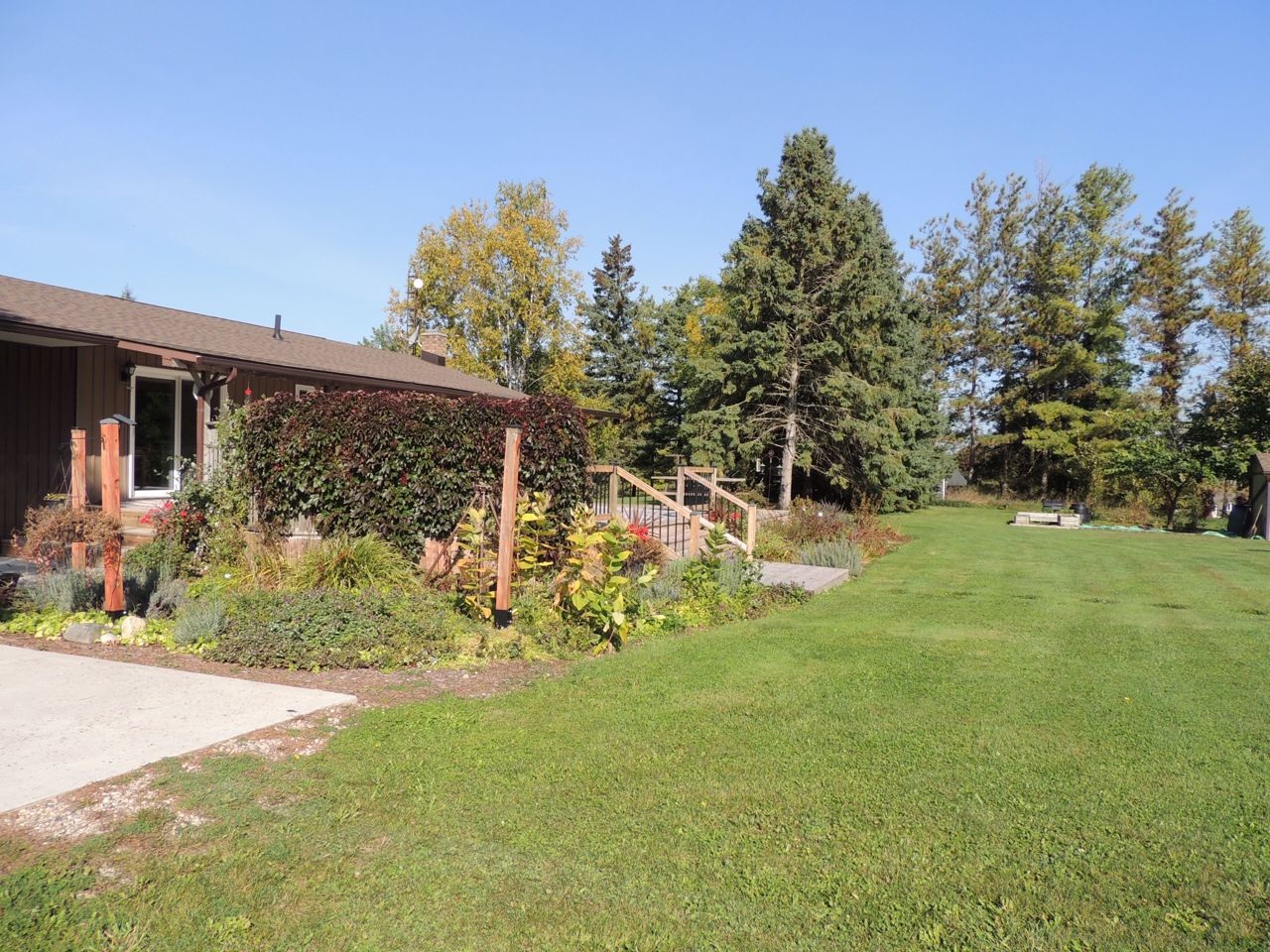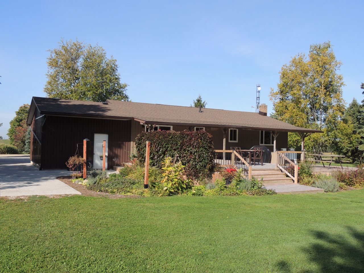 Sunlight pours into this bungalow on a beautiful 1.37 acre lot on dead end road just 10 minutes to Mount Forest. New siding, roof, windows and doors (2023). Three bedrooms and spacious bathroom on the main level. Open living room, kitchen and dining rooms with walkout to covered patio. Big deck, pergola and garden shed enhance the outdoor living space. The lower level of the home is finished with a family room, 4th bedroom and huge storage room with interior access to the attached garage. Concrete driveway with lots of parking. Backup generator (9000w), central air and central vac. Internet provider is Netflash. Drilled well at south boundary just beyond concrete drive. Septic at north east corner of house. Hydro $146/month equal billing. Propane $3100/ year includes tank rental...current rate is .69cents /litre