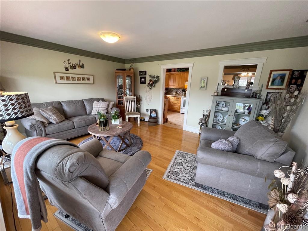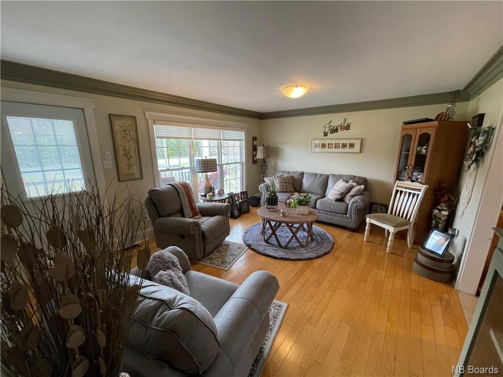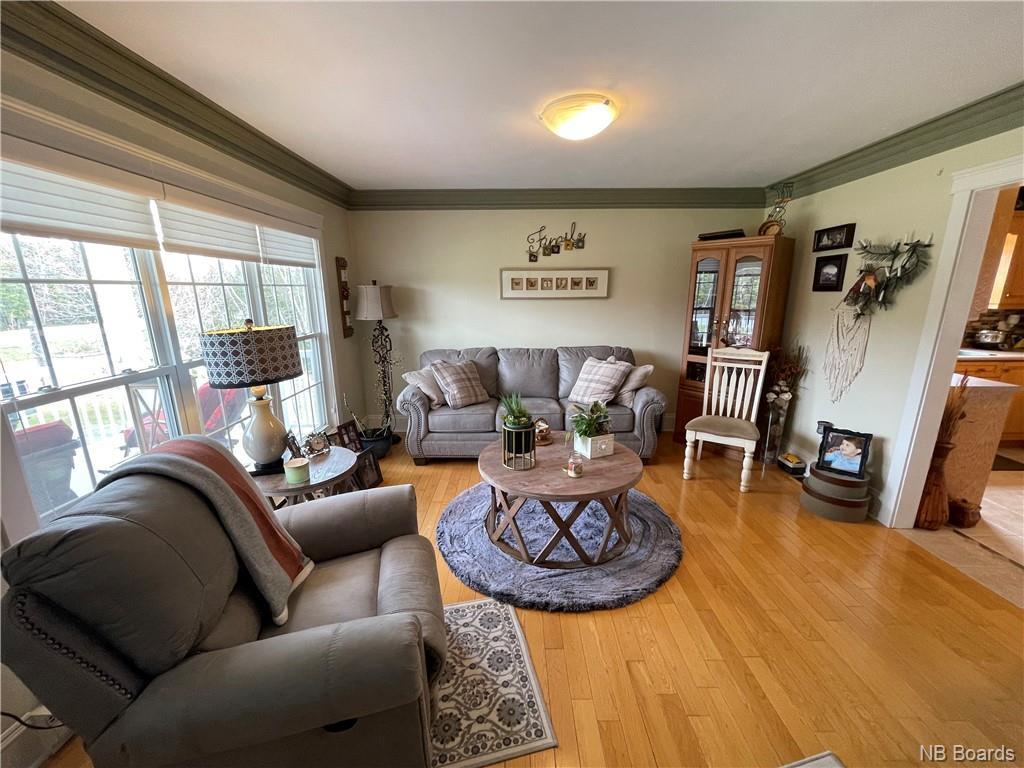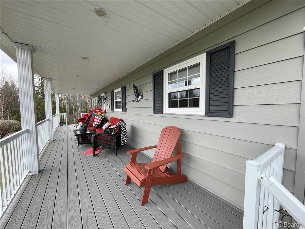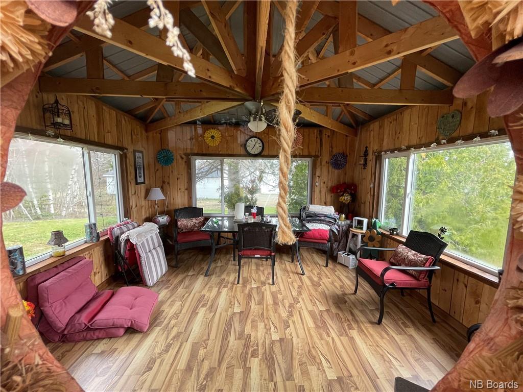 Just listed, Check out this beautiful bungalow with full length covered veranda with steel roof. Comes with a 12'x24' detached single car garage, as well as 14' x 14' Gazebo with steel roof. Its only mins away from Miramichi City. Entering home from the back you'll find open concept den \ mudroom with patio doors leading to side deck, eat in kitchen with oak cabinets, with ceramic floors, tiled backsplash. The living room has hardwood floors and large window allowing lots of light in. The bathroom has a walk in shower, large oak vanity, the Primary bedroom is HUGE, with electric fireplace & had a large walk in closet. It also has another bedroom. The lower level has a family room currently being used as a bedroom but no egress window, as well as a den\office set up currently as a 4th bedroom, but no egress window. Full bath & laundry. The home is heated with Wood Forced air furnace, along with baseboard heat. This home also has great storage in lower level. If you're looking for a beautiful home just outside the city, privacy, love to garden etc Call for a viewing today. (id:22211)