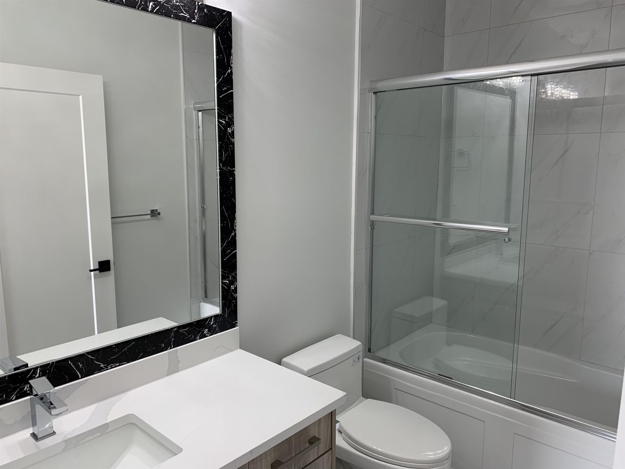 Brand new rowhome! 3,256 sq ft of living space over 3 floors! Main floor enjoys custom kitchen with lavish cabinetry and quartz countertops, pantry, dining area, great room, bedroom, full bathroom! Upper floor boasts games room, 3 bedrooms, gorgeous Primary Bedroom ensuite with soaker tub, dual sinks and glass rainshower! Basement has bonus 2 bedroom suite! Great location walking distance to Westcoast Express and all amenities call today!
