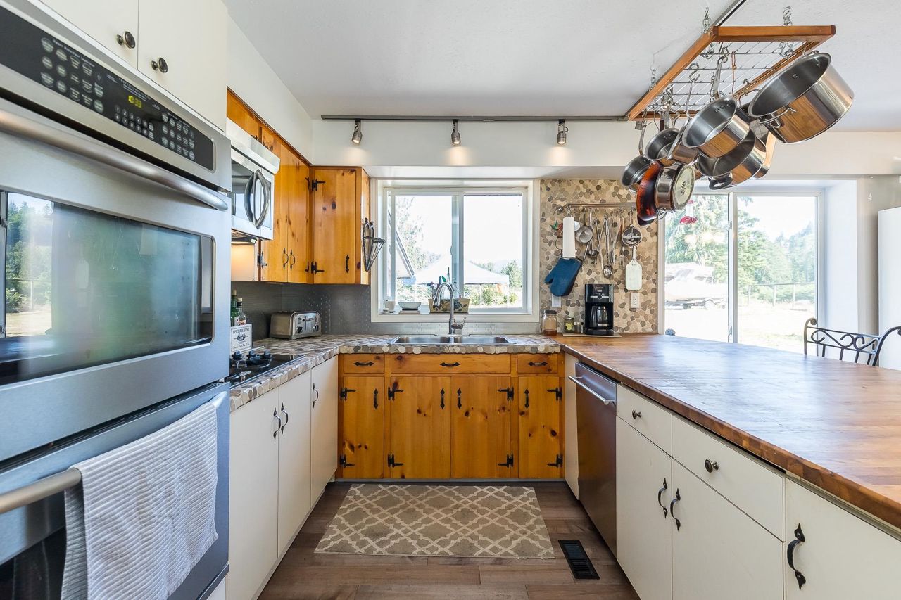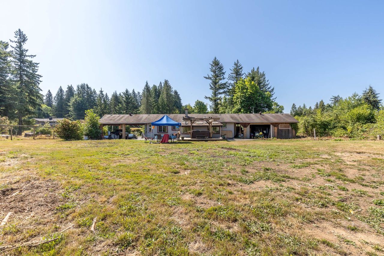 Rancher/Bungalow on .78 of an Acre in a rural area. New 50G hot water tank & Furnace (A/C Ready) installed in 2016. Beautiful Hardwood Floors & large windows throughout.Unique Stone Countertops with Huge butcher block island, gas cooktop and double wall oven make this kitchen a chef's dream for large gatherings.Oversized Ensuite, The main Custom Bathroom is a must see! 2 Bedrooms, 2 Bathrooms on the Main Floor, Large Rec Room Down + Additional Rooms. Private/Rural setting yet only Minutes to town and Lougheed Highway. Additional access off of side street to access the large yard area - perfect for additional vehicle/toy parking. Large Garden Area with mature Blueberries, grapes, raspberries and plums. Large Shrubs for Privacy surround this property from neighbours. Come take a look.