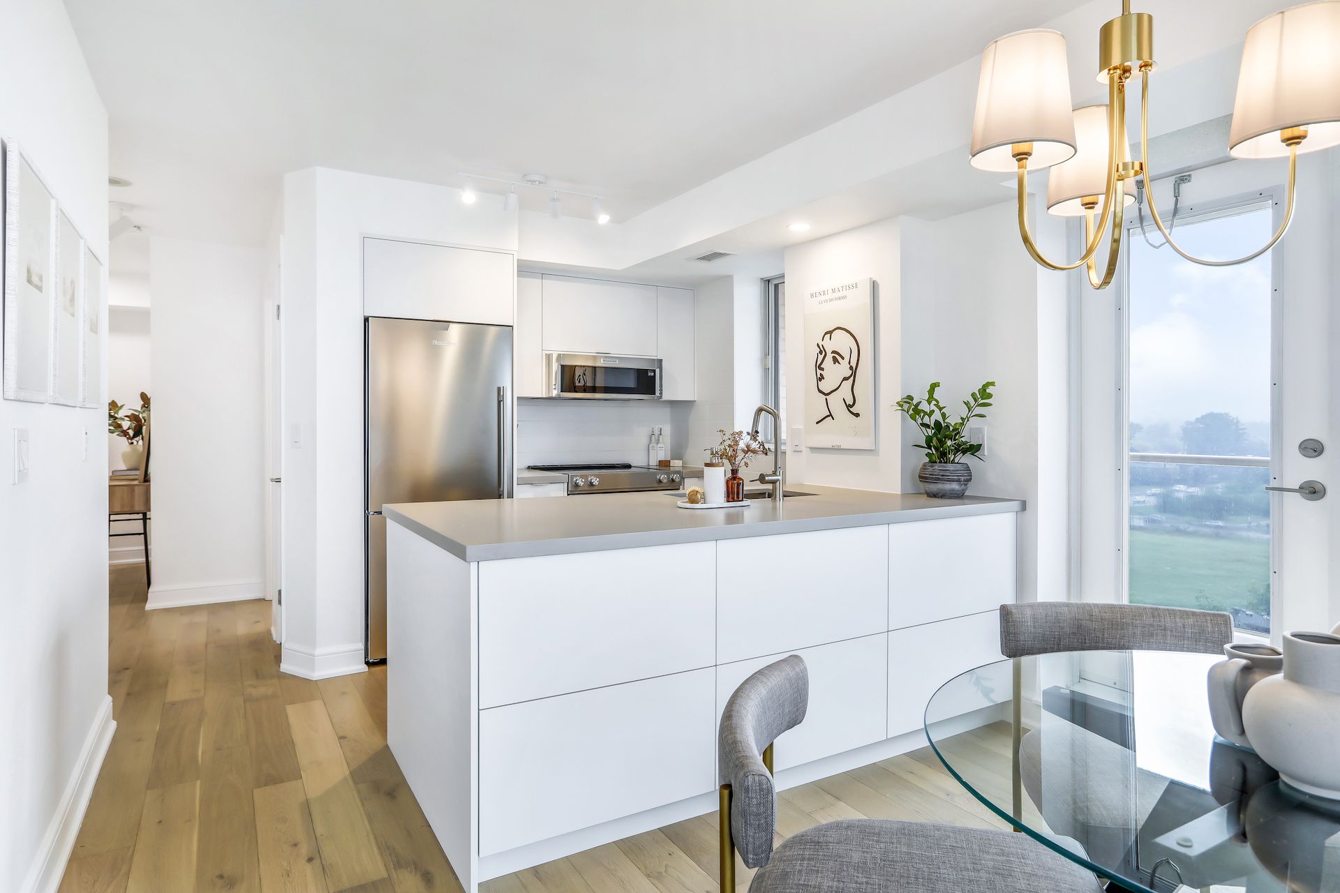 DREAM CONDO!!! SPACIOUS APPROX 680 SQ FT RARE CORNER SUITE WITH WRAP AROUND WINDOWS! NEWLY REMODELED TOP TO BOTTOM! SUNFILLED SUITE! MODERN KITCHEN, CONCRETE CAESAR STONE COUNTERS, SOFT CLOSE CABINETS, NEW SSTL APPLIANCES, DBLE UNDERMOUNT SINK, B/I EXTRA CABINETS IN ISLAND, B/I STORAGE RACKS, PANTRY, NEW LUXURY BATH, ALL NEW FIXTURES, LARGE MASTER BDRM WITH LARGE MIRRORED CLOSET & LARGE WINDOW! NEW GORGEOUS ENG HARDWOOD FLOORS THRU-OUT, SMOOTH CEILINGS, OPEN DINING ROOM WITH WALK-OUT TO PRIVATE MASSIVE 176 SQ Ft WRAP AROUND BALCONY FEATURING GAS BBQ HOOKUP & GORGEOUS PANORAMIC S/E/W VIEWS! LUXURY FINISHES! FRESHLY PAINTED! ABSOLUTELY STUNNING! ** ONE OF A KIND MODEL SUITE & ORIGINAL OWNER ** SHOWS 11+ VILLAGE TERRACES CONDOS - EXTREMELY WELL MAINTAINED & CLEAN CONDO COMPLEX!POSSIBLY THE NICEST $$$$UPGRADED$$$$ UNIT IN THE CITY!!! Close to Port Credit Shops, Restaurants, Entertainment, Parks & much much More! Easy Access to lake, Marina, Long Branch/Port Credit GO, QEW, Hwy's 427/401. Minutes to Toronto!