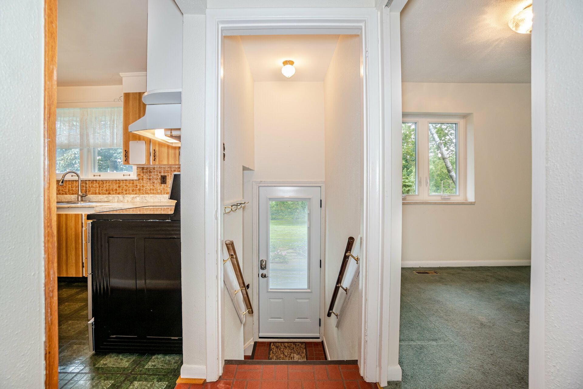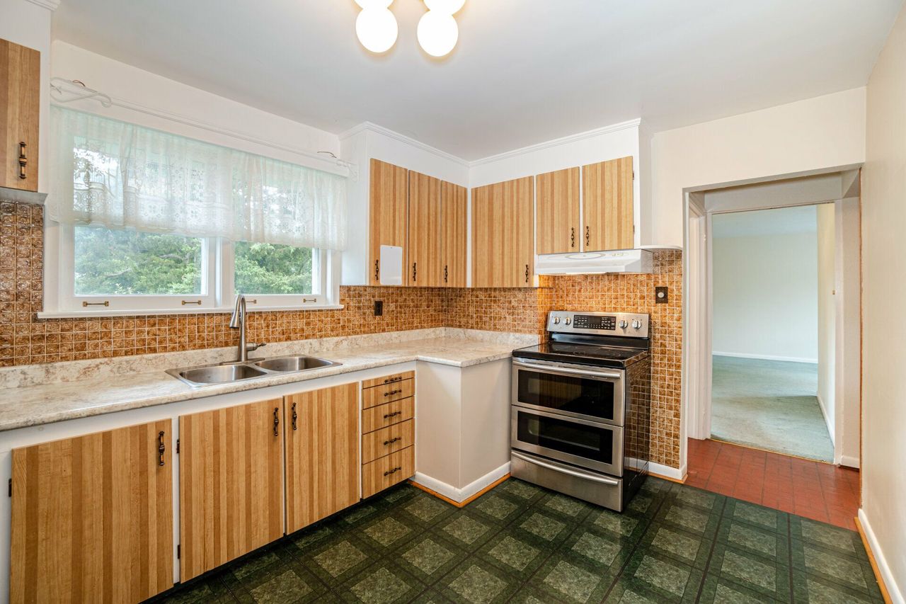 Eat-In Kitchen O/Looks Backyard Tile Floor