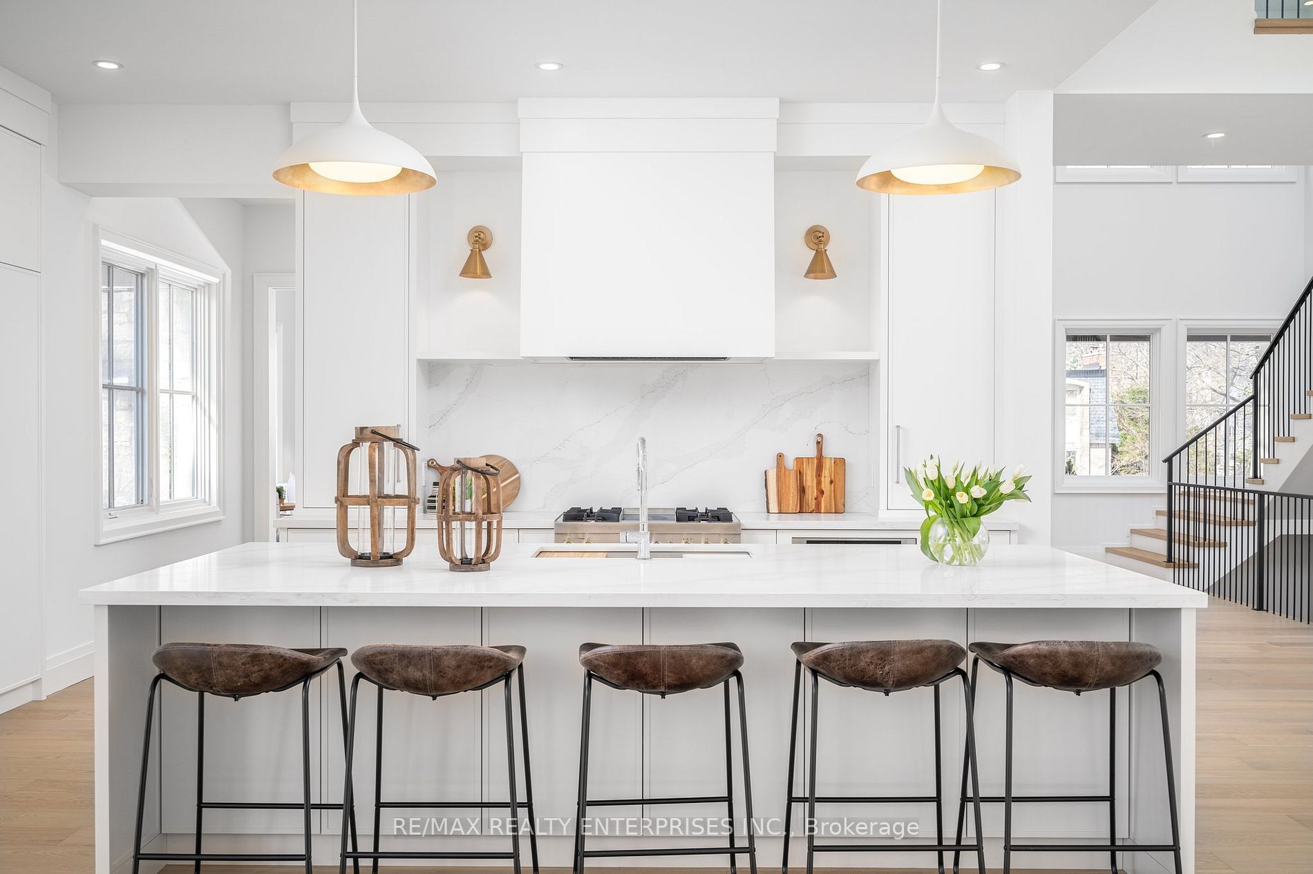 1322 Minaki Rd Is A Rare Find Newly Built In The Heart Of Mineola. Built By Meadow Wood Holdings Inc & Designed By New Aged Design. Located across the street from the top school in Mississauga. Mins from parks, trails, QEW & the beautiful Port Credit waterfront. Offering 7,750 sq ft of Luxury Living Space W/ Premium Finishes & Smart Home Technology. 20, 10' &9' Ceilings & A Deluxe Main Floor Primary Wing. 5 bedrooms each w/ an ensuite bath. 7 baths total, Laundry On Main & Second Level. Grand entertainment space & gym on the lower level w/ a walk-out. Dual natural stone patios w/12' waterfall feature. Professionally landscaped w/ 6 car driveway. Surrounded by mature trees, this is the perfect peaceful oasis.Led Water Feature, High-End New Appliances, Designer Light Fixtures, Two High-Efficiency Furnaces, XI Central Vac System, Two Large Capacity Washers & Dryers, Sonos Surround Sound System & Led Potlights Throughout.