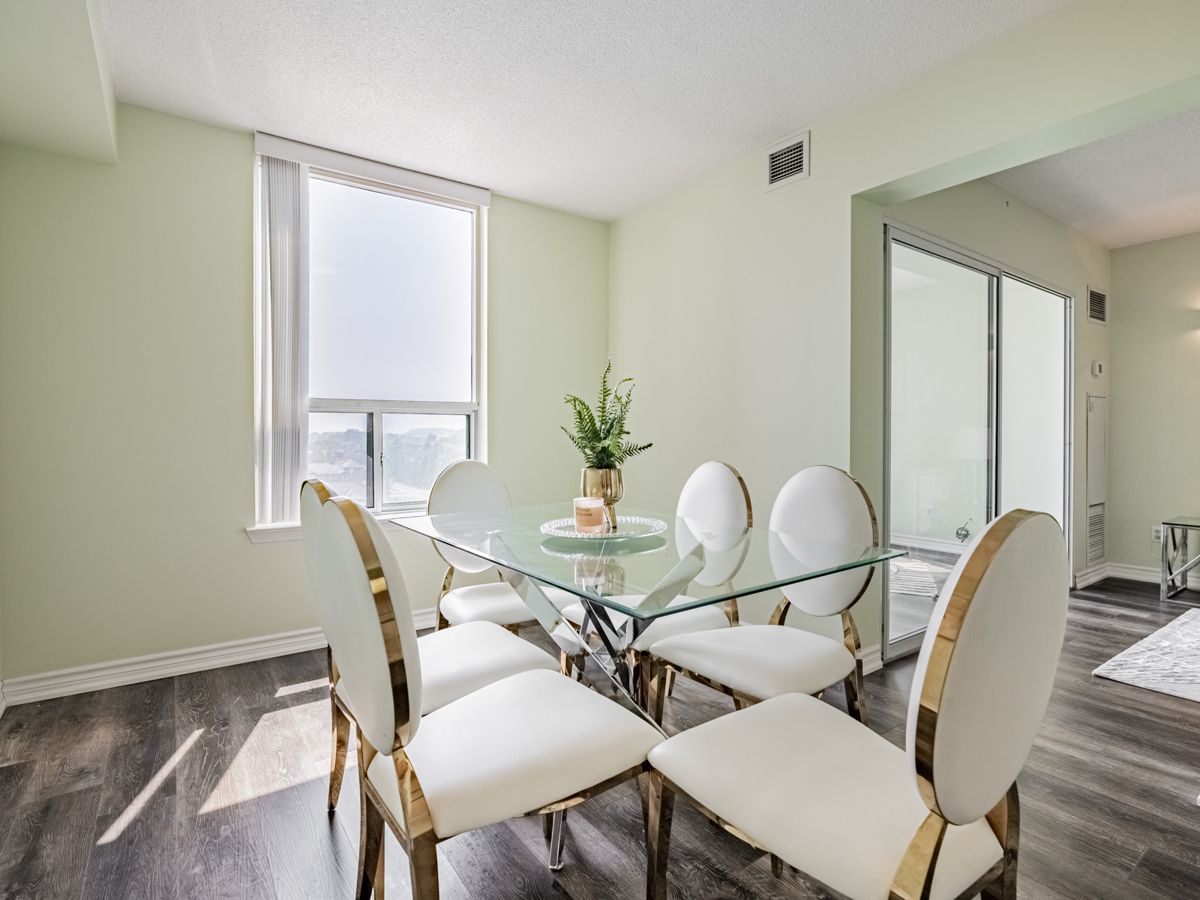 Tridel Built & Well Maintained Building Conveniently Located Across From Cooksville Go Station In The Heart Of Mississauga! This Bright & Spacious 1 Bed + Den/Dining + Solarium/Office Unit Includes New Vinyl Flooring & Professionally Installed Blinds Throughout & An Open Concept Floorplan w/Unobstructed View. Spacious Master Bedroom W/Pot Lights & Large W/I Closet. Den Can Be Used As Separate Dining Rm. Solarium Can Be Used As Home Office/2nd Bedroom. Recently Updated Washroom W/New Shower & Vanity. Easily Accessible For Public Transit, Future Hurontario LRT (Anticipated 2024), Schools, Groceries, Highways 403 & Qew. Minutes To Square One Shopping Center, Celebration Square, & Restaurants. Perfect For 1st Time Home Buyers And Great Income Potential For Investors.1 Parking Included.