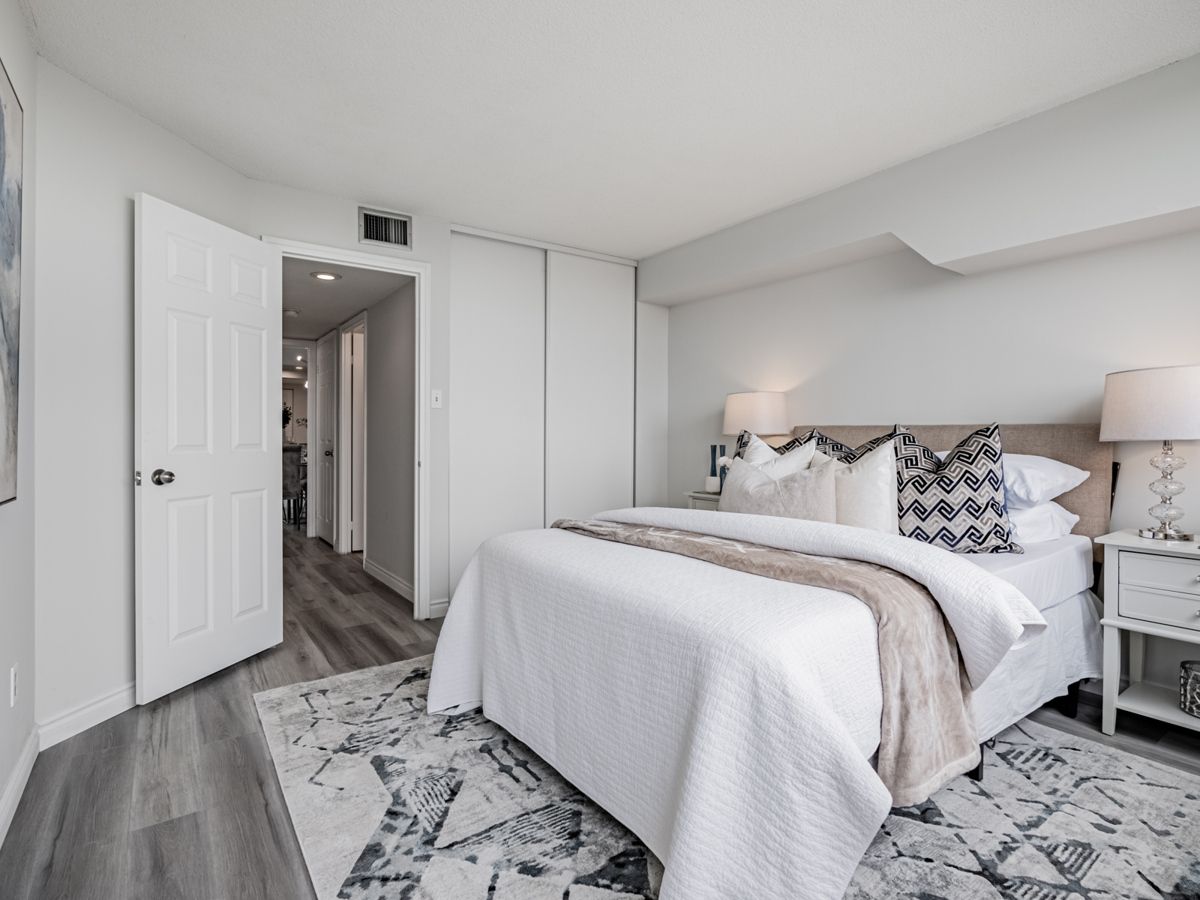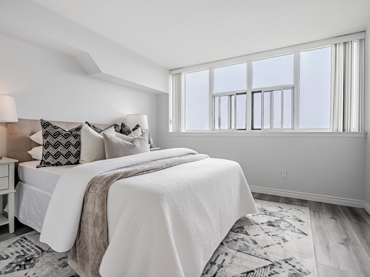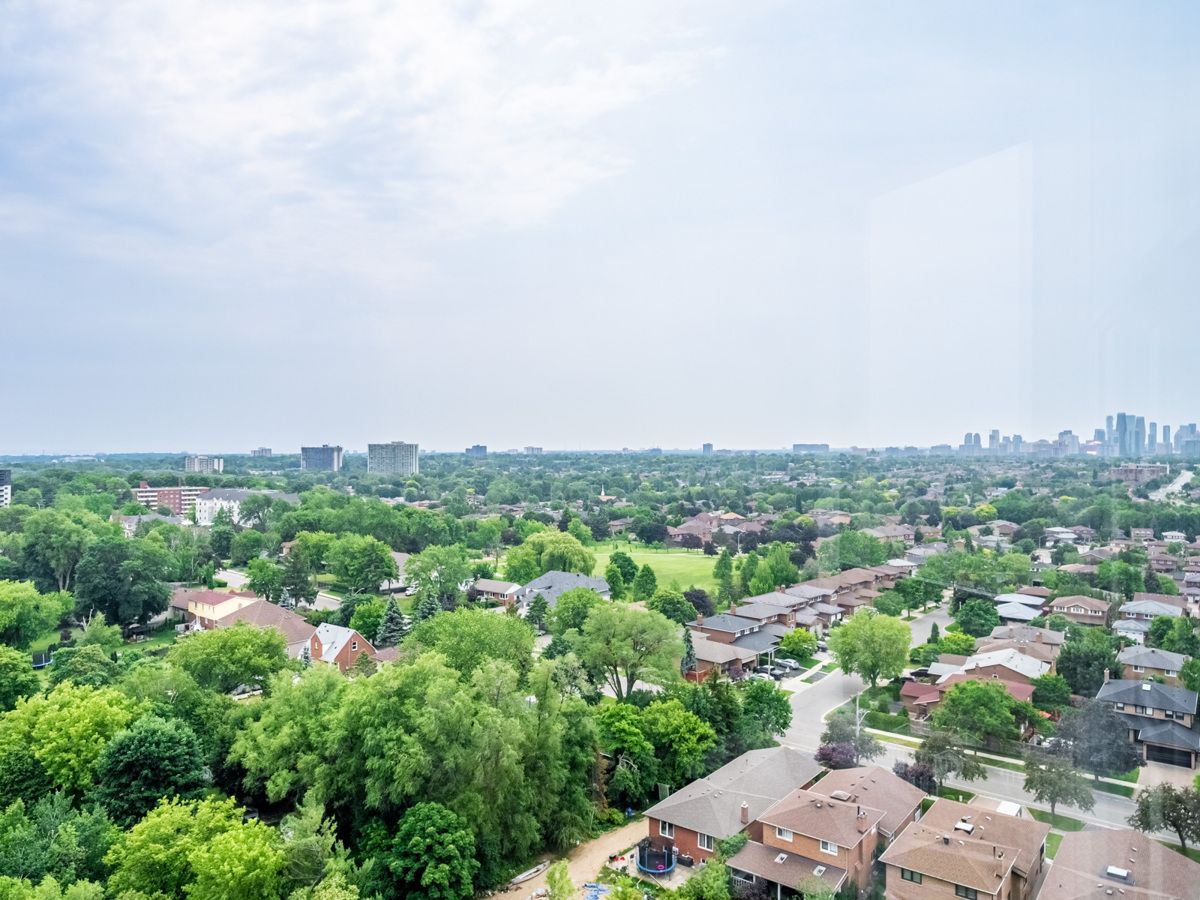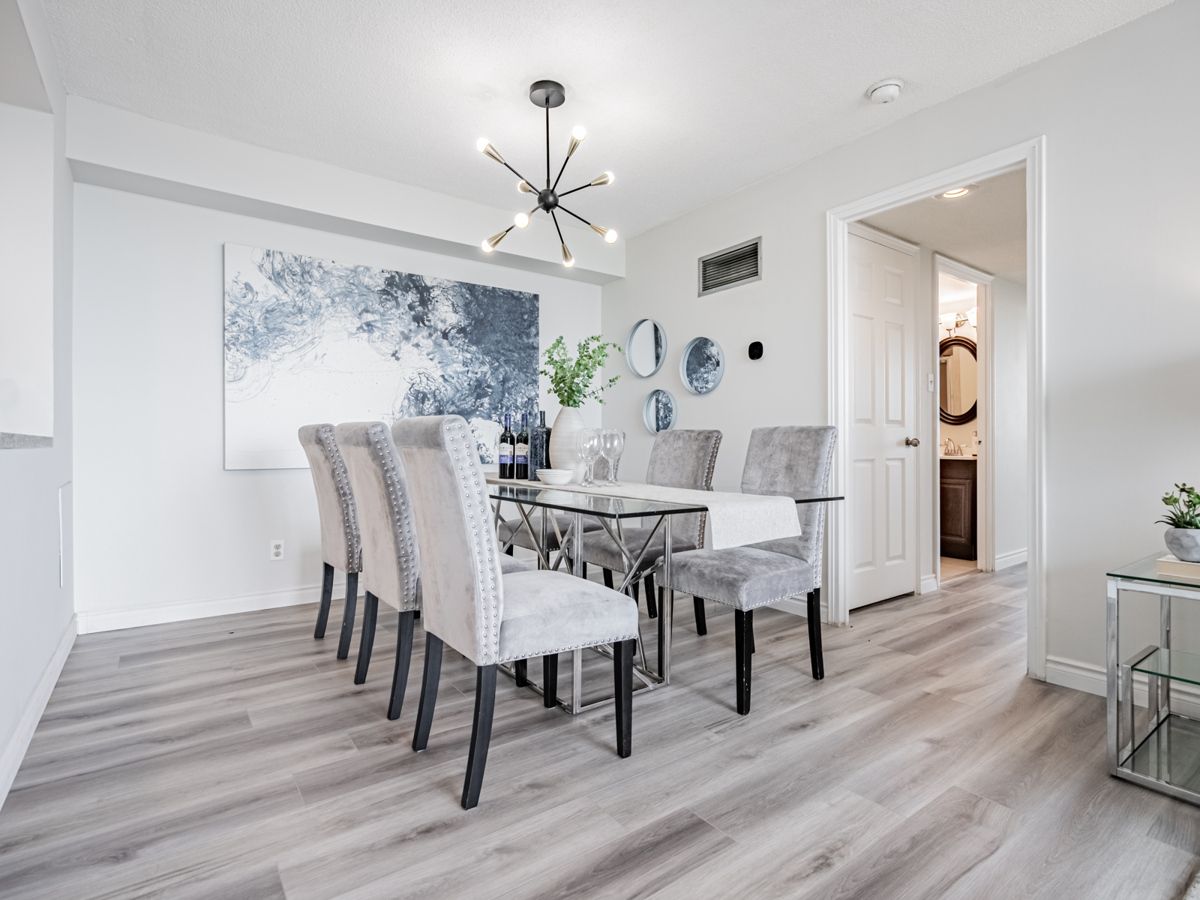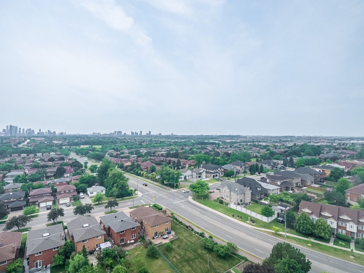 Luxurious Corner Recently Renovated 2 Bedroom 2 Full Bathrooms & spectacular North, West & South Views. Bright and Spacious 1253 sq ft Floor Plan. Custom Modern Kitchen with Soft Closing Drawers O/Ls Dining room. Two (2) newly renovated Bathrooms, Brand New Modern Vinyl Flooring, Unit freshly painted T/O. Large Living Room can fit an office. Master Bedroom has beautiful SW views & features a 4-piece Ensuite & Large Walk-In Closet. (Don't miss the) Ensuite Laundry in the Kitchen. Condo fees include EVERYTHING. 1 Underground Parking Spot & 1 Locker. Bldg Ideally located across the road from Rockwood Mall, near the Library,Aurora Meats& Cheese, Arkady Bistro Cafe & more in Wisla Plaza,Square One & Costco minutes away. Rathburn bus in front of building goes Direct to the Islington subway station. ***Offers on June 19 @ 7 pm. Please register by 5 pm. Minimum 5 % Bank Draft Deposit. July 13 possession is the preferred closing date but Seller will consider other dates if the price is right***Maintenance Fee INCLUDES ROGERS IGNITE Internet.
