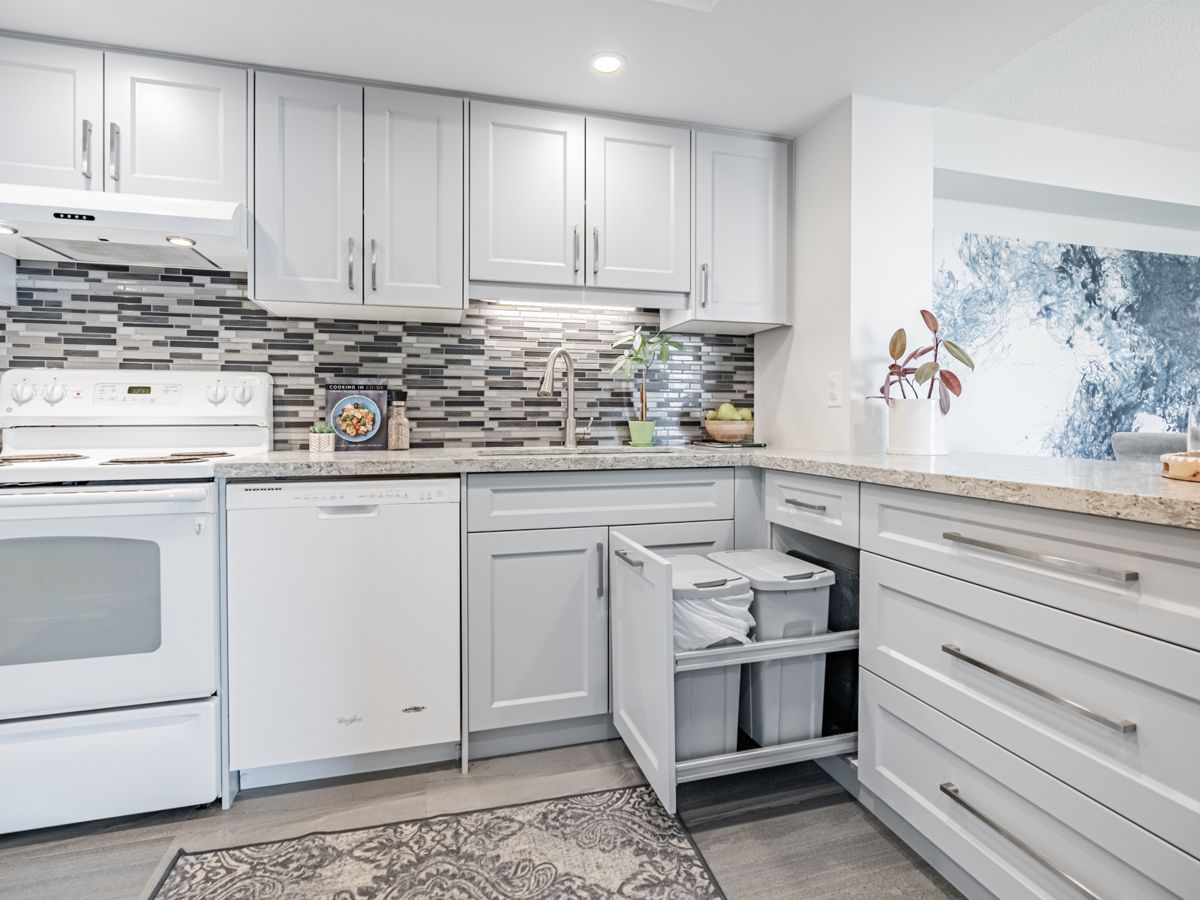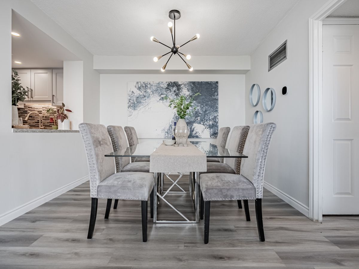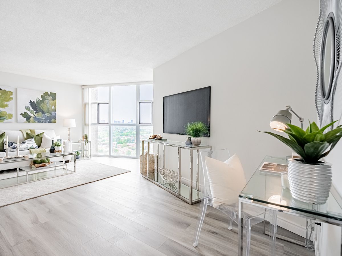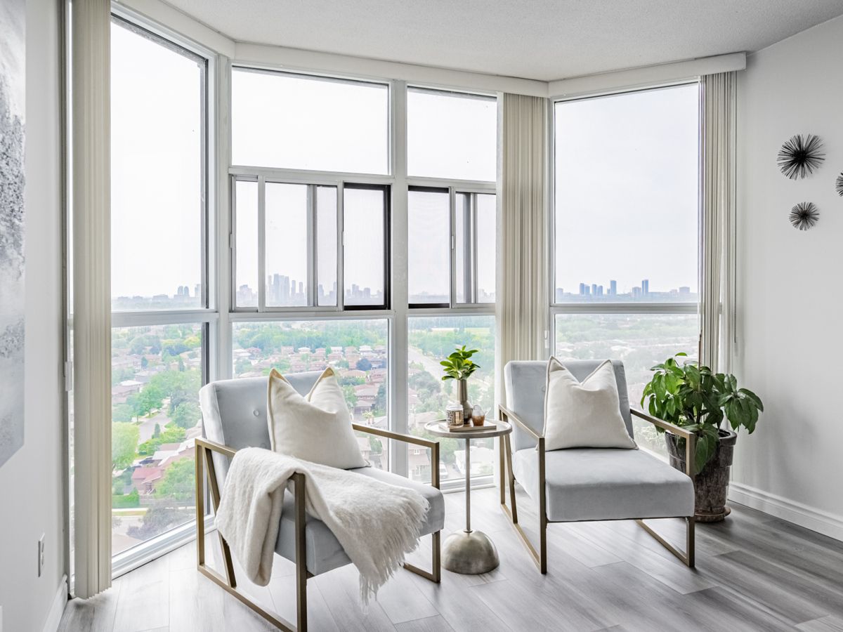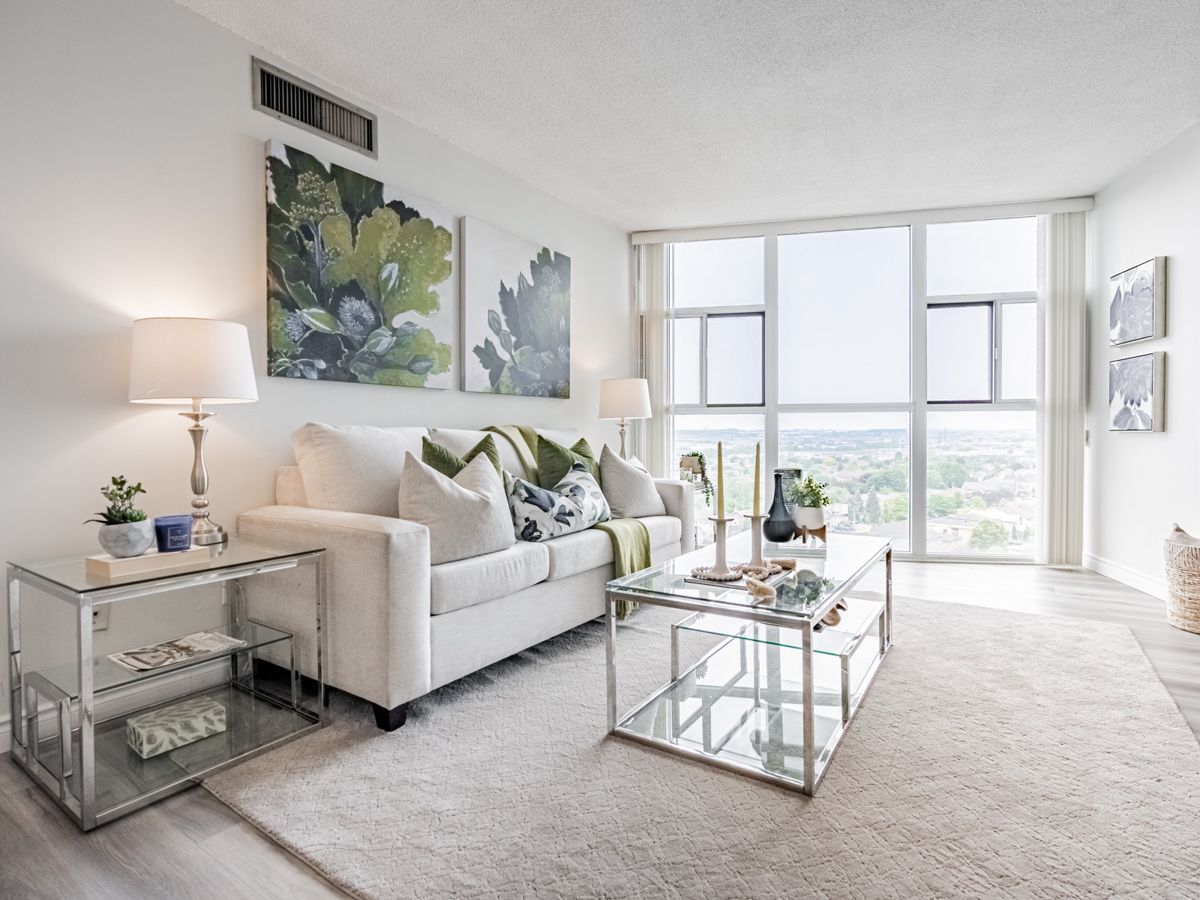 Luxurious Corner Recently Renovated 2 Bedroom 2 Full Bathrooms & spectacular North, West & South Views. Bright and Spacious 1253 sq ft Floor Plan. Custom Modern Kitchen with Soft Closing Drawers O/Ls Dining room. Two (2) newly renovated Bathrooms, Brand New Modern Vinyl Flooring, Unit freshly painted T/O. Large Living Room can fit an office. Master Bedroom has beautiful SW views & features a 4-piece Ensuite & Large Walk-In Closet. (Don't miss the) Ensuite Laundry in the Kitchen. Condo fees include EVERYTHING. 1 Underground Parking Spot & 1 Locker. Bldg Ideally located across the road from Rockwood Mall, near the Library,Aurora Meats& Cheese, Arkady Bistro Cafe & more in Wisla Plaza,Square One & Costco minutes away. Rathburn bus in front of building goes Direct to the Islington subway station. ***Offers on June 19 @ 7 pm. Please register by 5 pm. Minimum 5 % Bank Draft Deposit. July 13 possession is the preferred closing date but Seller will consider other dates if the price is right***Maintenance Fee INCLUDES ROGERS IGNITE Internet.