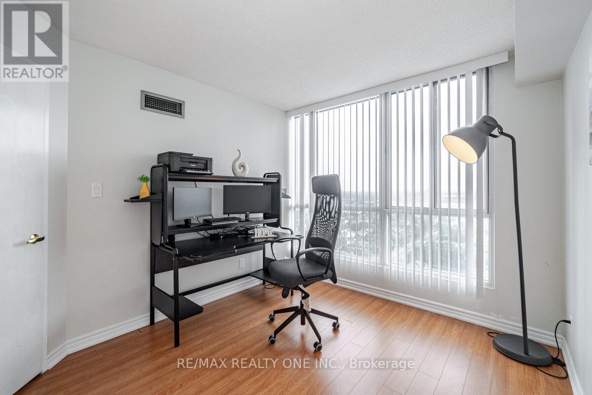 Beautiful & bright light filled rare south/west facing unit on high floor with many upgrades. Large 1+2 bedroom suite. Den can be used as 2nd bedroom and solarium as an office. Spacious layout of dining or sitting room. Spacious & light filled bedroom with mirrored closet. Nicely upgraded kitchen with quartz counter top, stainless steel appliances, pot lights, and cabinets with lots of storage space. Ideal for first time home buyers or down sizers. Great location, steps to Cooksville Go-Station, public transit, hospital, schools parks, Square One, groceries & more. Mins to major highways (QEW/403). 24Hr concierge, gym, party room, rooftop deck, sauna.**** EXTRAS **** Stainless Steel Appliances (fridge, stove, B/I dishwasher) Laundry Washer & dryer. All existing electrical light fixtures and window coverings/blinds. (id:22211)