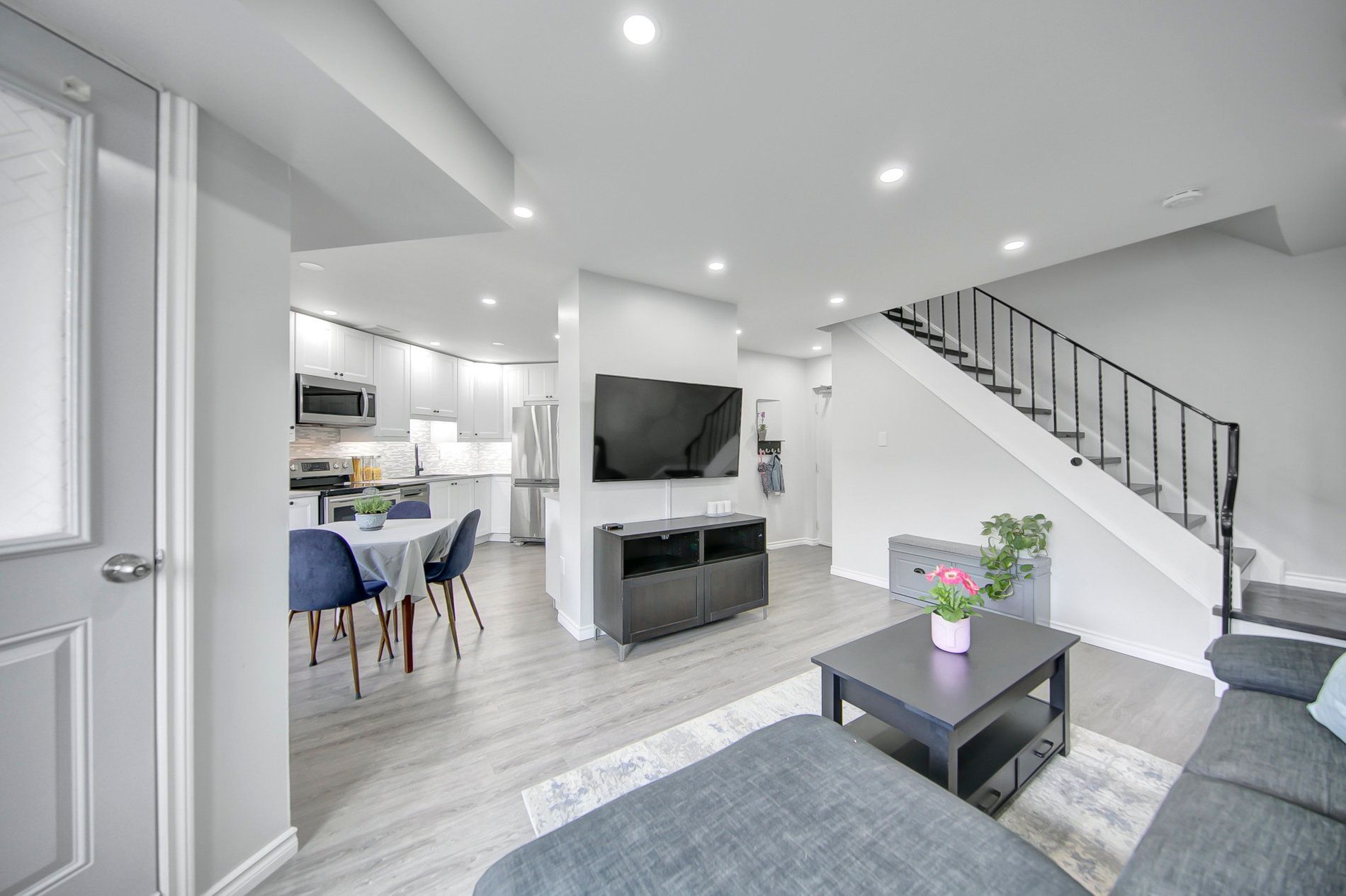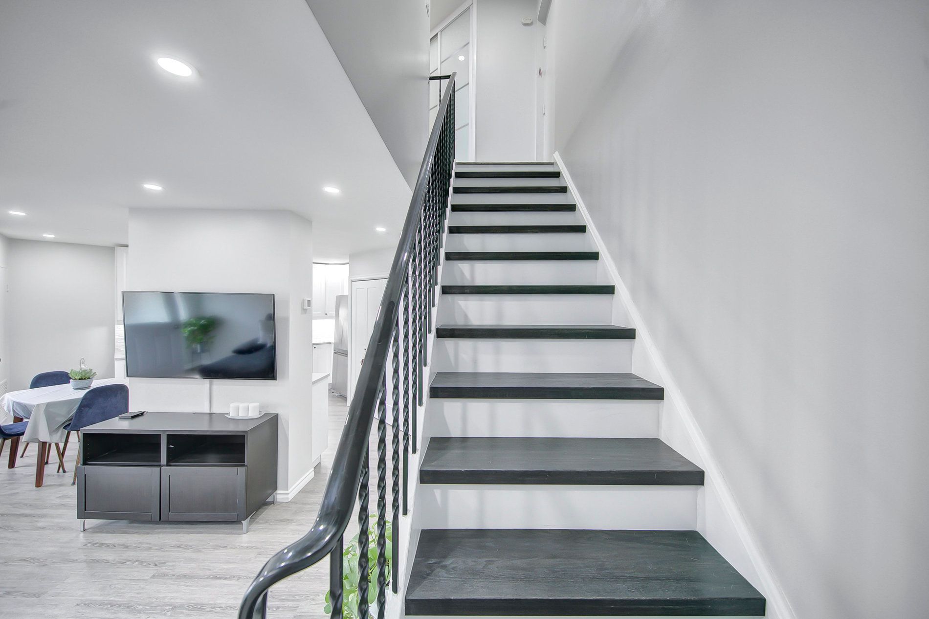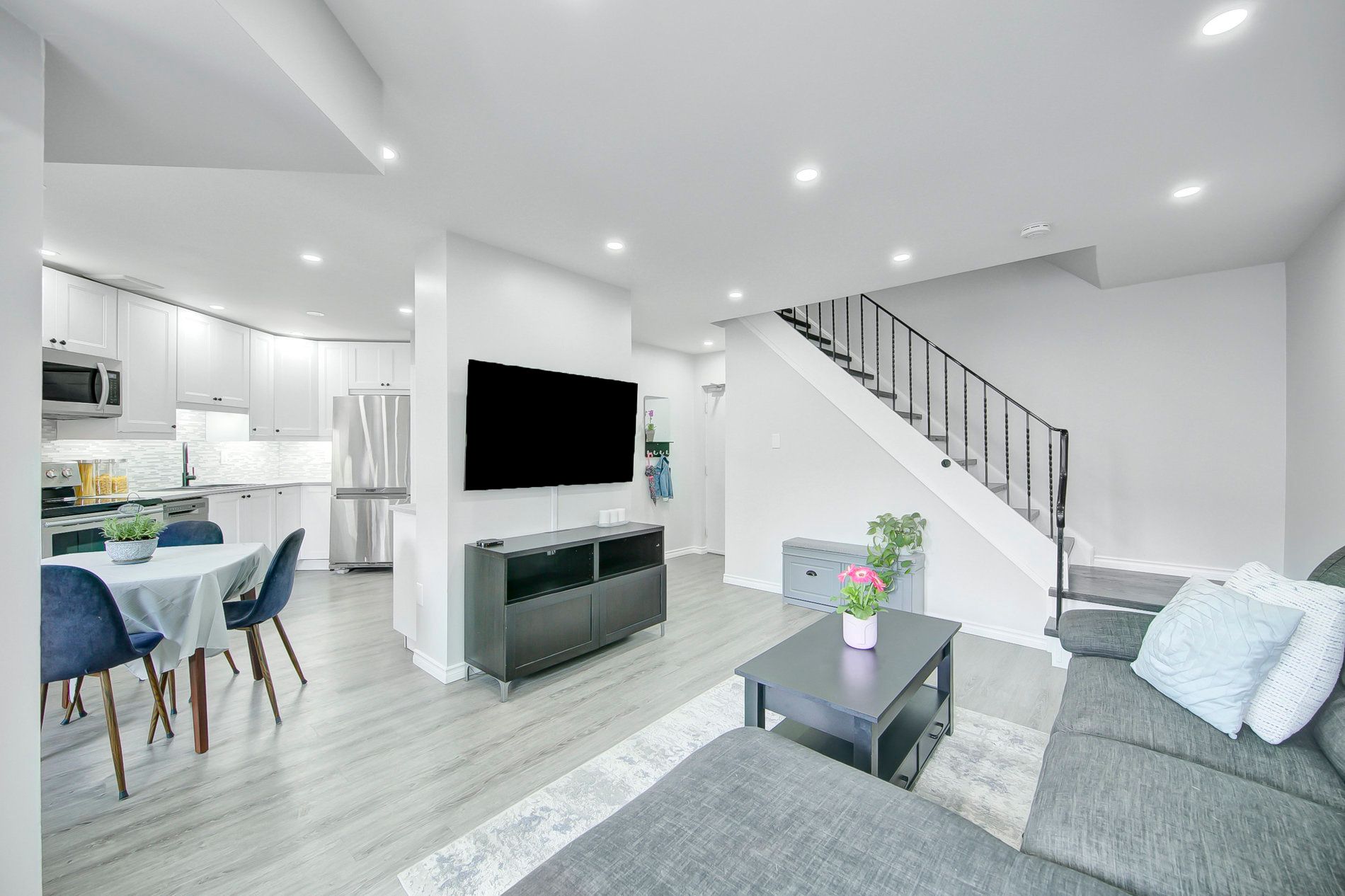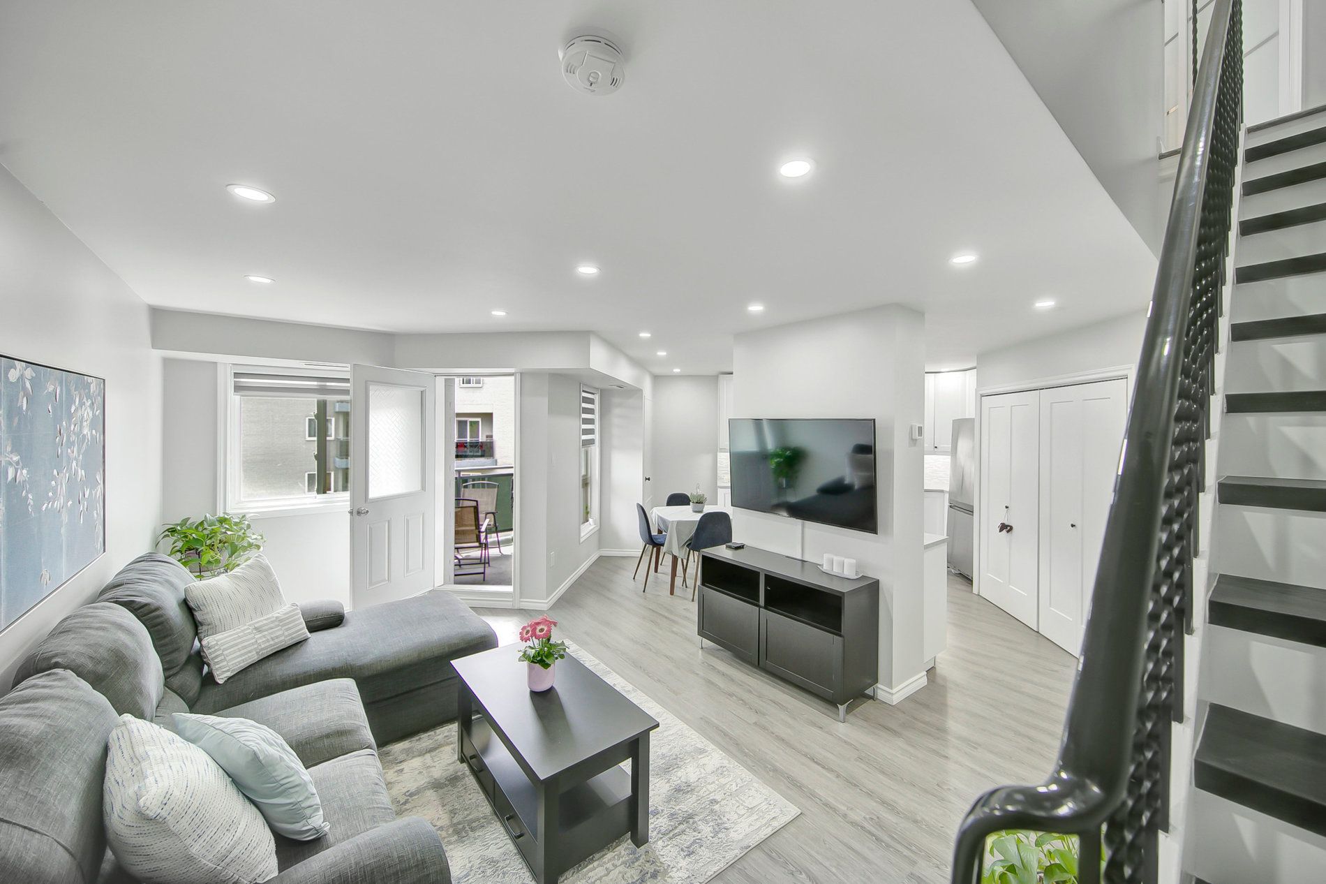 BEAUTIFUL, SPACIOUS AND RENOVATED 2-STOREY TOWNHOME. MODERN LIVING AND KITCHEN OPEN CONCEPT WITH BREAKFAST AREA, POT LIGHTS AND HIGH-END VINYL FLOORS. UPDATED ENSUITE LAUNDRY AREA AND LARGE STORAGE UNIT. LUXURY OF 2ND BALCONY OFF MAIN AND UPPER LEVELS AND LOTS OF NATURAL LIGHTS. AMENITIES INCLUDE: INDOOR SEA SALT POOL, SAUNA, CAR WASH, PARTY/MEETING ROOM, KIDS OUTDOOR PLAYGROUND, RENOVATED GYM WITH NEW EQUIPMENTS. 2ND PARKING SPOT CAN BE RENTED FROM MANAGEMENT.STAINLESS STEEL FRIDGE, STOVE, DISHWASHER, STACKED WASHER/DRYER, ALL ELECTRICAL LIGHT FIXTURES, WINDOW COVERINGS. HUGE LOCKER SPACE. 2ND PARKING SPOT CAN BE RENTED FROM MANAGEMENT.