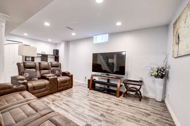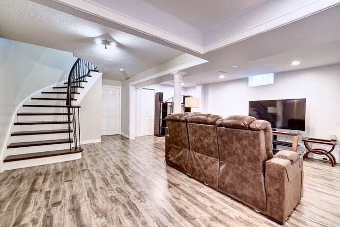 Located in the exclusive area of Sherwood Forrest with thousands spent on upgrades with 9 foot ceilings on the main level. Spacious Living Room with hardwood floors, crown moulding, pot lighting,& French doors.Separate formal Dining room area with hardwood floors.Family size Kitchen With quartz counter tops, stainless steel appliances, built-in pantry, stone backsplash,pot lighting,& large Breakfast Area with walk-out to deck. Main floor open concept Family Room with hardwood floors & a stunning refaced wood burning fireplace with nature stone front.Primary bedroom retreat with his/her closets, gorgeous renovated 5 piece en-suite with his/her sinks, Roman tub, vanity with marble counter top, walk-in shower with bench seating & shower column with body jets. Hardwood floors throughout all bedrooms & an updated 4 piece main bathroom with quartz counter tops.Finished basement with recreation area,4 piece bathroom,5th bedroom,6th bedroom/office with new vinyl plank floors & led pot lightingUpdated staircase with wrought iron spindles. Main floor Laundry with interior entrance to garage. Updated 2 piece Powder Room, main floor with flat ceilings, & freshly painted throughout.