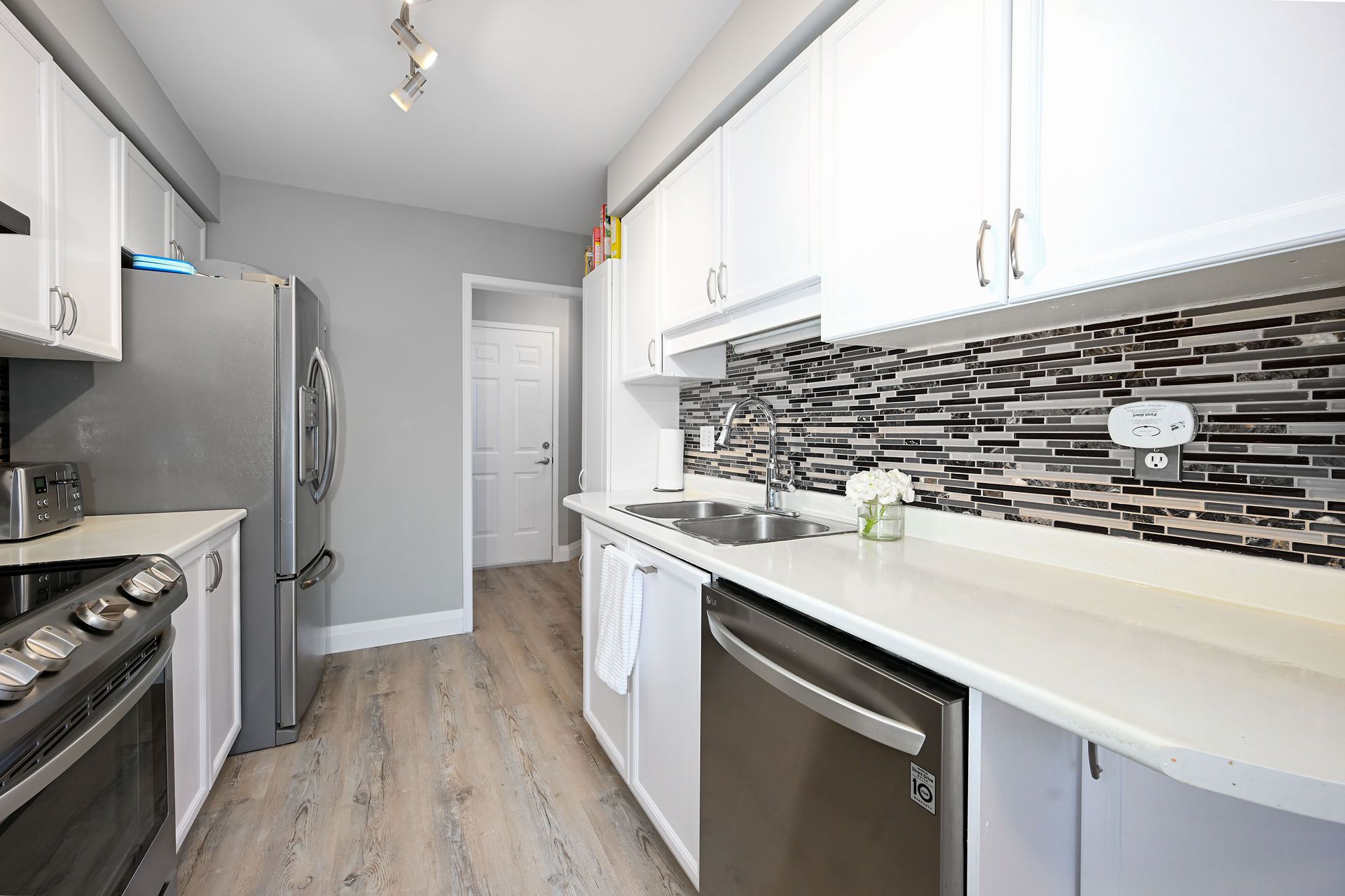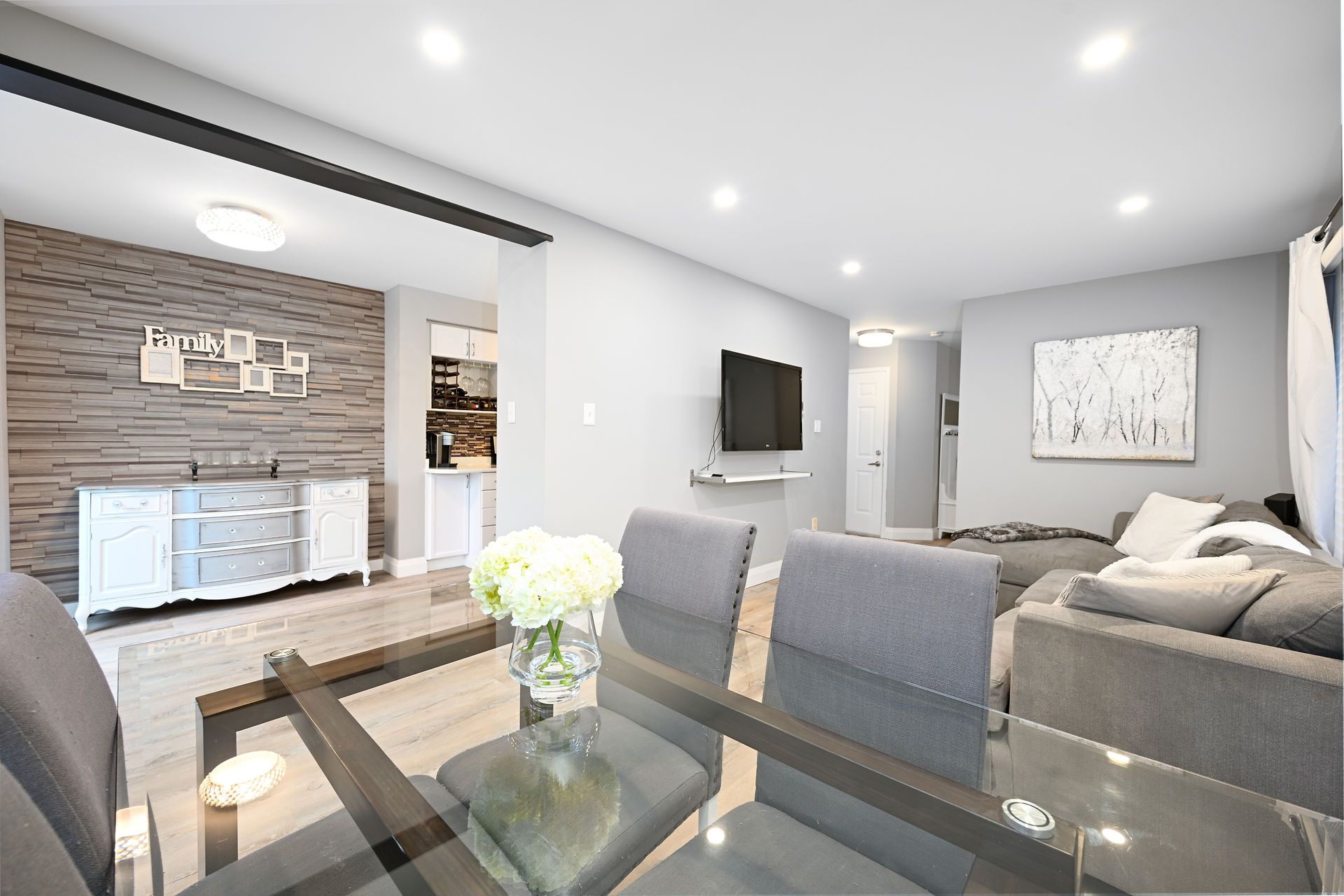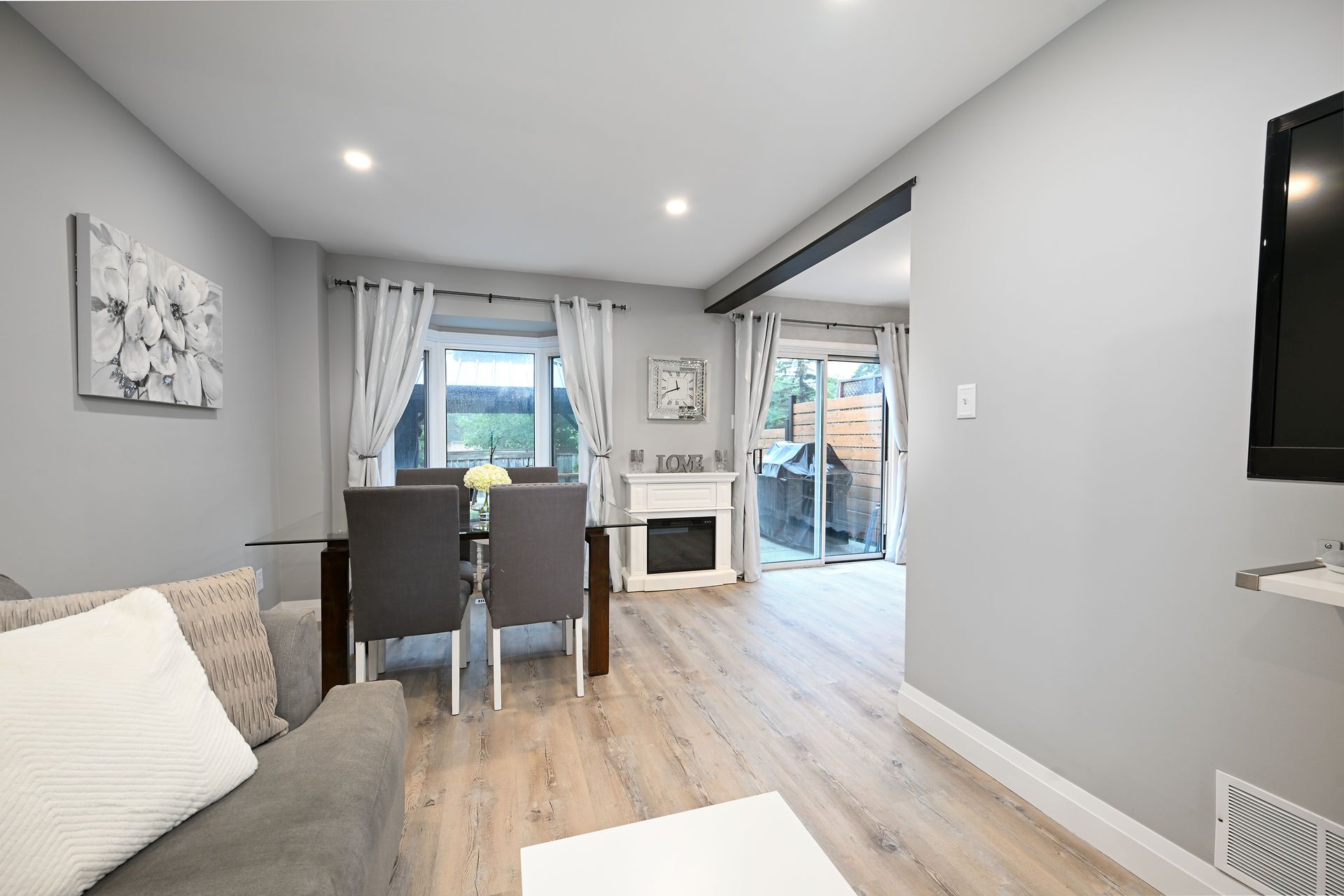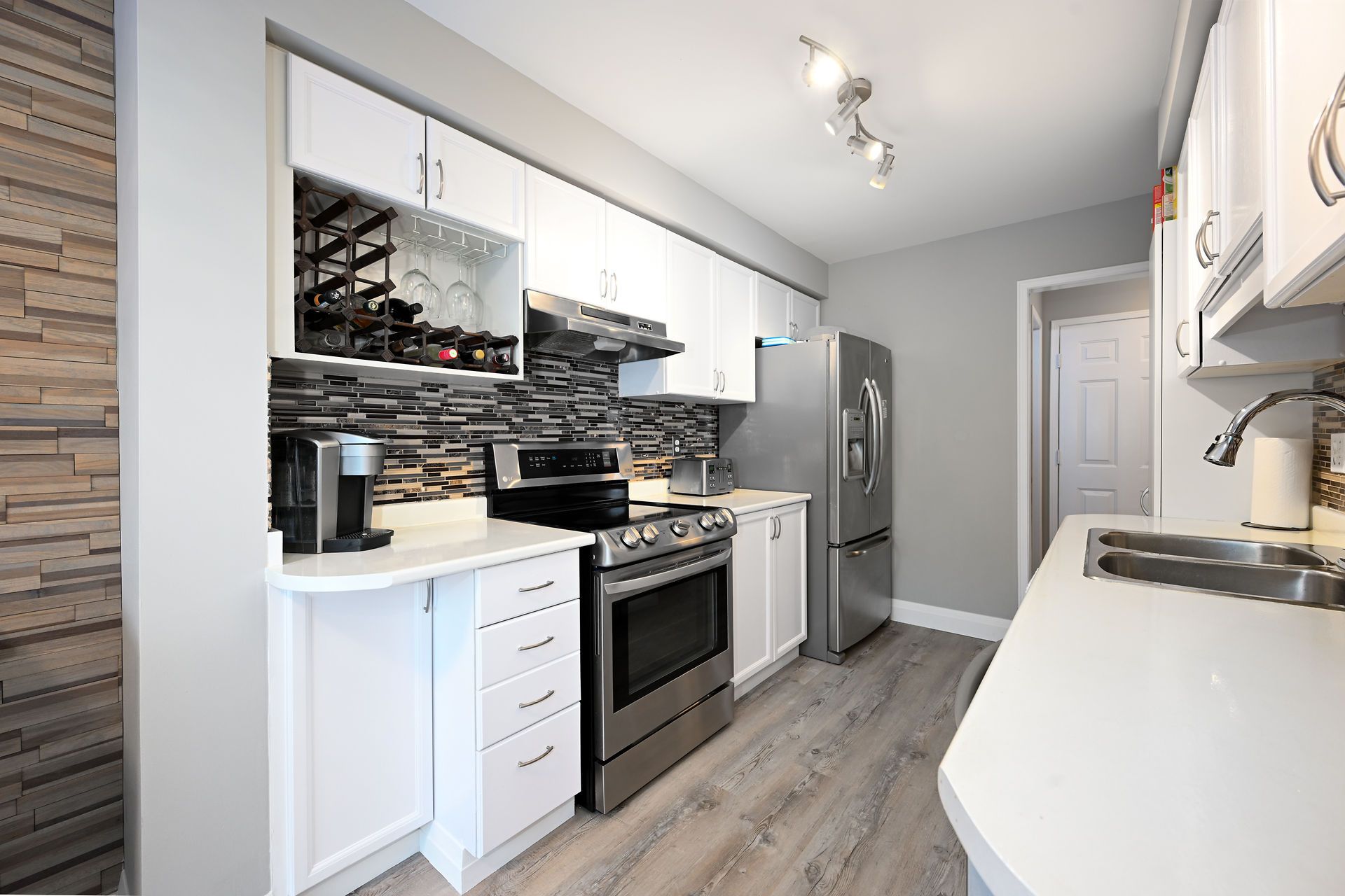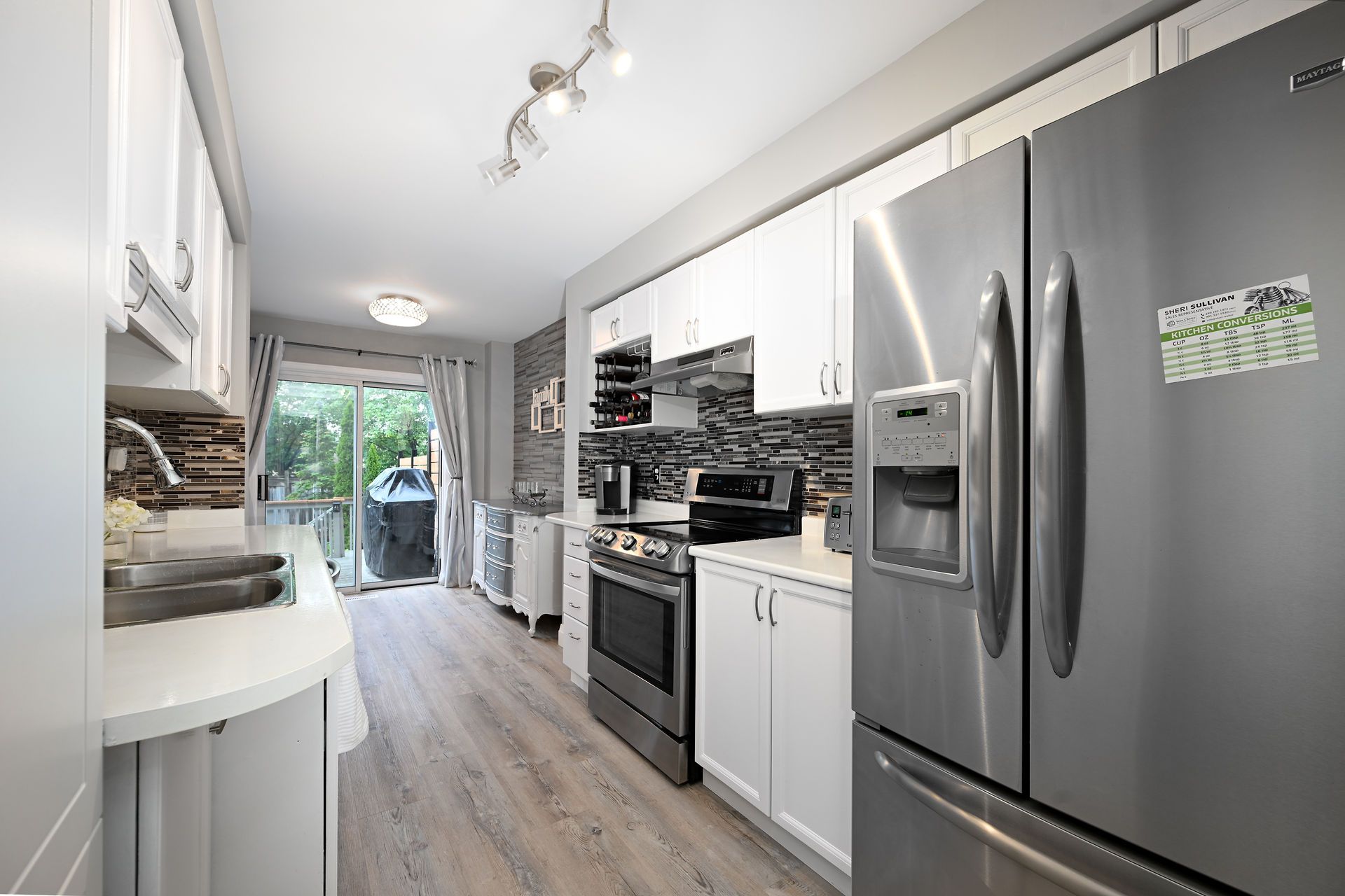 STUNNING 3 Bed, 4 Bath Home Located in Most Desirable PLUM TREE PARK School District. Location is 10++!! Beautifully updated from top to bottom. Brand new luxury vinyl flooring throughout the main level. Modern kitchen with white cabinetry & stainless steel appliances. Spacious living & dining room are perfect for family time or entertaining. Walk out to the backyard oasis with 2 tier custom deck, newly built privacy wall, green space & the luxury of no homes behind. Convenient powder room on the main floor. Wood staircase leads to the second level with hardwood flooring, 3 large bedrooms & 2 full bathrooms. Primary retreat has a 4 pc ensuite, walk in closet & additional built in wall to wall closet. Lower level is fully finished with rec room, exercise nook, office space, laundry room & 2 pc bathroom. Attached garage with inside entry. Double wide paved driveway. Steps to the park, Danton Plaza & ALL amenities. Close proximity to schools, GO train, public transit & hwys.Move in ready. All you need to do is unpack. Extensive list of updates including vinyl floor & main water valve (2023) pot lights & AC (2022) washer, dryer & dishwasher (2021) retaining wall (2020) stove (2018).