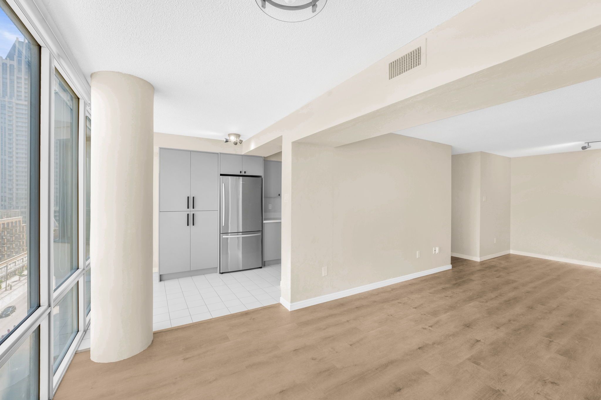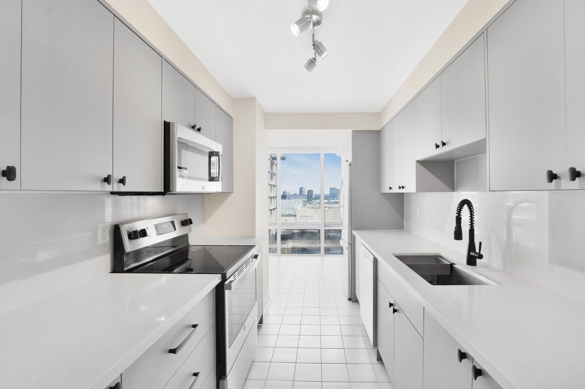 RENNOVATED! READY TO MOVE-IN! Unlock 1,200 Sq Ft of Brilliantly Illuminated Splendor with 2 Captivating Bedrooms and 2 Bathroom. Large size Master Bedroom with Windows, 5 pc En-Suite Bathroom & Walk-In Closet. 2nd Bedrrom with Closet. 4 Pc Bathroom. Solarium/Den (Doors Removed) Resulted In The Spacious Living, Dining & Office Space, Floor to Ceiling Windows & Walkout to Balcony. Renovated Kitchen with Quartz Counter tops & Backsplash and Organized Cabinets, a Sleek Sink, and Shiny Stainless Steel Appliances (2022). Both Bathrooms (upgarded in 2022) Vanities with Quartz Countertops. Brand New FLOORING & Freshly PAINTED (August 2023). Large Windows with tons of natural sun light. Located In The Centre Location Of Mississauga Within Walking Distance To The Square One Shopping District, Schools With High Ratings, Cinemas, Public Transport, 403, Sheridan College, & Restaurants. Experience Effortless Living with a CONDO Fee that Covers All Your Utilities and High-Speed Internet.S/S Refrigerator, Stove, Dishwasher & Microwave. Washer/Dryer.