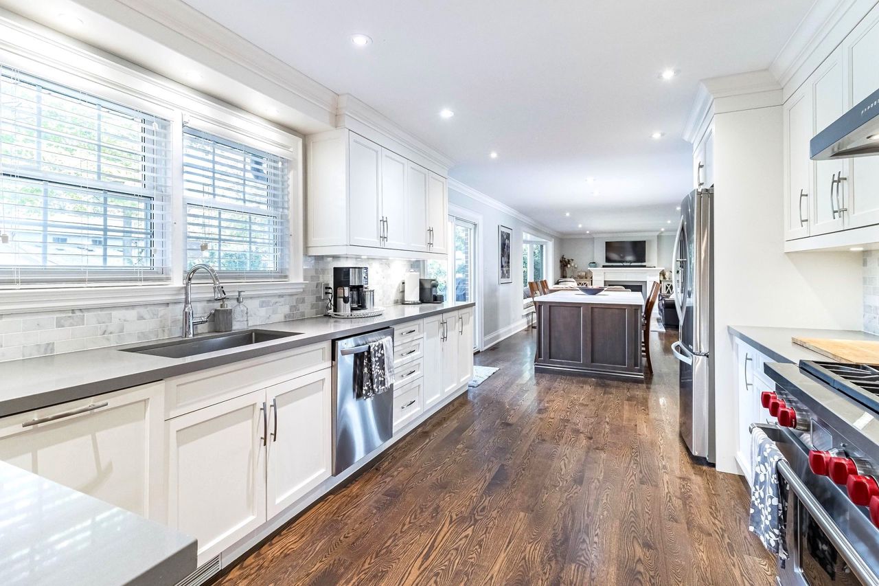 Recently renovated, thoughtfully designed & tastefully finished 'Executive Home' in heart of Applewood Hills! A stunning home offering 4000+ sq ft of living space including the lower level! You will immediately fall in love with this gorgeous 4-bedroom home, perfectly situated on quiet, tree-lined Crescent! Fabulous curb appeal & stately entrance! Impressive double door entry leads into welcoming foyer, sophisticated living rm & formal dining rm with gorgeous oak hardwood, crown moulding & quality wood trim! Stunning, custom kitchen features SS appliances, WOLF gas stove, loads of quality cabinets, stone counters, huge centre island & walkout to deck! Sizable family room, beautifully reno'd main floor laundry & handy powder room! Sophisticated, bright & sunny bedrooms & spa-like baths! Primary enjoys massive 4-pce ensuite & large W/I closet!! Fabulous floor plan! Quality reno's throughout; professionally renovated with superior materials & excellent workmanship! Offers anytime!!!Huge 71 ft frontage, sprawling pool-sized lot, lush green lawns & backyard oasis! BBQ deck, interlock patio & sizable garden shed! Excellent mechanicals! Huge bsmt w high ceilings & loads of potential! Insulated garage for car enthusiasts!
