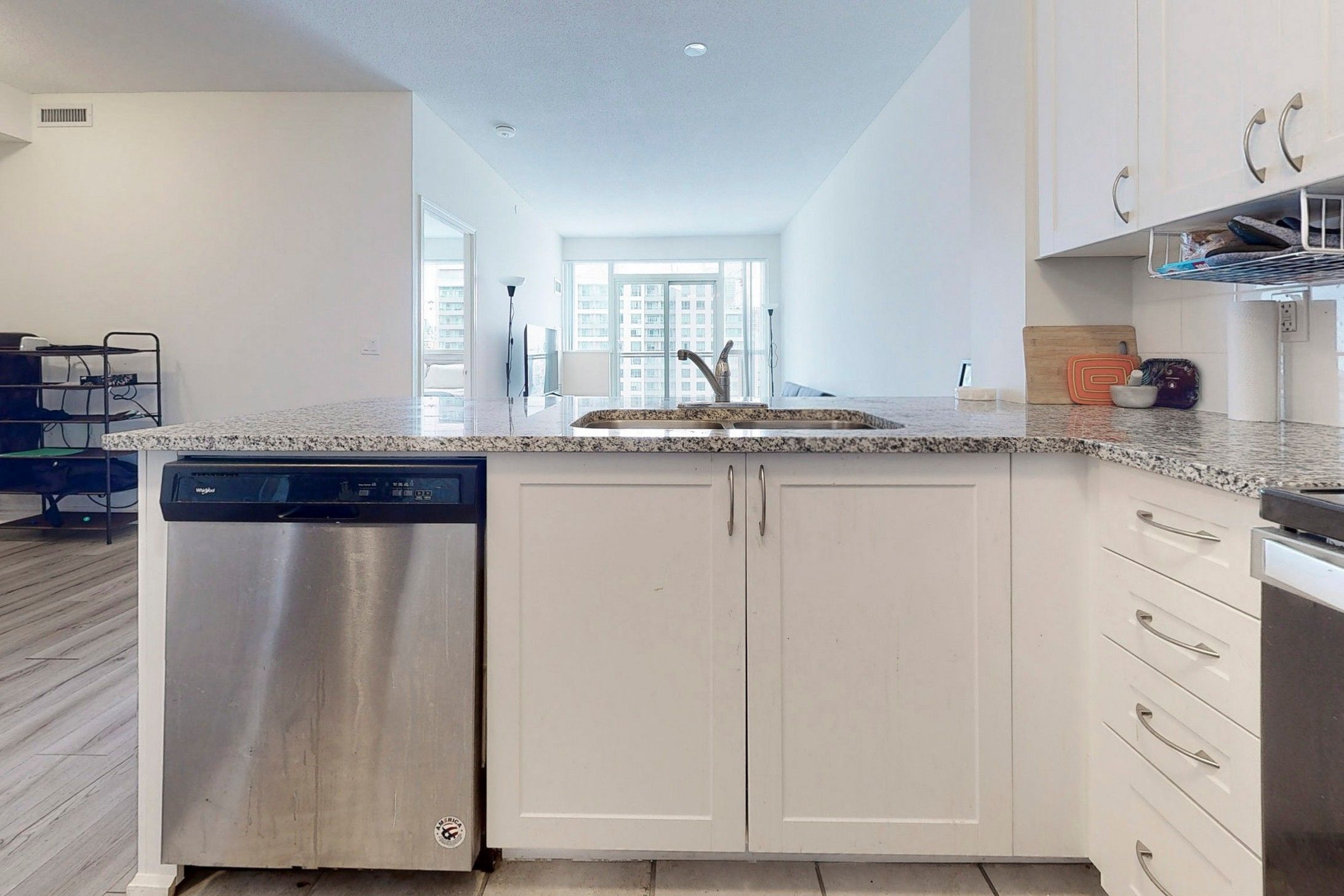 Welcome to this stylish one-bedroom plus den condo, located in the heart of Mississauga's vibrant city center, just steps away from Square One Centre. Perfectly positioned for convenience, this modern gem offers a comfortable urban lifestyle with a multitude of amenities and attractions at your doorstep. The condo boasts a well-appointed 4-piece bathroom, and the den provides a versatile space for an office or extra storage. Included with the unit are owned parking and a locker for added convenience. Residents will have access to fantastic amenities, including a pool, gym, gaming room, party room, and the convenience of concierge service. Visitors can easily find parking, making entertaining a breeze. The condo features numerous upgrades, adding a touch of luxury to your daily