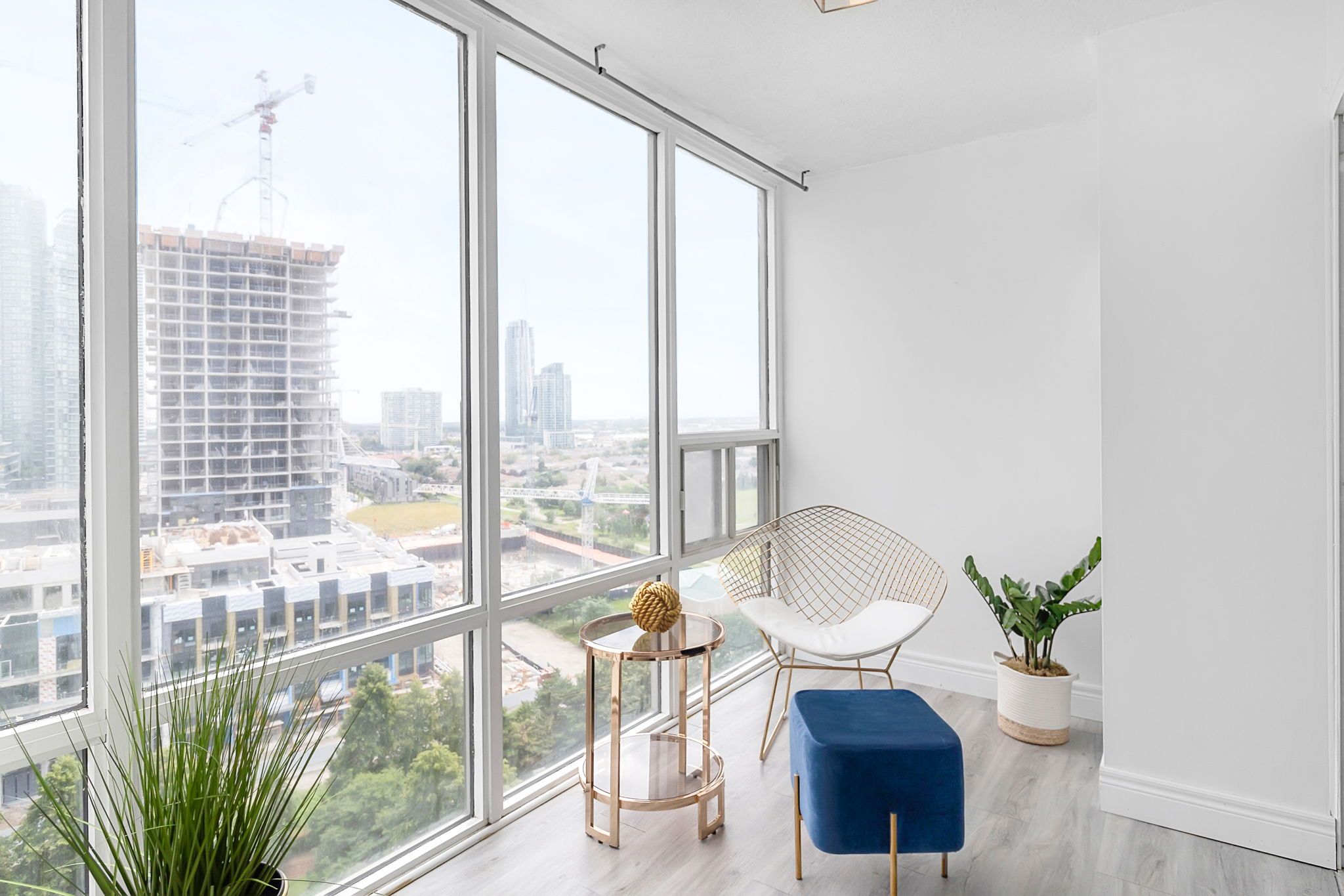 Welcome to this spacious 2 bedroom condo unit, located on the 17th floor. This home features beautiful granite countertops and stainless steel appliances in the kitchen. The living area boasts luxury vinyl flooring and an open layout showcasing an incredible skyline, with tons of natural light pouring into the suite. The primary bedroom offers an ensuite bath for added privacy and relaxation, as well as a walk-in closet. Enjoy breathtaking southeast facing views from the balcony or den, which makes an excellent solarium, office or cozy, sun-filled reading nook. Located within walking distance to Square One and a variety of restaurants, with easy access to Hwy 401/403. The building provides convenient amenities such as a 24-hour concierge, gym, billiards, indoor pool, hot tub and sauna, and two meeting/party rooms equipped with kitchenettes. This condo offers a remarkable living experience with attention to detail and comfort. Book your showing, today and don't miss this opportunity!Bell High Speed Internet, Rogers Cable TV Available, Gym, Concierge, Pool, Party Room, Billiard Room, Squash Court, Tennis Courts, Guest Parking