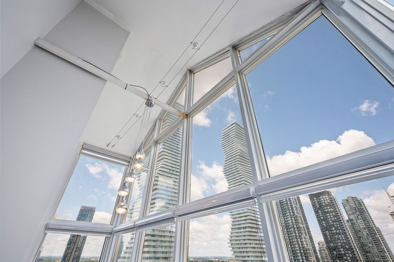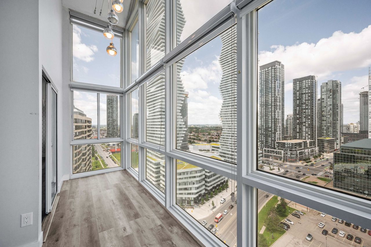 This spacious 1191 sqft premium penthouse condominium is located within a trendy residential community in the very desirable central Mississauga area. This beautifully maintained 2-bedroom, 2-bathroom plus solarium has a fantastic layout with vaulted high ceilings in the living/dining room, modern kitchen with an exceptional Island, and rare direct ensuite locker storage inside the condo! This house also boasts, incredible views, modern bathrooms, updated kitchen cabinetry with Stainless steel appliances, and an open concept main living area, perfect for entertaining and relaxing. Stroll throughout the property and be greeted by stunning flooring, sizable bedrooms, and natural cascading light throughout. The superb primary bedroom features a spacious 4-piece ensuite bathroom with a generous walk through his and hers closet and a private chic view of the City Centre. The second bedroom boasts a double closet with a Bright window, perfect for an office or bedroom. The solarium features additional living space and a fabulously vaulted ceiling. This condominium is beautifully landscaped, surrounded by greenery, magnificent gardens, and private visitor parking. **State Of Art Amenities include an indoor pool, fitness center, concierge, & more. Superb location with steps from convenient Square One Shopping, premium restaurants, Cooksville and square one Go Station & Hwy Access.**