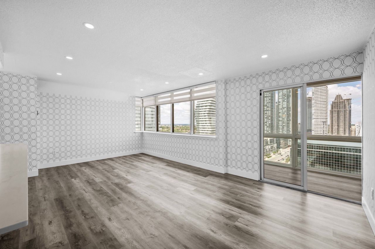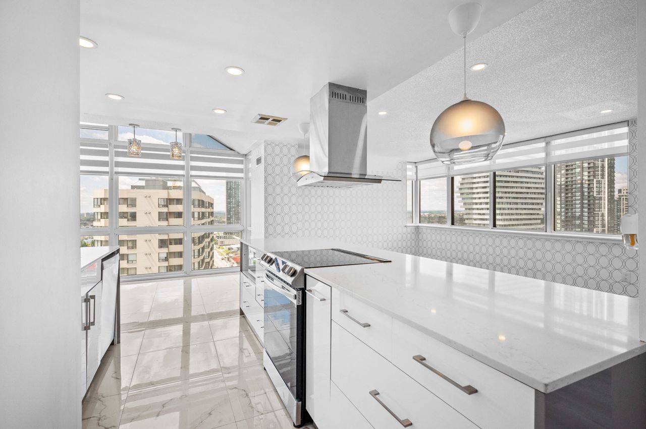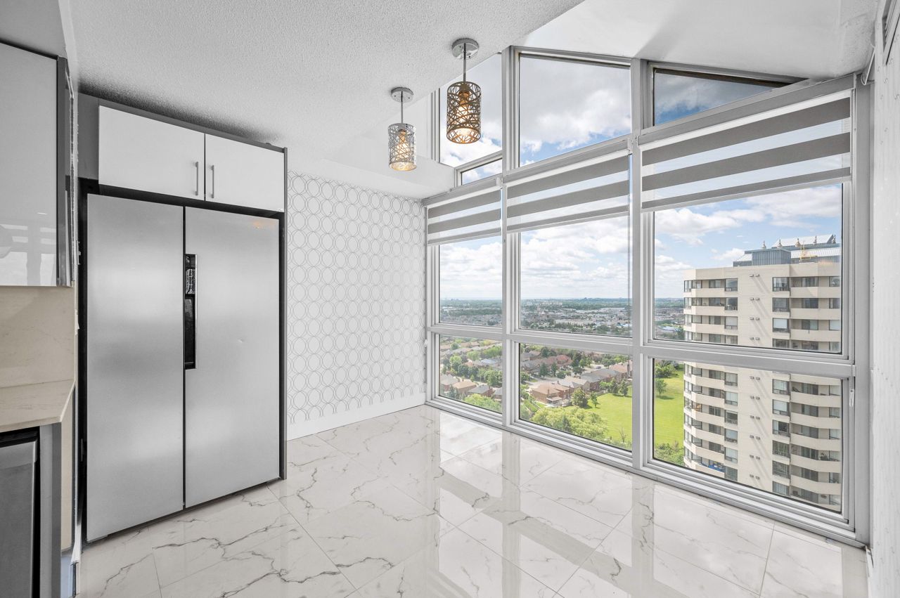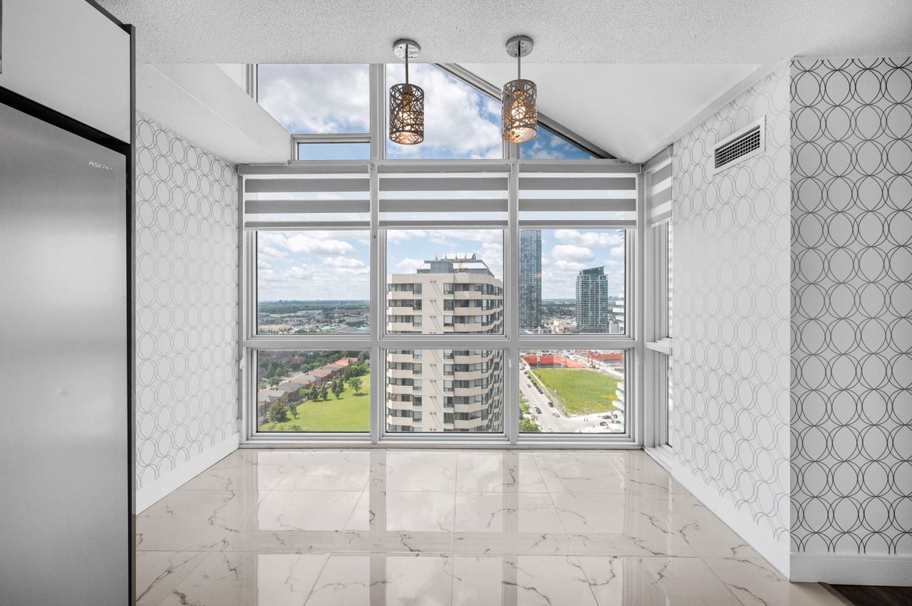 这套宽敞的1191平方英尺的优质顶层公寓式住宅,位于极具吸引力的中心密西沙加地区时尚的住宅社区内。这套维护精良的2卧室、2卫浴加阳光房公寓,布局绝佳,起居/餐厅拥有拱形高天花板,配备现代化厨房和突出的岛屿,以及公寓内罕见的直通套间储物柜!这栋住宅还拥有令人难以置信的景色、现代化的浴室、升级的厨房橱柜和不锈钢电器,以及开放式的主起居空间,非常适合娱乐和放松。漫步在房产周围,您会被令人惊叹的地板、宽敞的卧室和自然倾泻的光线所迎接。主卧室拥有宽敞的4件式套间浴室,配有宽敞的男女衣橱,以及市中心私密的时尚景观。次卧室配有双人衣柜和明亮的窗户,非常适合作为办公室或卧室。阳光房提供额外的生活空间和令人惊叹的拱形天花板。这栋公寓式住宅绿化景观优美,周围环绕着绿植、壮丽的花园和私人访客停车场。**先进的设施包括室内游泳池、健身中心、礼宾服务等。地理位置优越,步行即可到达便利的Square One购物中心、优质餐厅、Cooksville和square one Go车站以及高速公路通道。**