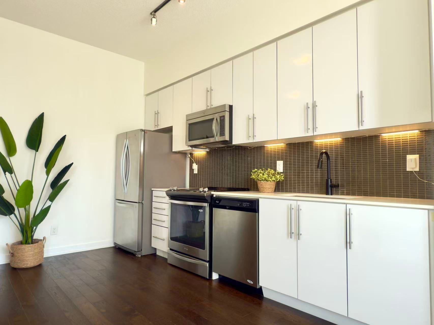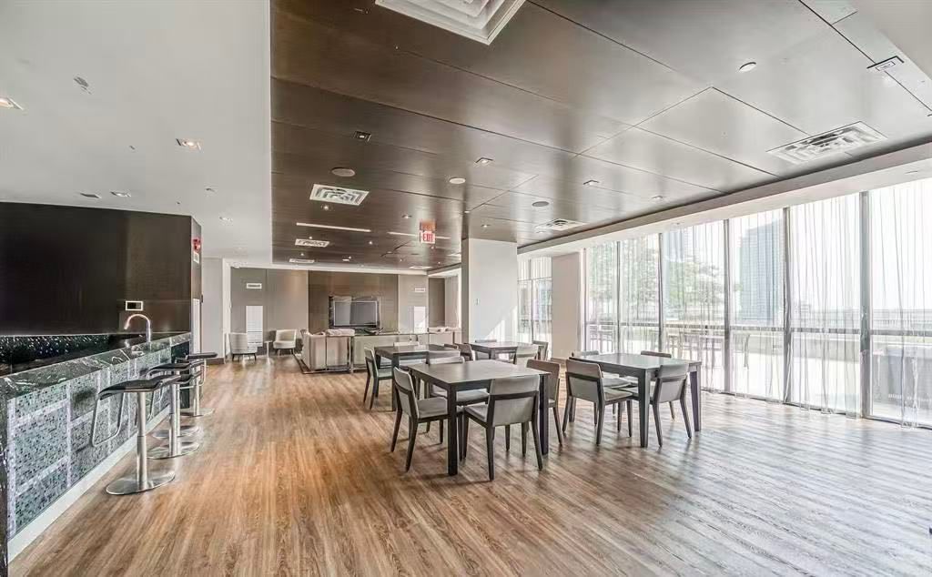 独一无二的单位,位于罕见的4层!这个明亮的公寓有10英尺高的天花板,并有一个通往约200平方英尺的私人遮盖露台,您可以享受其南向日照。它的车库位置离电梯非常近。落地窗,工程木地板覆盖整个区域,有储物间。24小时礼宾服务,室内游泳池,桑拿房,访客套房,健身房,派对/会议室,电影院。