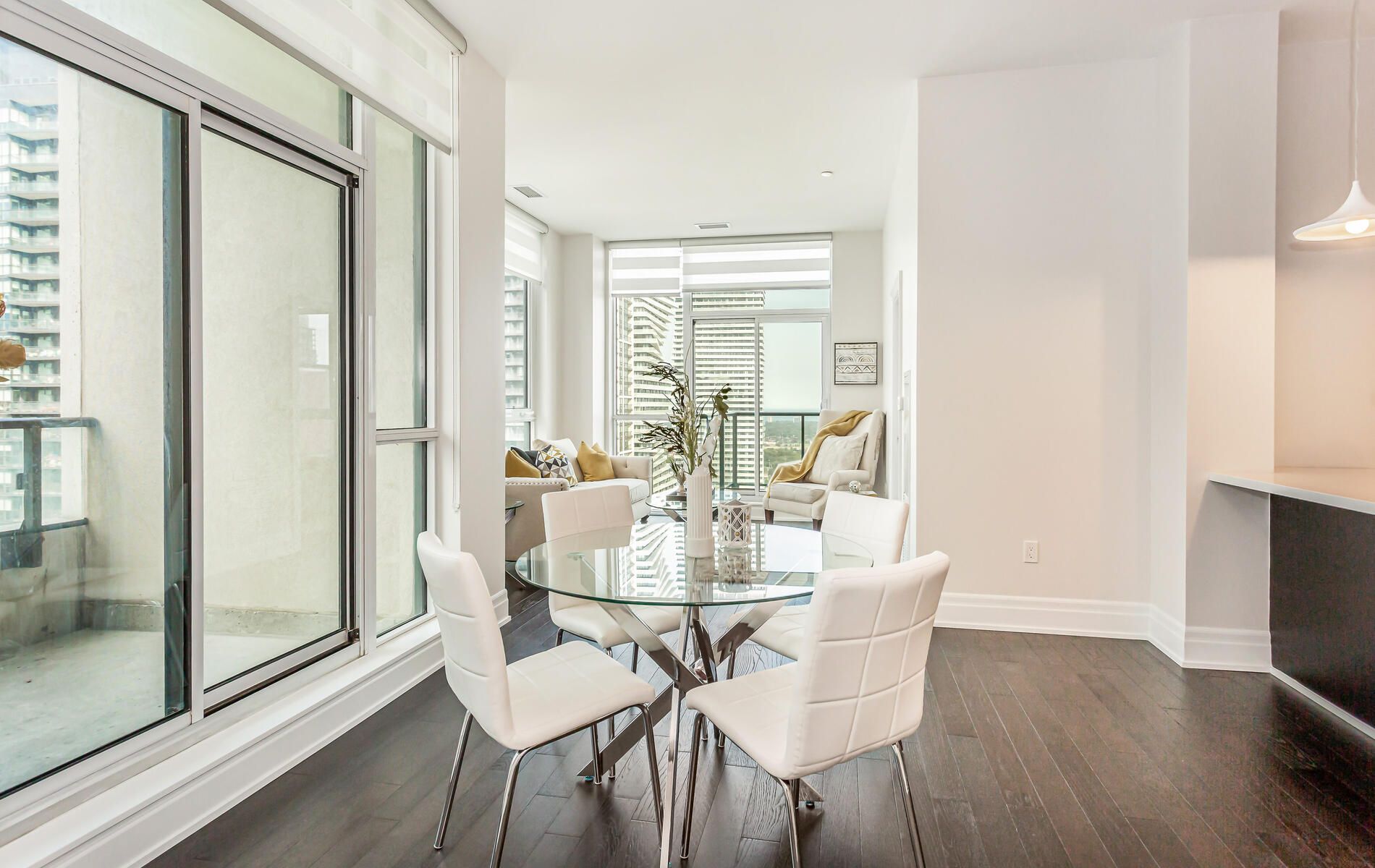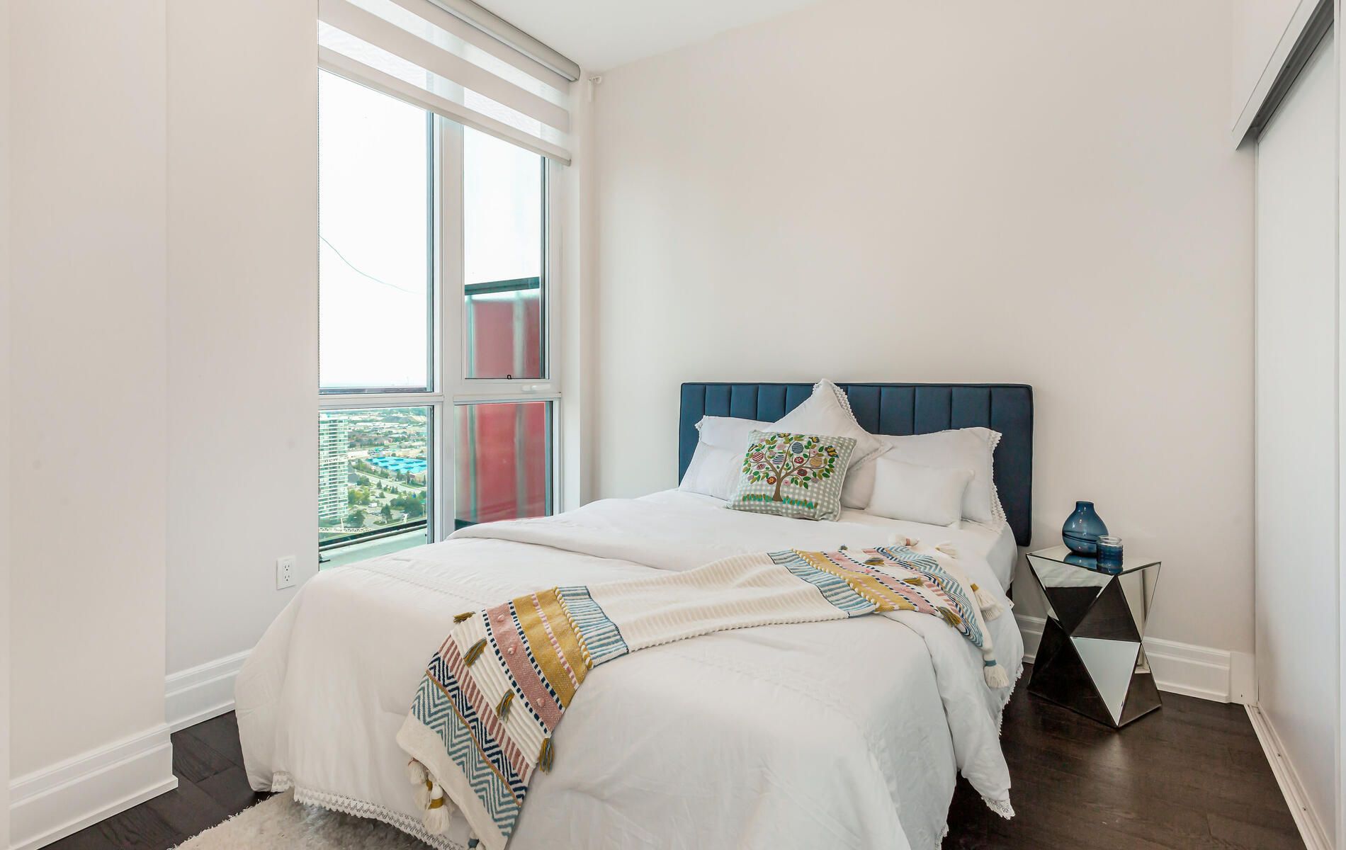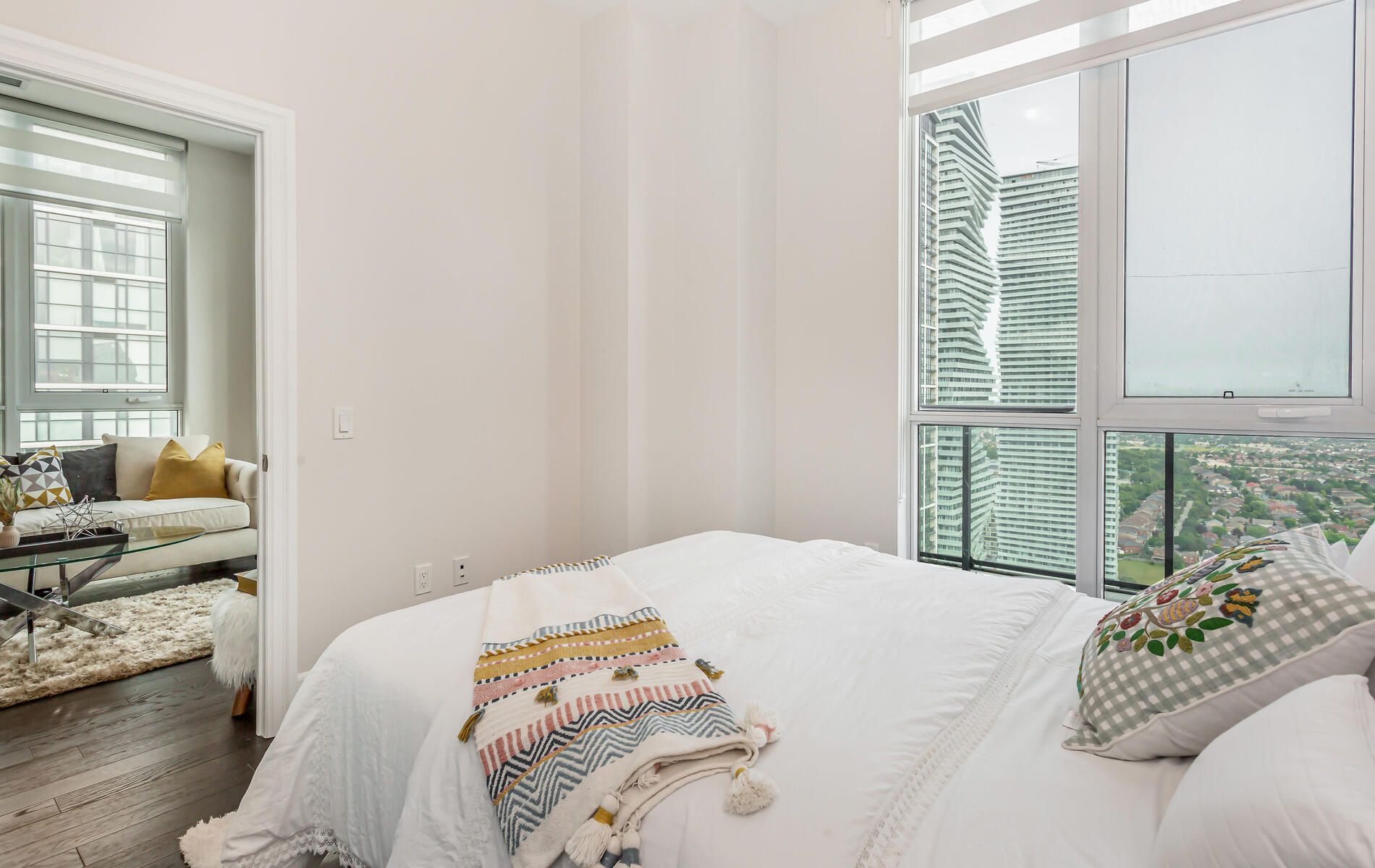 Corner Penthouse 2 Bedrooms Plus Den With 10 Ft Ceiling, 2 Full Bathrooms Featuring A Great Floor Plan With A Spectacular South East View With Two Larg Terraces, Large Open Concept Living/Dining, Modern Kitchen With Fall Counters, Panel Fridge & Dish Wisher, Bright Primary Bedroom W/ Walk-In Closet & 4 Pc Ensuite. Great Location, Within Walking Distance To Square One, Ymca, Celebration Square, City Hall, Centre Library, And Much More. Please Do Not Use Washroom$$$ Spend On Quality Upgrades 10Ft Ceiling Panel Appliances, Window Louvers, Two Full Washrooms, Dark Flooring, And Large Baseboard.