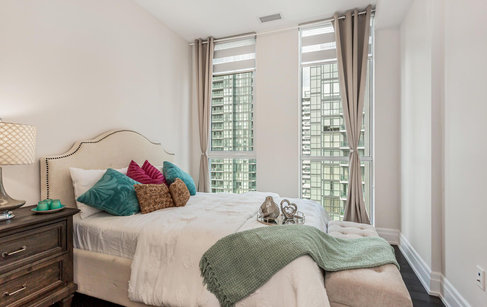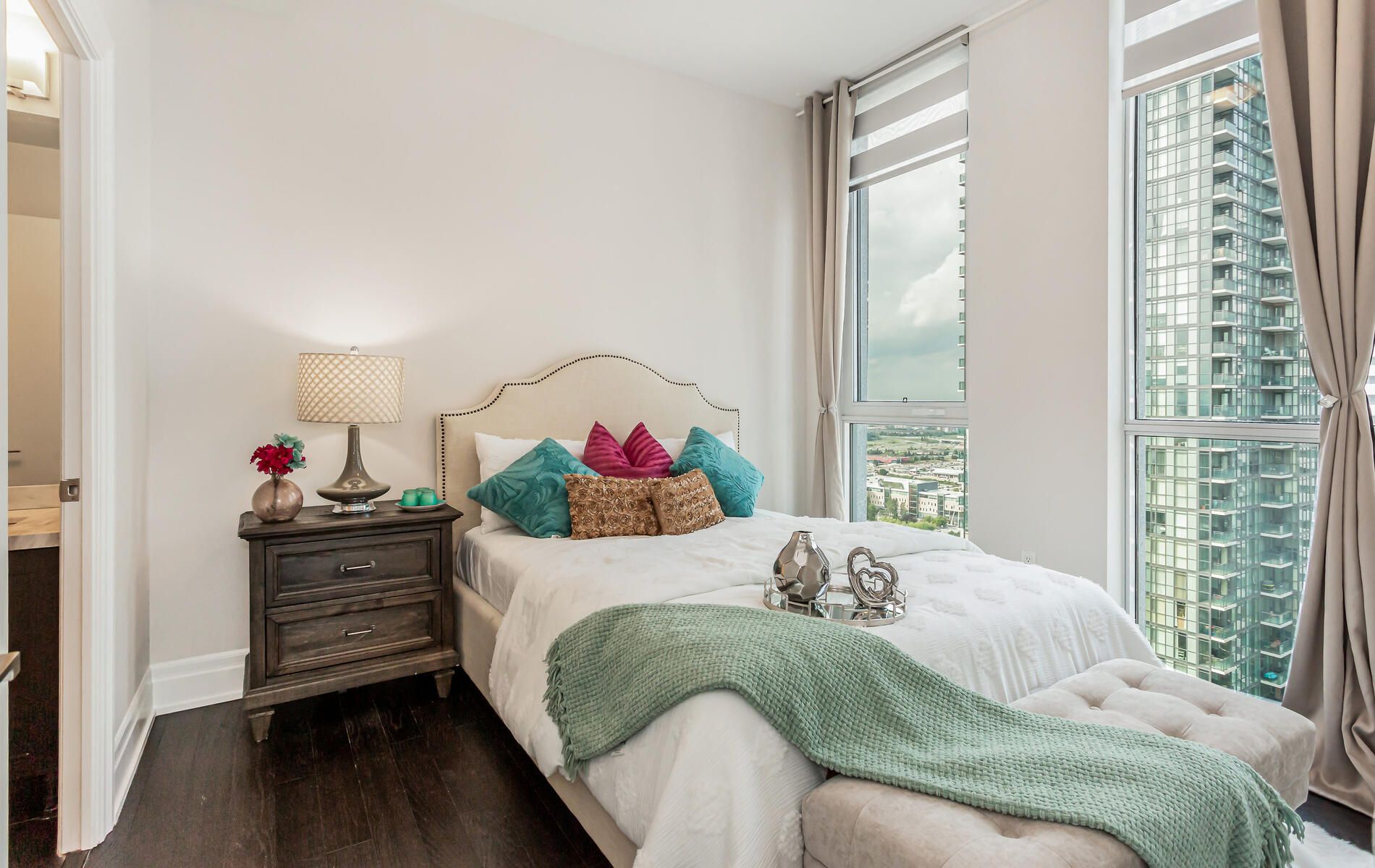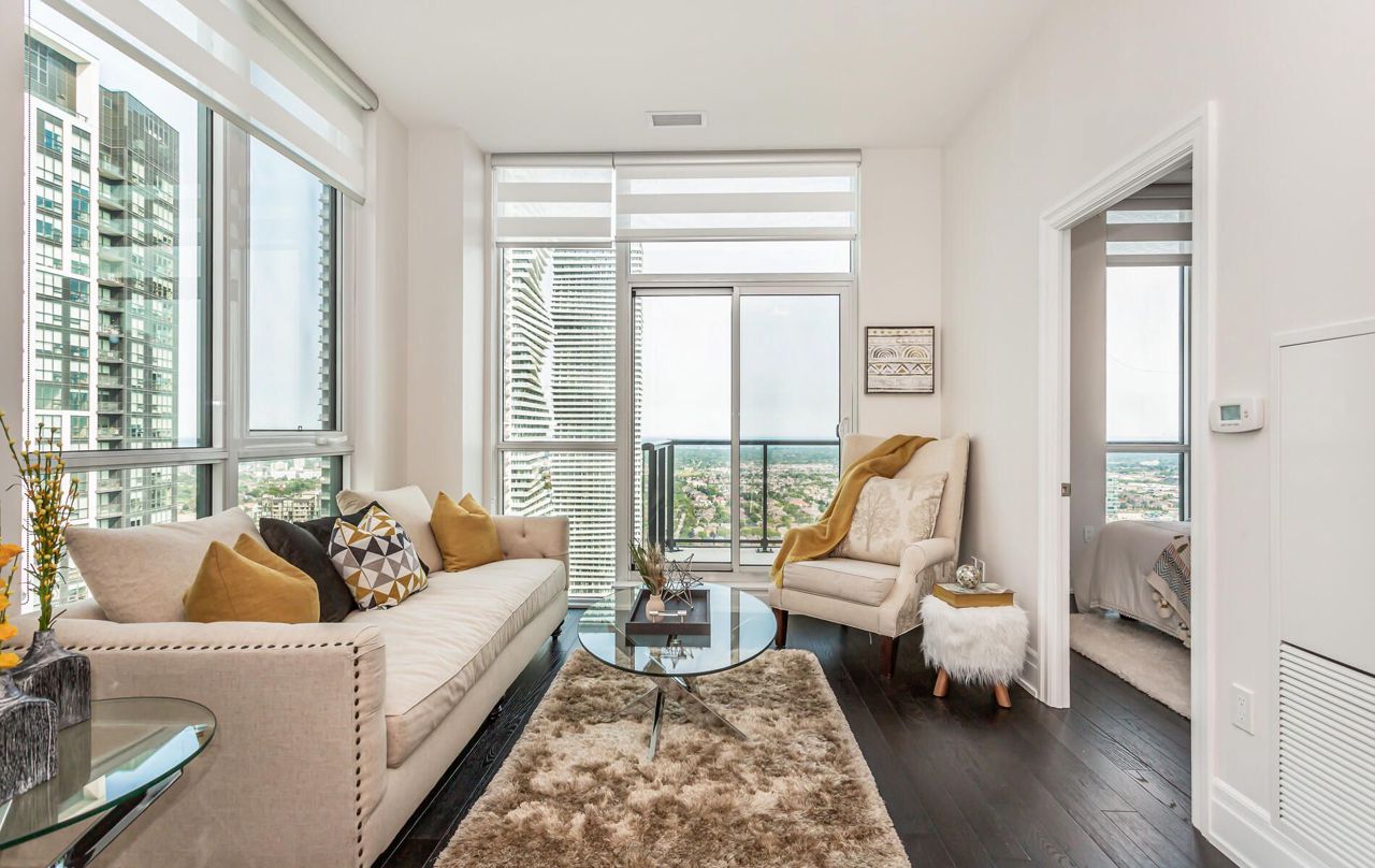 Corner Penthouse 2 Bedrooms Plus Den With 10 Ft Ceiling, 2 Full Bathrooms Featuring A Great Floor Plan With A Spectacular South East View With Two Larg Terraces, Large Open Concept Living/Dining, Modern Kitchen With Fall Counters, Panel Fridge & Dish Wisher, Bright Primary Bedroom W/ Walk-In Closet & 4 Pc Ensuite. Great Location, Within Walking Distance To Square One, Ymca, Celebration Square, City Hall, Centre Library, And Much More. Please Do Not Use Washroom$$$ Spend On Quality Upgrades 10Ft Ceiling Panel Appliances, Window Louvers, Two Full Washrooms, Dark Flooring, And Large Baseboard.