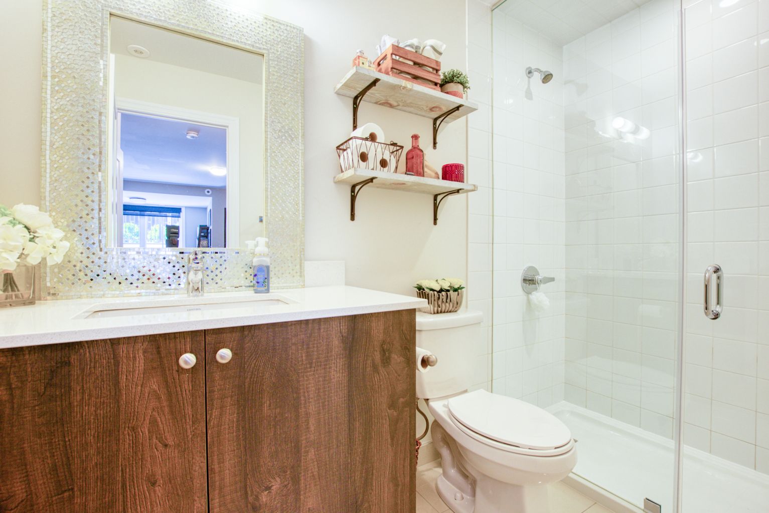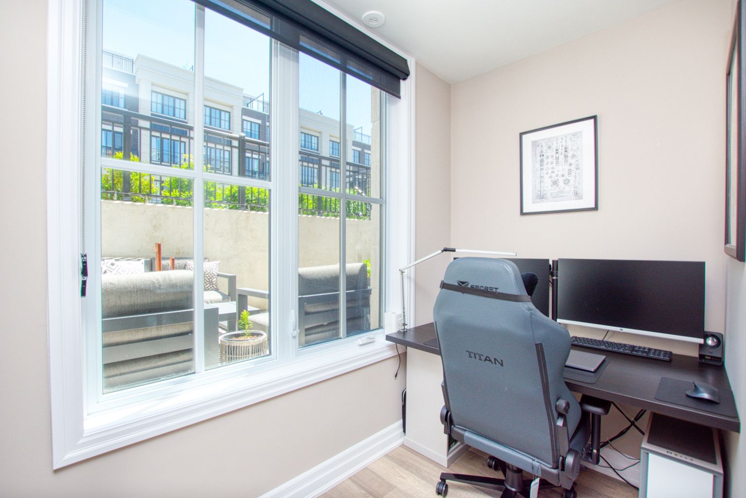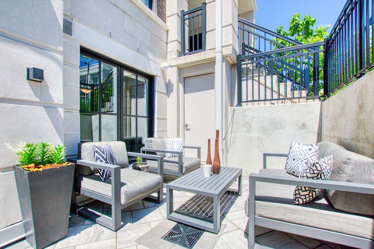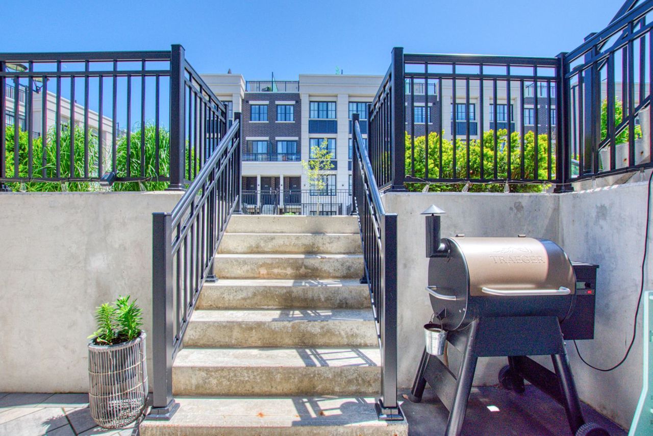 Welcome To The Reserve in Mineola! This Highly Sought-After Modern Stacked Townhouse Is Tastefully Upgraded Throughout! Features A Large 193 SqFt Terrace W/ 2 Large Storage Rooms Leading to a Sunlit Front Foyer With a Custom Built Hall Tree. Enjoy a Spacious Open Concept Living/Dining Area, Custom Built-in TV Cabinet, Modern Kitchen With Quartz Countertops, Upgraded Backsplash, Stainless Steel Kitchen Appliances, Tons Of Cabinet Space, Potlights, Custom Dual Roller Shades in the Bedrooms, Nest Thermostat, Black Door Handles, Black Faucet and much more!! Master Bedroom Features An Office/Den Area With a Built-In Desk and an En-Suite With an Upgraded Frameless Floor to Ceiling Shower Glass. 9Ft Ceiling Throughout with Large Windows For Lots Of Natural Light!Exclusive Private Garden Terrace With Electricity and Gas Line for BBQ. Front Facing Unit Allowing You to Unload Groceries With Ease From Private Road. Quick Access to QEW, Lakefront Promenade, GO Train Station, Public Transit and Schools