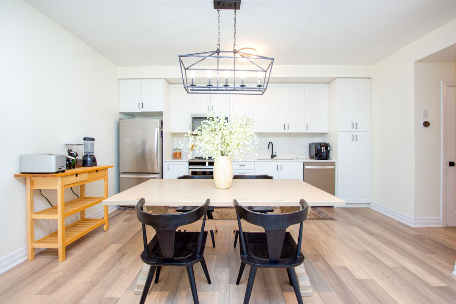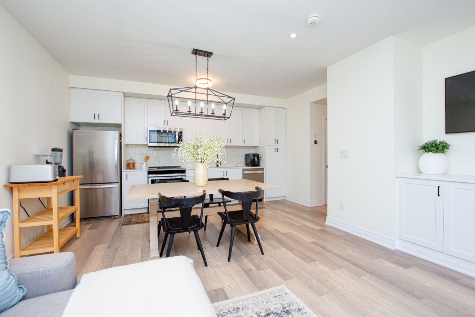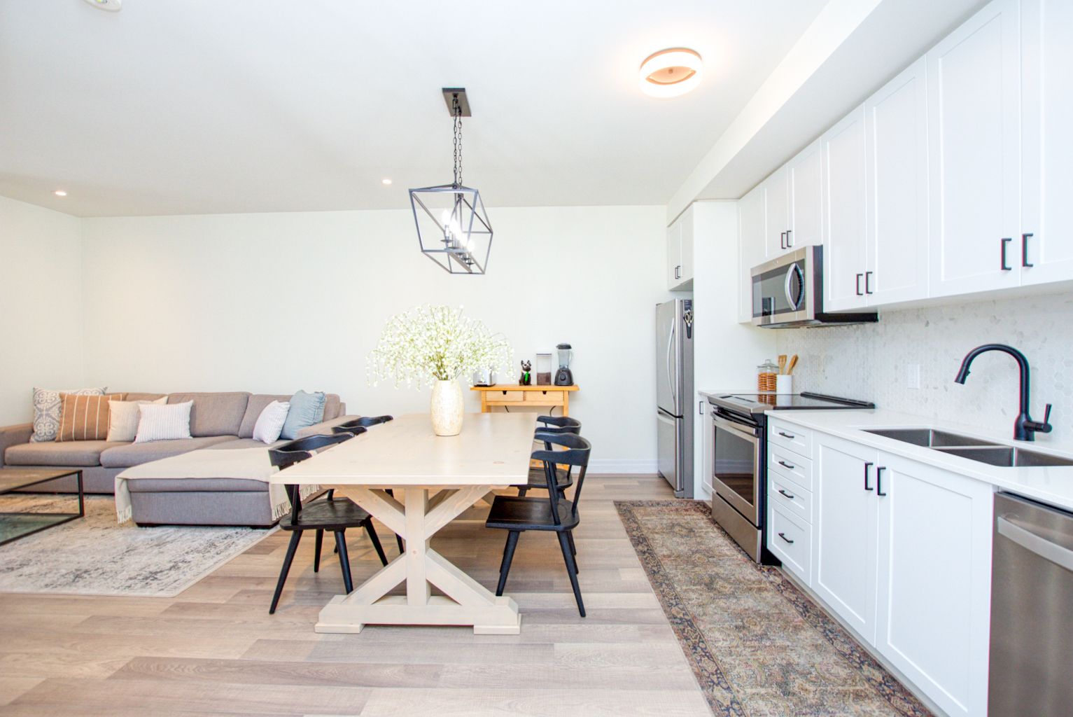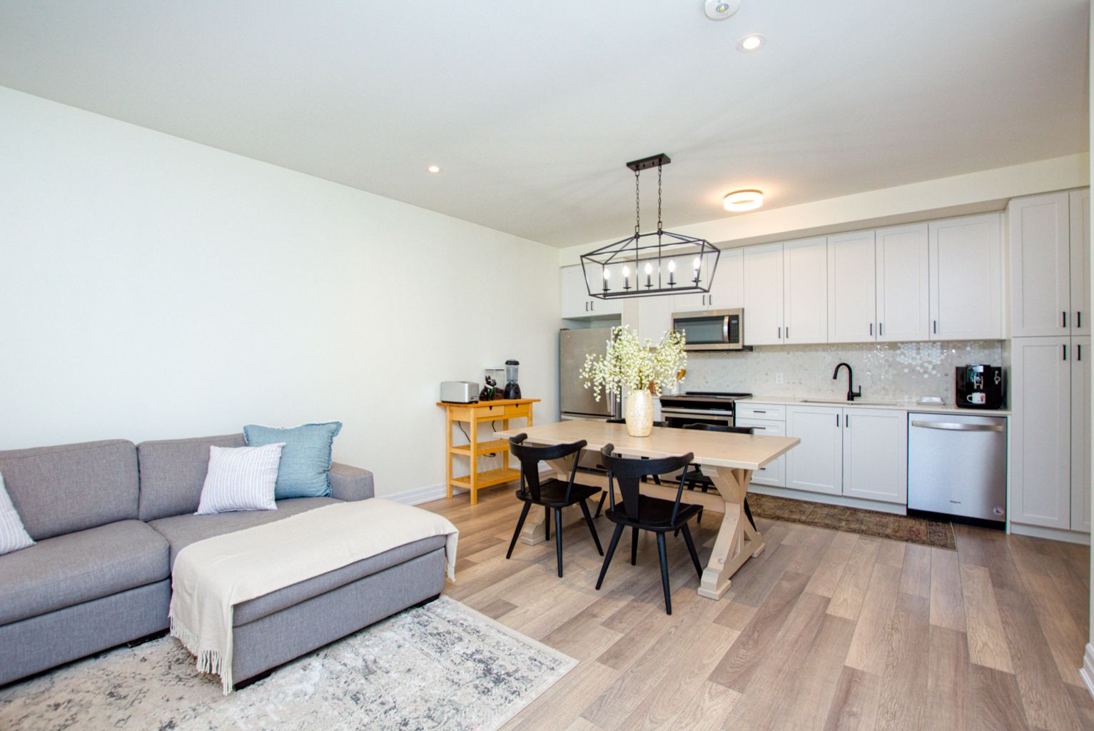 Open Concept Quartz Counter Stainless Steel Appl