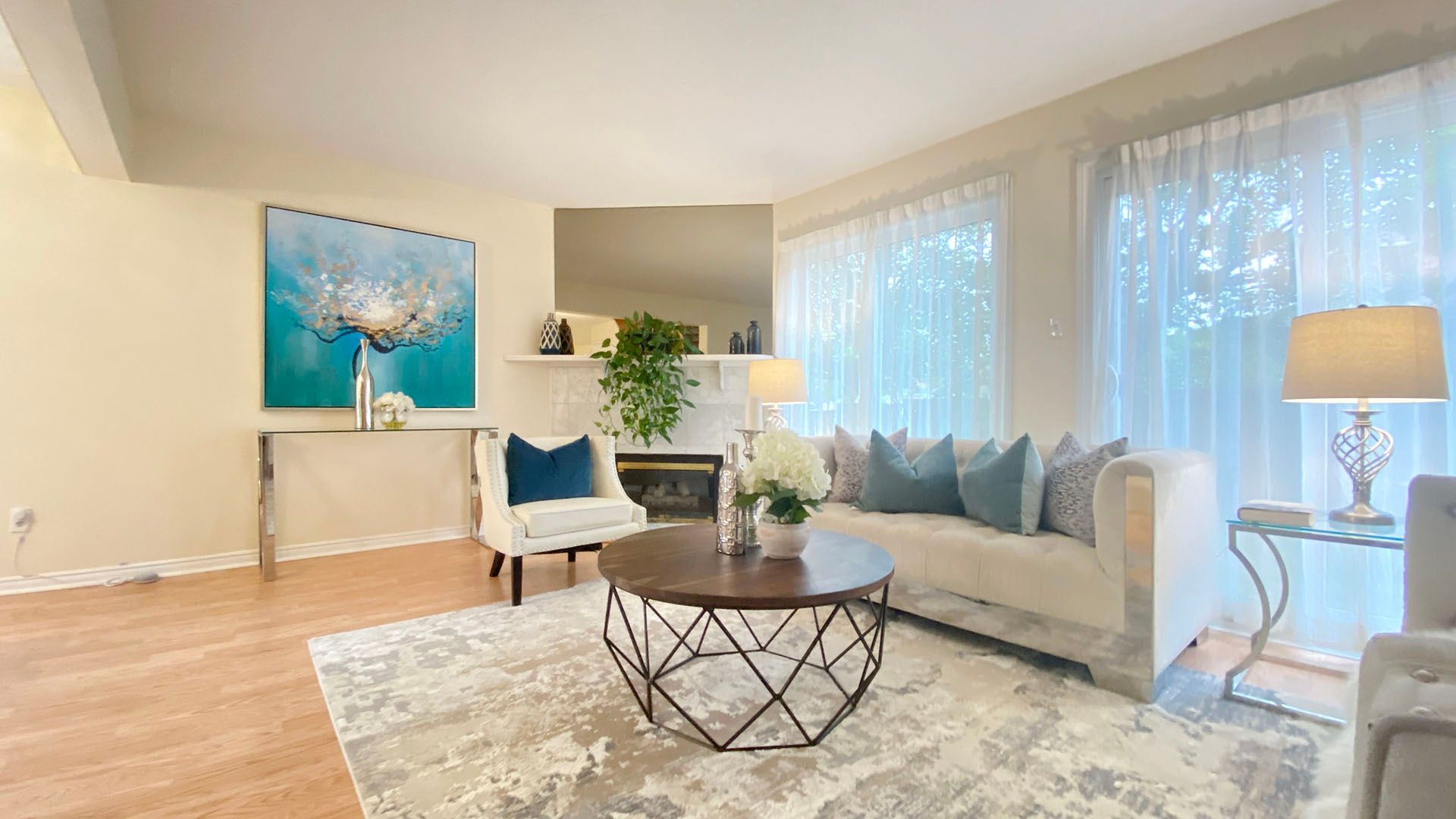 Laminate Fireplace O/Looks Backyard