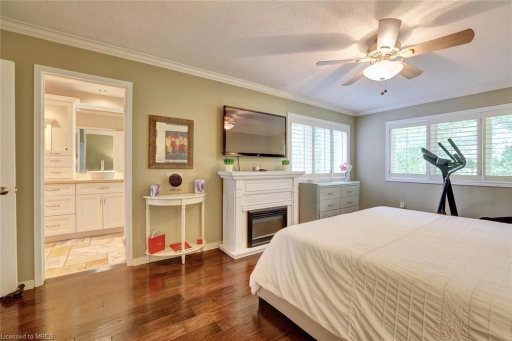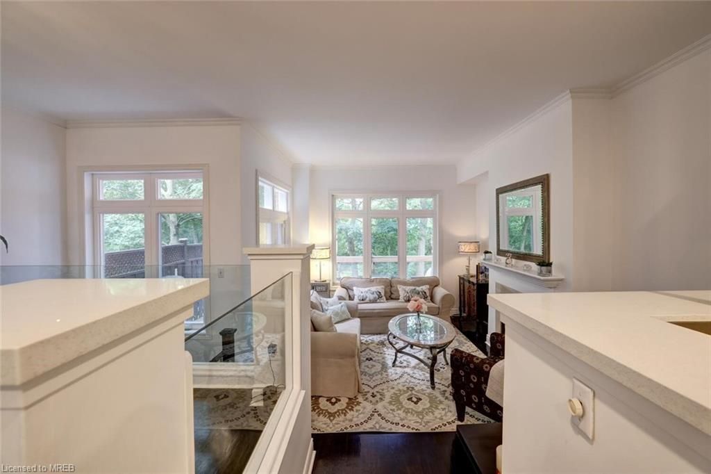 Rarely Offered Ravine Unit!! This Fabulous Updated Executive Townhouse located in coveted Lorne Park offers 3 Bedrooms, 4 Bathrooms and a completely finished lower level. Recently Updated Kitchen (Fall 2021) features porcelain tiles, quartz counters + island, SS appliances, pot lights & pendant lighting. Hardwood floors in dining room. Sunken Living Room with hardwood floors, gas fireplace with walkout to private deck overlooking lush and private ravine. Lower Level offers cozy broadloom, 3 piece bath, large closet and spacious utility/storage room. The upper floor boasts hardwood floors, spacious primary suite complete with walk-in closet, 5 piece ensuite overlooking tranquil ravine. 2nd bedroom with hardwood floors & large double closet. 3rd bedroom with hardwood floors, murphy bed and large closet. Walk to lake, port credit, parks and highly rated Lorne Park schools.All closets w custom built-in organizers Owned tankless HWT.4 wall mounted televisions.Newer furnace & A/C (2015).Dbl Murphy Bed.California Shutters on all windows.Wired Back Outdoor Lighting w timer. New back deck floor boards (Sept. '23)