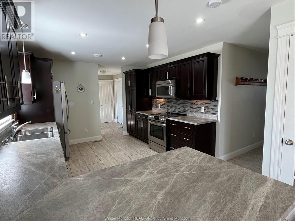 Executive home in Moncton North. Stepping in this magnificent home, you are immediately drawn to a beautiful staircase then a few steps in the living room you then walk into the open concept dining room with custom made kitchen cabinets with lots of space and storage! Then walking towards the garage entrance to the house, you find a 1/2 bath and laundry room with a new washer/dryer just bought a few months ago. Going up the staircase to the 2nd floor, 3 spacious bedrooms, master bedroom has a 4pcs ensuite and a walk-in closet. Then another 4pcs bath. Going downstairs, you find a great family room and a storage/furnace room with plenty of storage. New features: Metal roof new in 2022. Great features to have are: natural gas heating, central air and central vacuum. Cabinets in garage new 2021 Epoxy floor in 2021, fenced backyard with a black chain link approx 210 feet installed in 2021. Cabana in 2022 with full power 10 x 12 decking backyard deck in 2012, dog kennel 10 x 10 chain link black fence installed in 2021 for full private backyard. (id:22211)