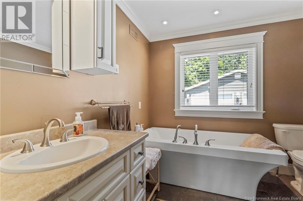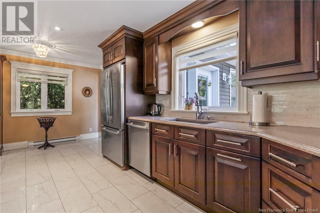 See Virtual Tour & Brochure. DISTINCTLY BEAUTIFUL SHEDIAC RD HOME. situated on a PROMINENT LOT with DRIVE-THROUGH GARAGE. This beautiful one-level living bungalow fronts on Shediac Road with a 2nd driveway & garage access from Pleasant St behind. A lge treed lot, front curb appeal & backyard ambience all so close to all amenities. The beautiful inter-locking front walkway & retaining wall landscaping leads you to the front entry where youll be warmly welcomed to the foyer and open concept design. This home was completely renovated in 2011; only the outside walls remained. This renovation incl new electrical; plumbing; windows & siding; extra insulation added in attic; & foam insulation added on exterior walls. The beautifully designed inside now features a GORGEOUS Kitchen showcasing a massive Island, solid surface countertops, & rich, dark cabinetry. This will be the center of family gatherings & weekend entertaining, as its comfortably situated between the spacious Dining Area & 4 SEASON ROOM, which leads to an outside deck where youll enjoy that morning coffee! The large LR boasts an oversized, bright front window & working Wood Fireplace for those cozy evenings. The main floor is rounded out with 2 Bedrooms; one with Ensuite w/ Soaker Tub & Shower & a WI Closet; 2nd Bedroom; Family 4 PC Bath; & Laundry. The downstairs has all exterior walls insulated to R-20 w/ blueboard walls; & roughed-in bathroom. Easily finished for additional space or plenty of great storage. (id:22211)