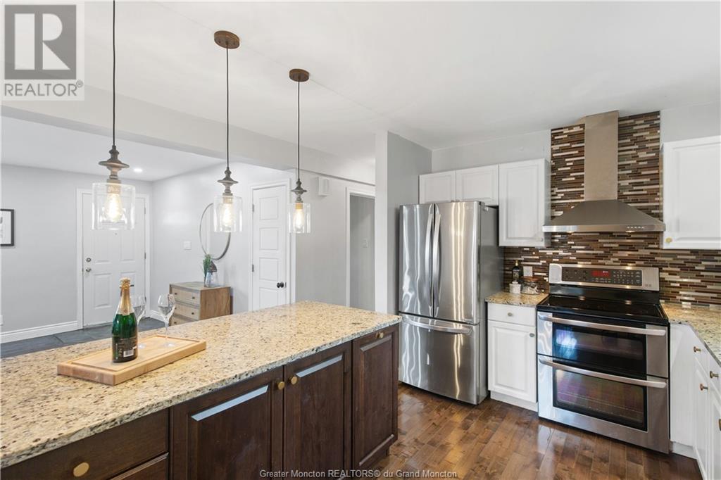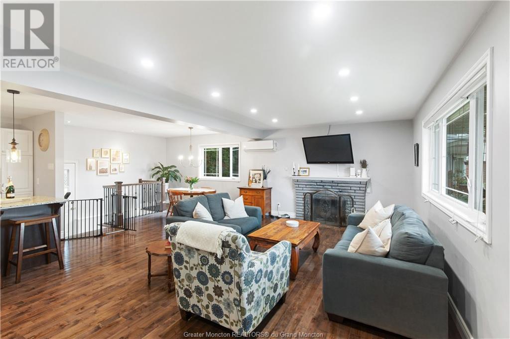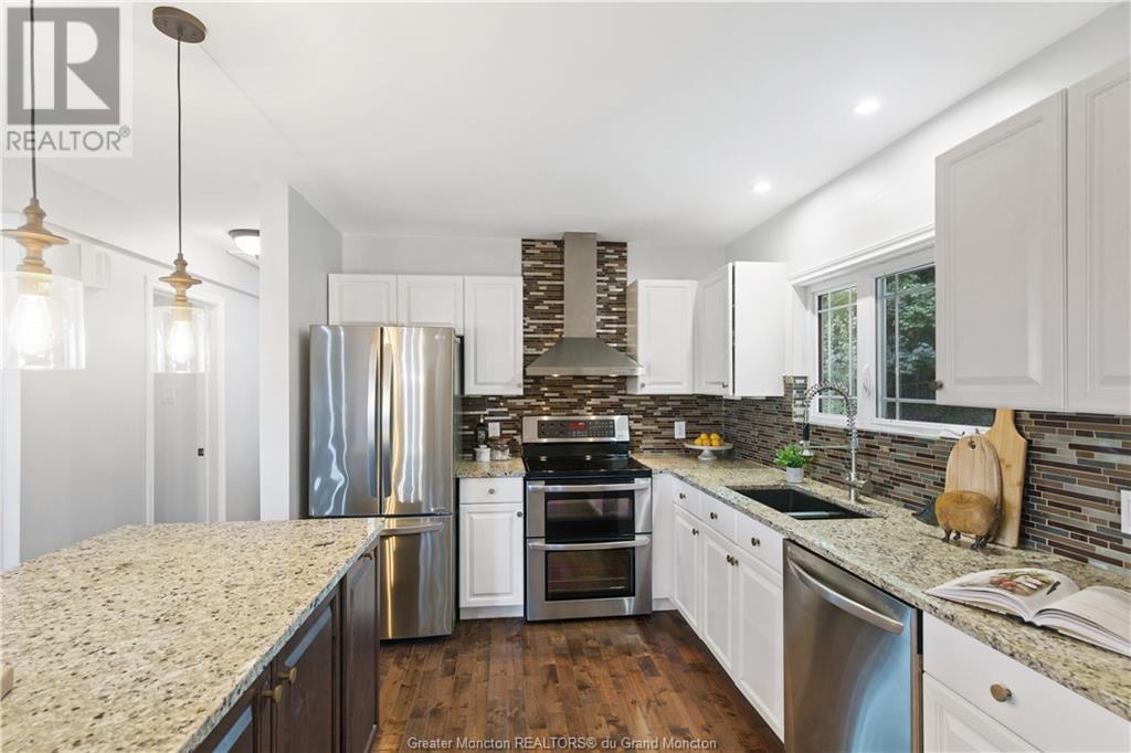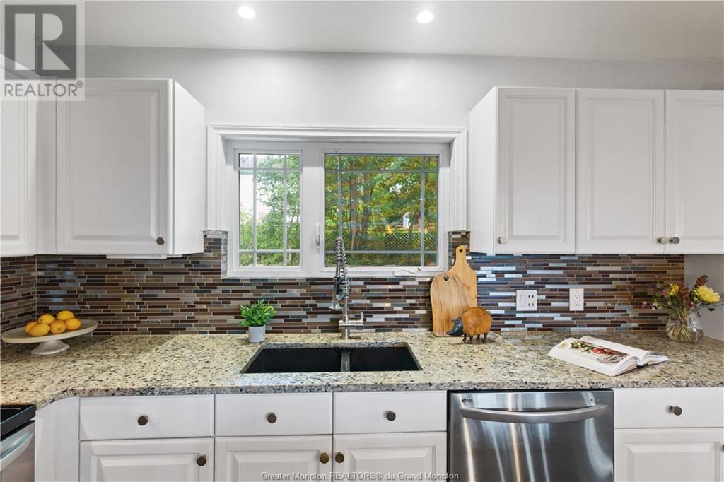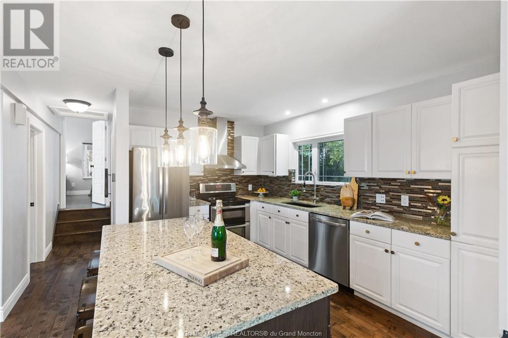 CLICK ON MEDIA REEL FOR 3D TOUR. Located in Moncton's popular New West End, this home is nestled in a highly sought-after neighborhood, just moments away from the serene beauty of Jones Lake. Enjoy nature's tranquility in your own backyard. Step into this contemporary home featuring a sleek kitchen w/ granite countertops, an open-concept living w/ wood burning fireplace, and hardwood and ceramic flooring throughout the house. Experience the spaciousness of a vaulted ceiling in the primary bedroom with a 4pc ensuite. The single garage has a separate entrance to the finished basement that adds valuable living space and convenience. With a 3-pc bath, it's perfect for guests or family members seeking their own retreat, OR a potential income opportunity! Don't miss your chance to own this modern, versatile, and conveniently located property. It's a perfect blend of style, comfort, and income potential in a desirable neighborhood. CALL YOUR FAVORITE REALTOR® TODAY FOR YOUR PRIVATE VIEWING. (id:22211)