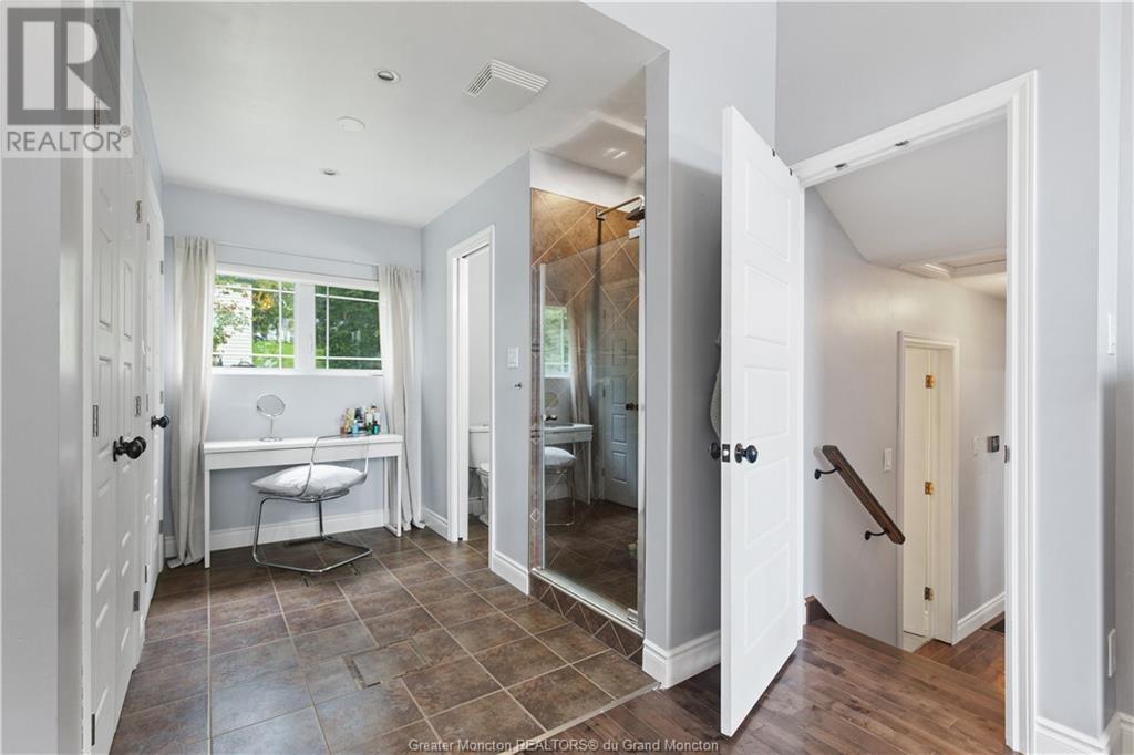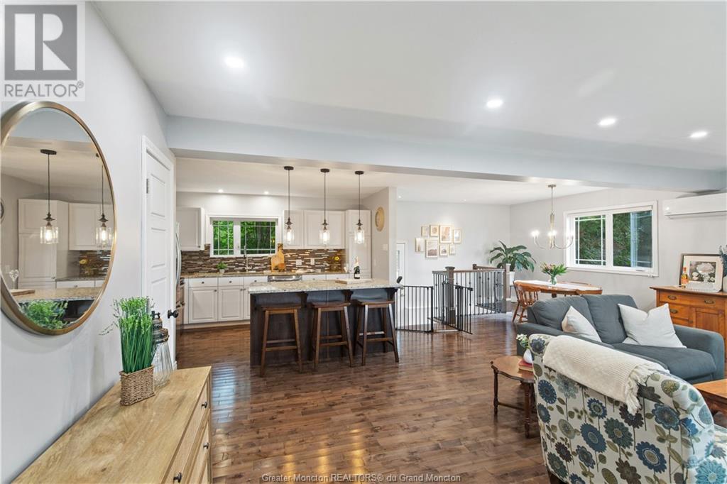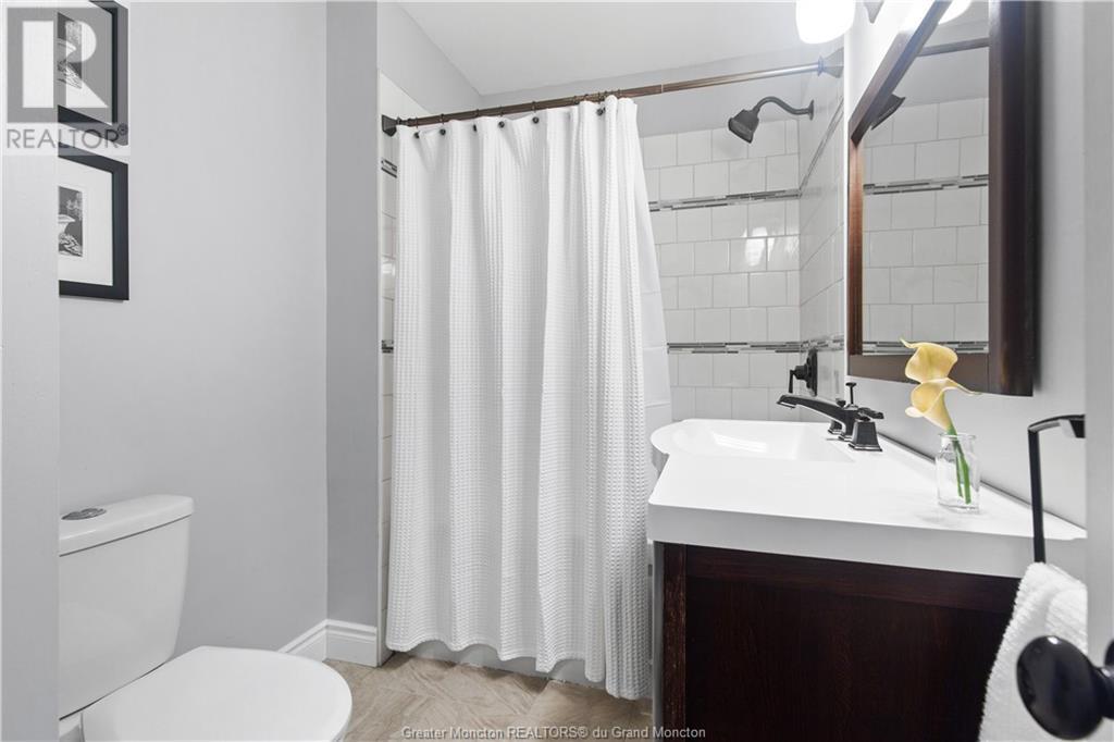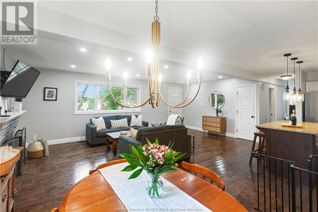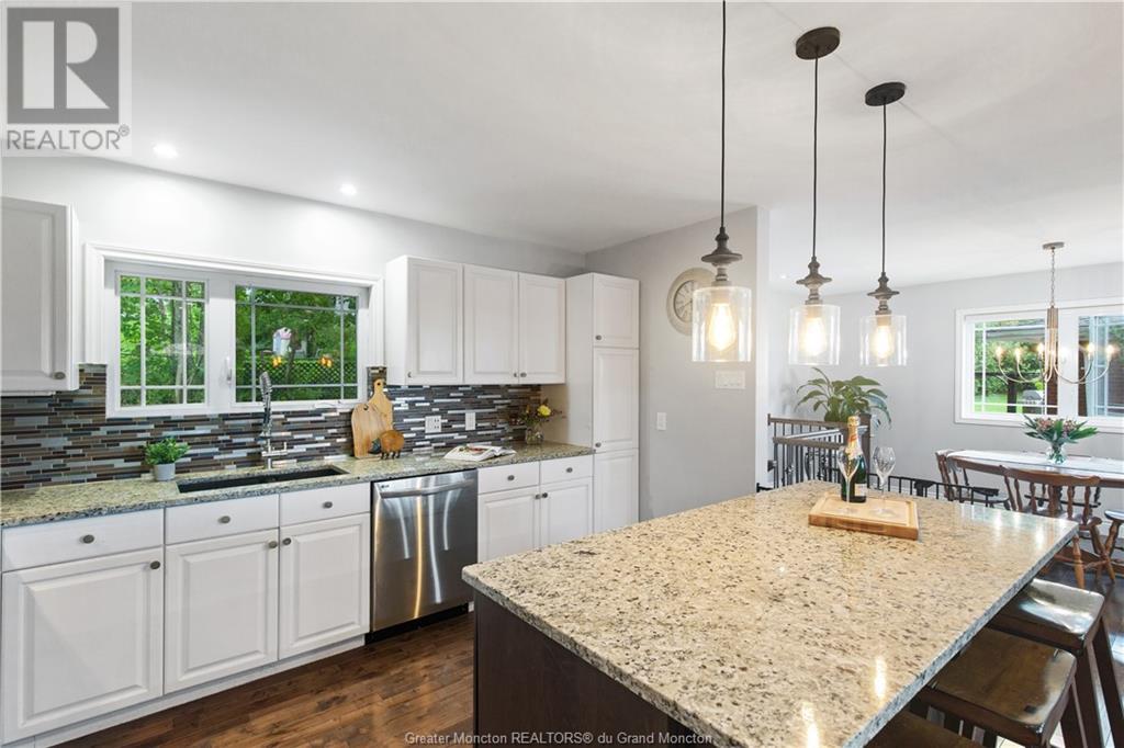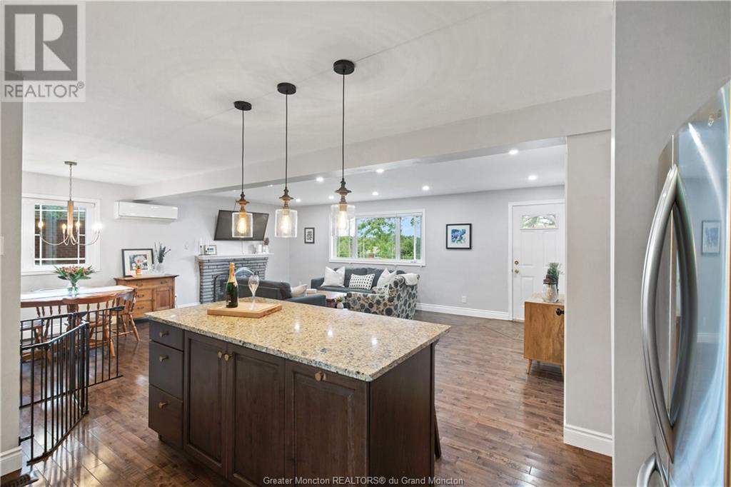 CLICK ON MEDIA REEL FOR 3D TOUR. Located in Moncton's popular New West End, this home is nestled in a highly sought-after neighborhood, just moments away from the serene beauty of Jones Lake. Enjoy nature's tranquility in your own backyard. Step into this contemporary home featuring a sleek kitchen w/ granite countertops, an open-concept living w/ wood burning fireplace, and hardwood and ceramic flooring throughout the house. Experience the spaciousness of a vaulted ceiling in the primary bedroom with a 4pc ensuite. The single garage has a separate entrance to the finished basement that adds valuable living space and convenience. With a 3-pc bath, it's perfect for guests or family members seeking their own retreat, OR a potential income opportunity! Don't miss your chance to own this modern, versatile, and conveniently located property. It's a perfect blend of style, comfort, and income potential in a desirable neighborhood. CALL YOUR FAVORITE REALTOR® TODAY FOR YOUR PRIVATE VIEWING. (id:22211)