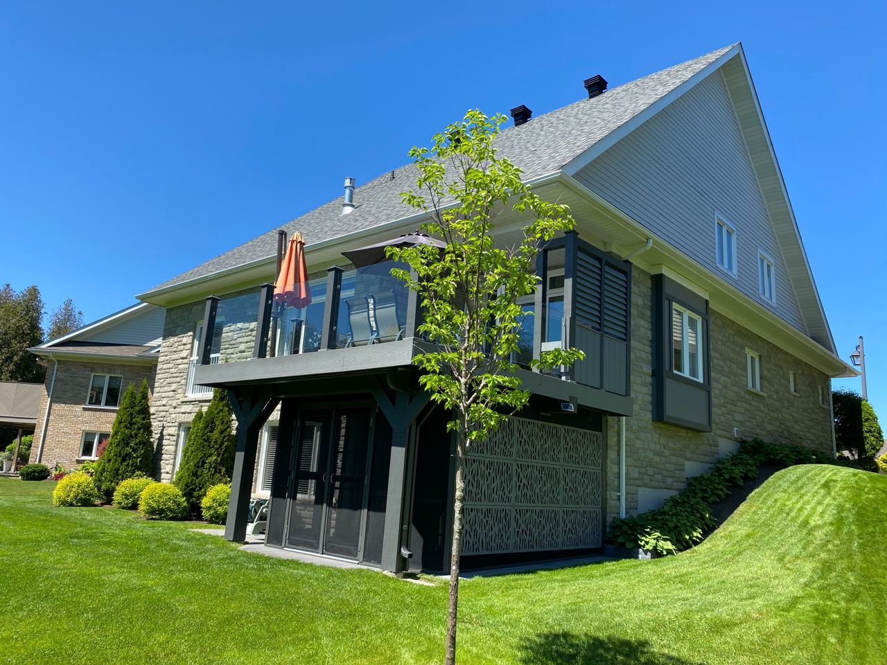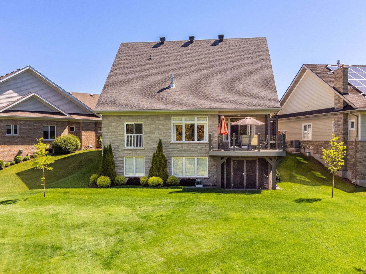 Wonderful 2 Story Home in the Watermark community with an exceptional large lot backing onto Monora Park & walking trails! Built in 2009, this great property has over 4100 Total sq feet of living space (including basement). Walk-out to a fully screened patio (2021) from the fully finished basement. Features a welcoming foyer on main floor, open concept living room with vaulted ceiling, natural gas fireplace and large composite deck (2021) overlooking wonderful peaceful scenery. Enjoy a spacious dream kitchen (2020) with breakfast area and separate dining room; main floor laundry room (2020). With 2 primary suites, you can enjoy the benefit of each level with beautiful ensuite bathrooms and closet space - lots of room for extended family, entertaining and storage. Freshly painted throughout with many upgrades done. Request the full list of house features. **** EXTRAS **** Central vacuum, inground sprinklers, reverse osmosis water filter system, sauna, new roof (2020), garage doors (2020), high-efficiency furnace (2021). Community residents have access to the private community centre with an event room, library, theater, billiards, fitness centre and more!