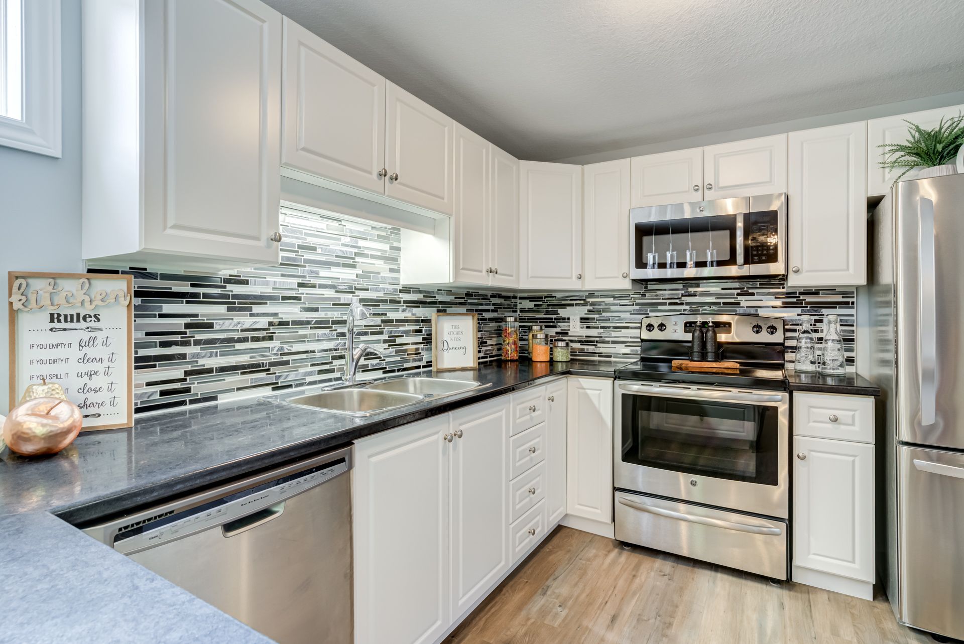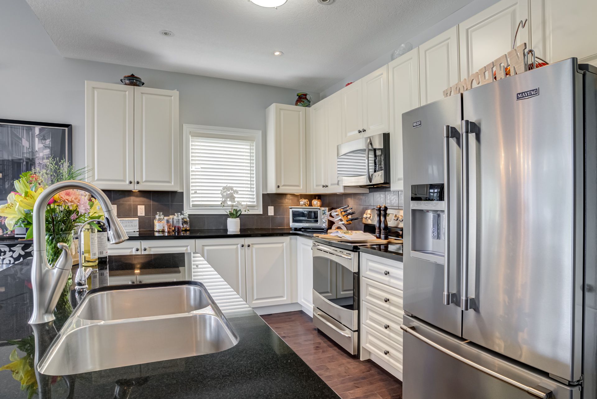 Granite Counter Double Sink Hardwood Floor