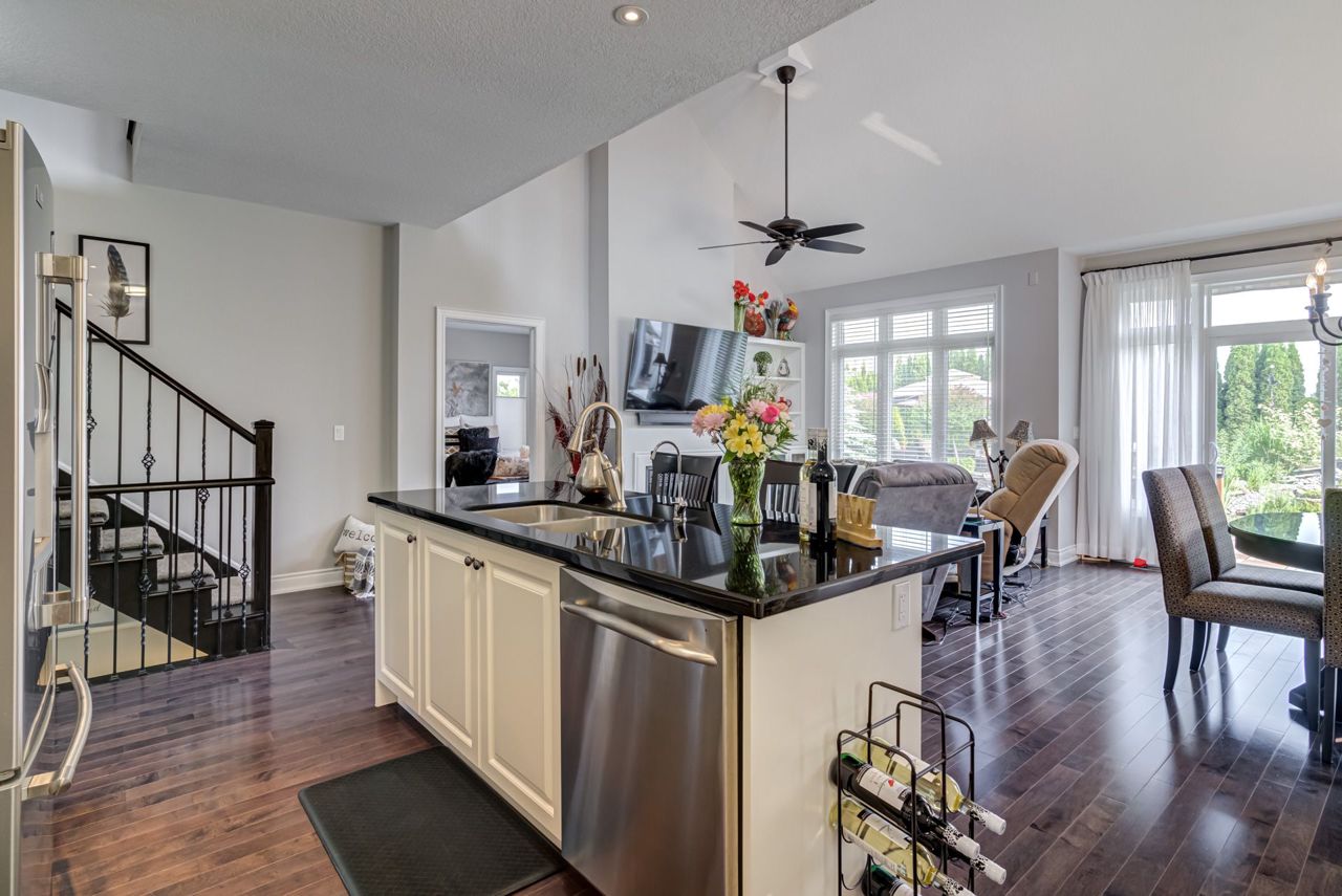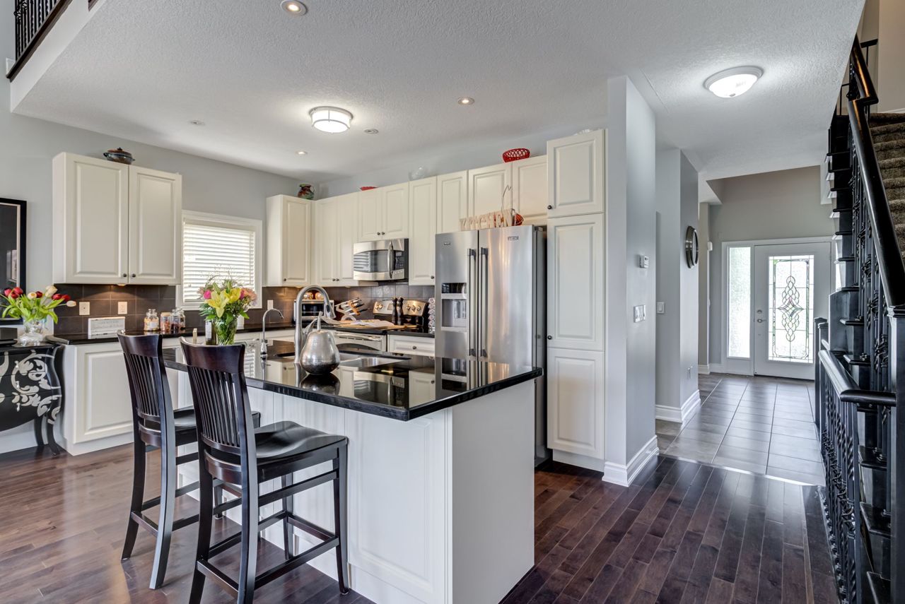 Hardwood Flrs Throughout upper and main Floor Lead You To a Bright Open Concept Kitchen with Double Sink, Ss Appliances, Large Granite Centre Island, Lots of Cupboard space, Gas Fireplace,