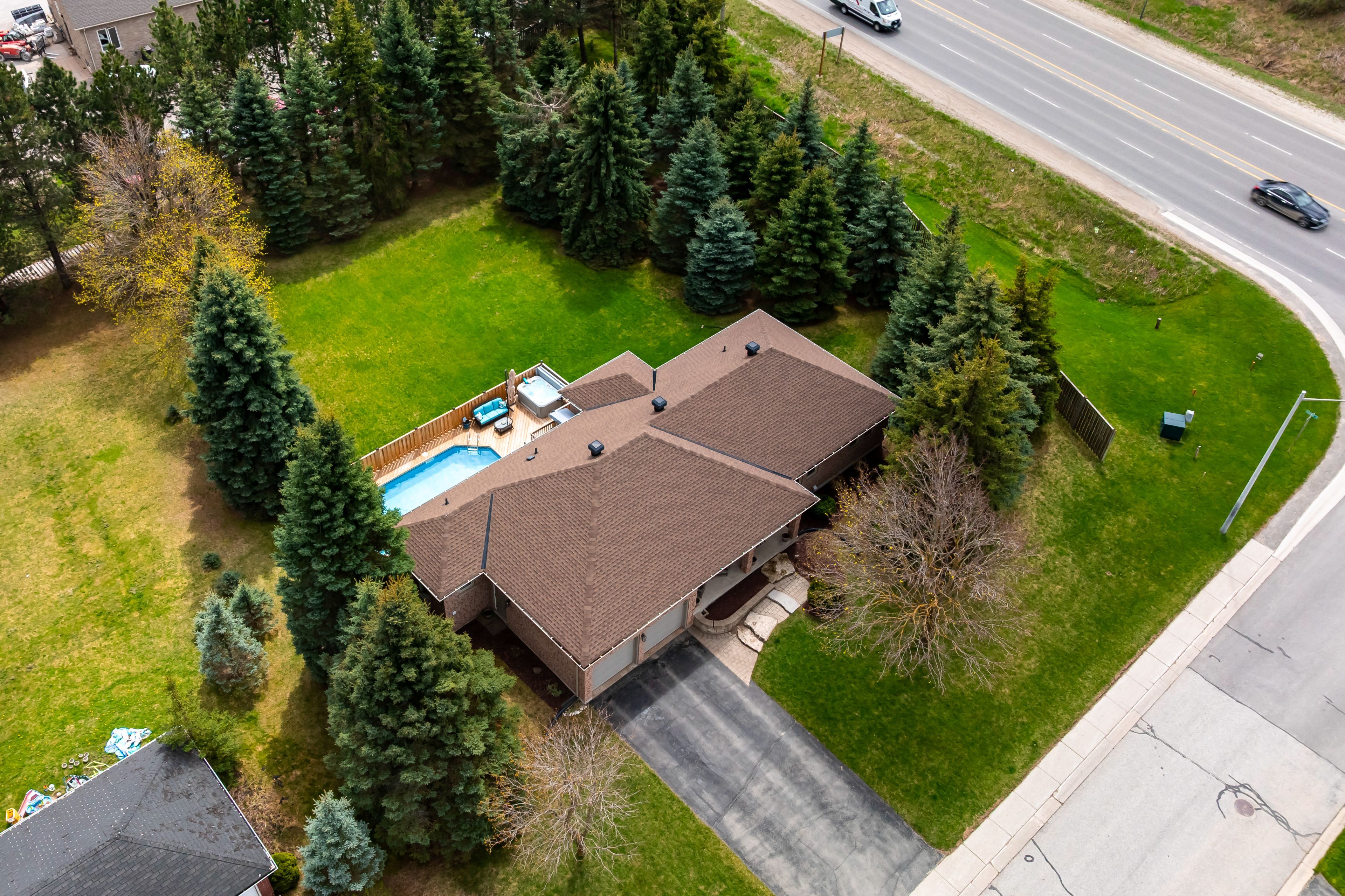 Nestled in the prestigious Cardinal Woods Estate subdivision, this immaculate bungalow offers an exceptional blend of sophistication and comfort on a generous half-acre lot. The home's refined interior welcomes you with an elegant living room that seamlessly transitions into an open-concept dining area, perfect for both intimate gatherings and grand entertaining.The updated eat-in kitchen showcases exquisite maple cabinetry complemented by granite countertops and gleaming stainless steel appliances a culinary enthusiast's dream. Step directly from this gourmet space to the newly constructed backyard deck, where leisure awaits in the form of a refreshing on-ground pool and luxurious hot tub (installed 2021).The main floor family room & Living rooms are warmed by a tasteful electric fireplaces and provides a tranquil retreat for relaxation. The sleeping quarters include a magnificent primary bedroom with a private four-piece ensuite, plus two additional generously proportioned bedrooms served by another impeccable four-piece bathroom. Descend to the lower level to discover a versatile recreation room featuring a charming gas stove and ample space for a sophisticated bar setup and billiards table. A substantial storage/utility room offers potential for additional customized living space. Moments from Mono Park and the serene trails of Island Lake Conservation Area, this residence combines natural splendour with proximity to Orangeville's amenities including shopping and various dining options. With the added convenience of an attached two-car garage, this flawlessly maintained home represents refined living at its most enchanting.
