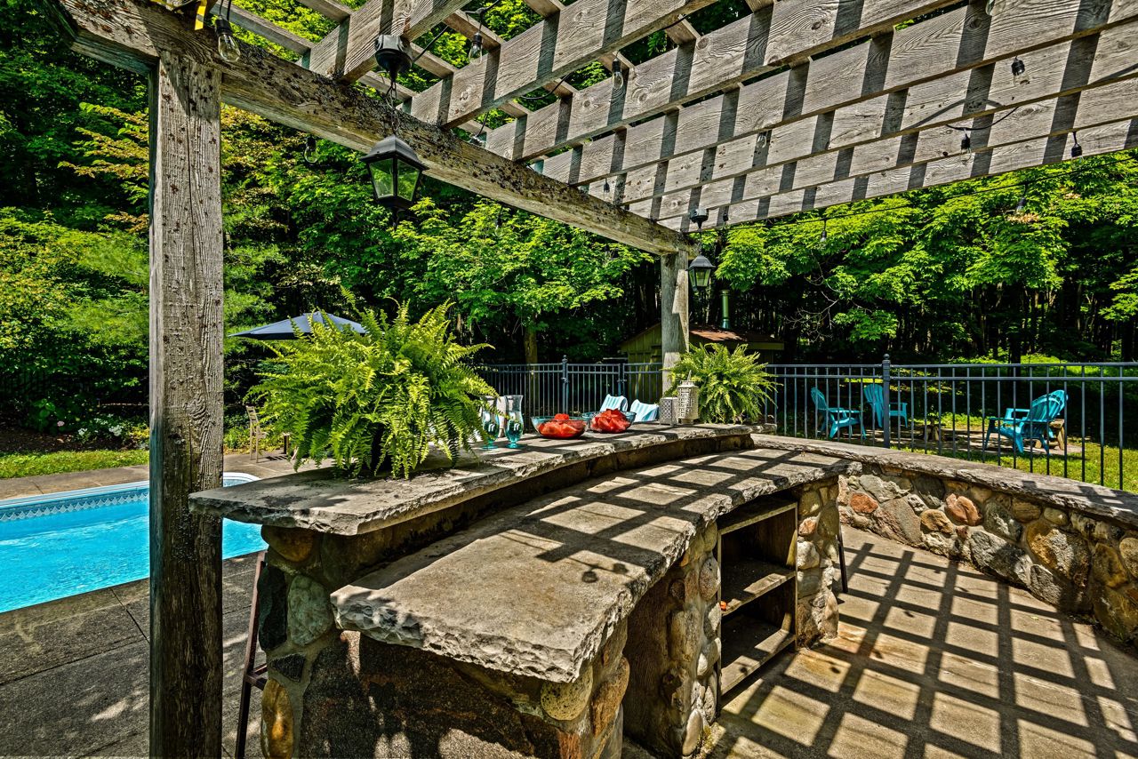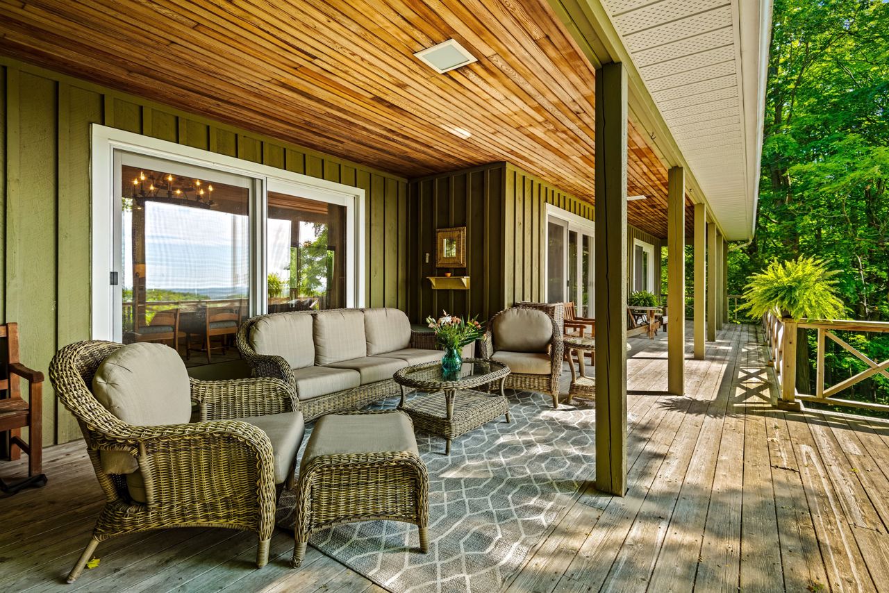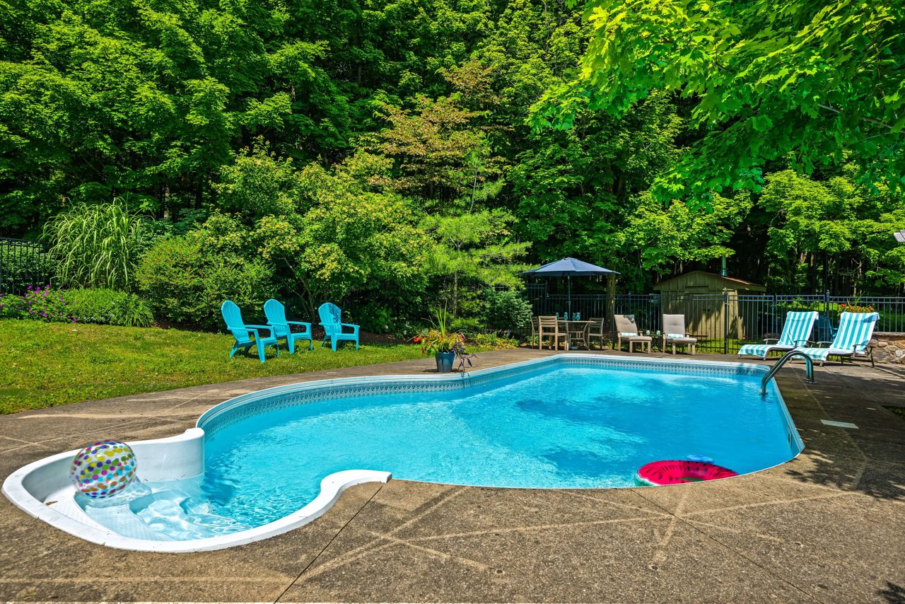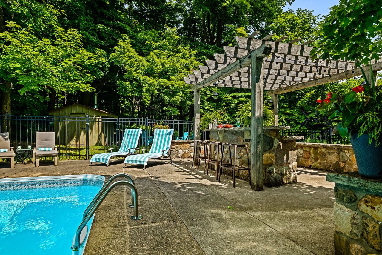 Discover a private 45-acre family haven in Mono that seamlessly blends natural splendor and city views. Pass through the iron gates to uncover a delightful outdoor haven, featuring a sparkling heated pool, landscaped bar area, tennis court, and long trails amidst mature trees. The main floor of the home welcomes you with a wide open floor plan, two generous bedrooms, a hearty dining space, and a warm living area accentuated by a grand fireplace, elegant newly renovated kitchen and bathrooms. Surrounded by large windows and covered porch and uninterrupted, captivating views. On the lower level, you'll find a spacious rec room complete with an additional fireplace, two more large bedrooms, and a newly upgraded bathroom. This home also features a spacious two-car garage. With proximity to Mansfield Ski Club and Hockley Resort, offering enjoyment all year around. Your enchanting sanctuary in Mono is ready and waiting.Stainless steel appliances, 2nd fridge in basement. Some furniture is negotiable.