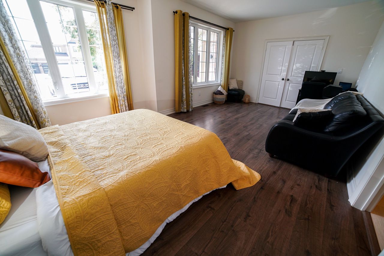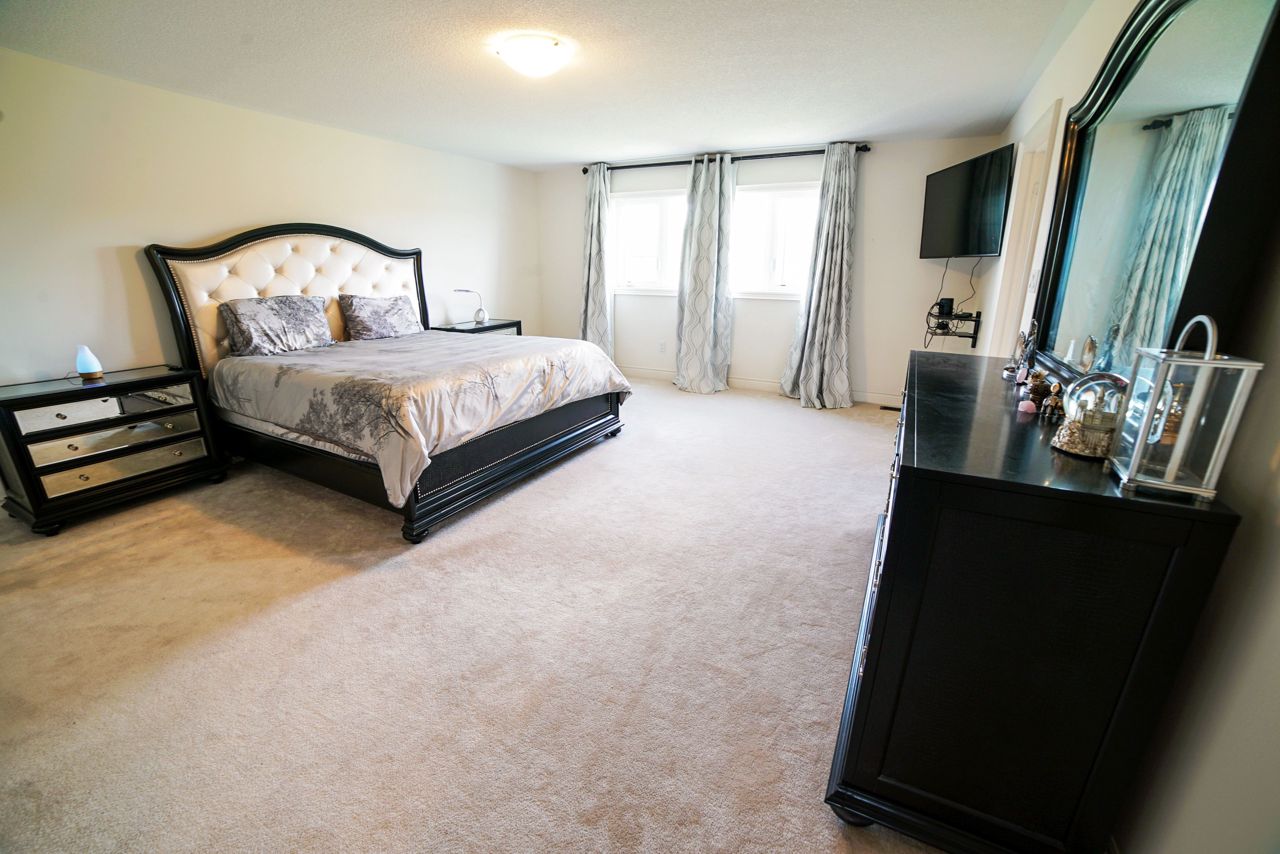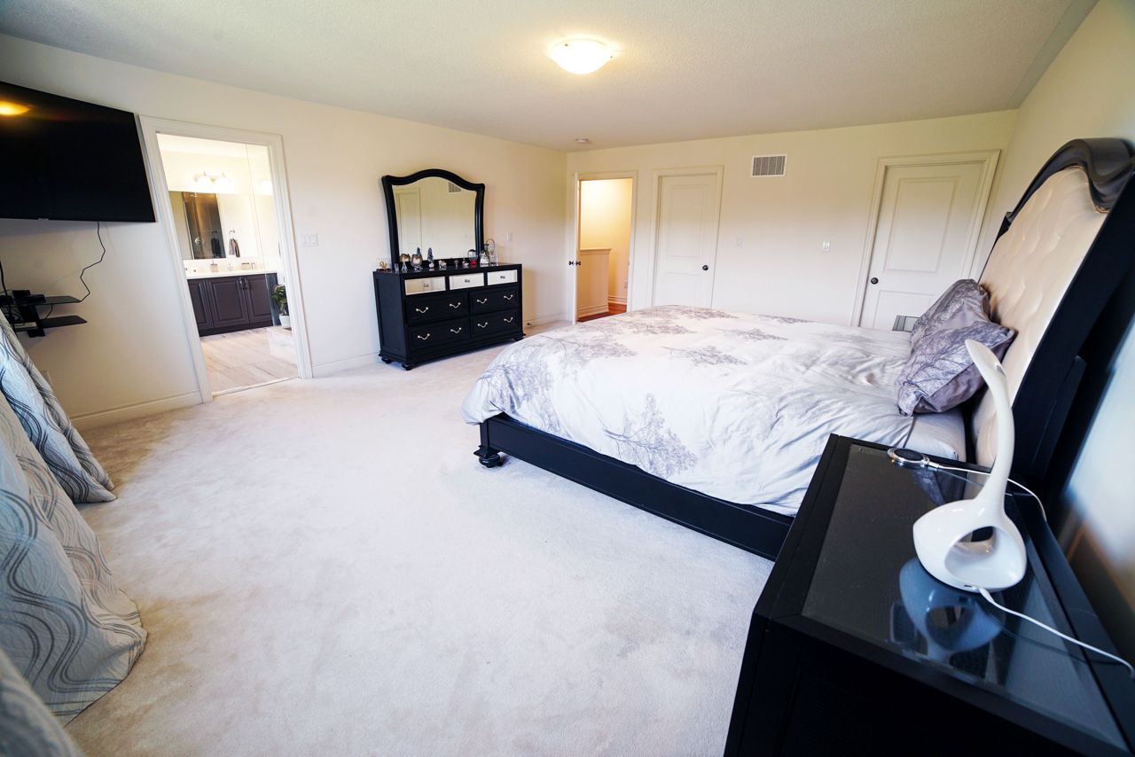 Premium Ravine Lot with over 3600 sqft on the top floor and over 1900 sqft in the basement. This stunning property features 5 bedrooms and 7 bathrooms, with a convenient walkout to the deck from the breakfast area. The entryway boasts upgraded 8' double doors, along with 8' doors throughout the main floor. The gourmet kitchen is equipped with quartz counter-tops and extended-height kitchen cabinets. The great room offers a gas fireplace, a bow window, and a tranquil view of the green belt. The main floor includes a master bedroom with a 4-piece ensuite and a walk-in closet. Additionally, the garage is equipped with 2 electric chargers for your cars. There are 2 master bedrooms on the main level, with one featuring a luxurious 6 pc ensuite with a frameless glass shower and a stand-alone tub. The walkout basement offers a resort-style rain shower, bow windows, a recreational area, and more. This dream home is a must-see.