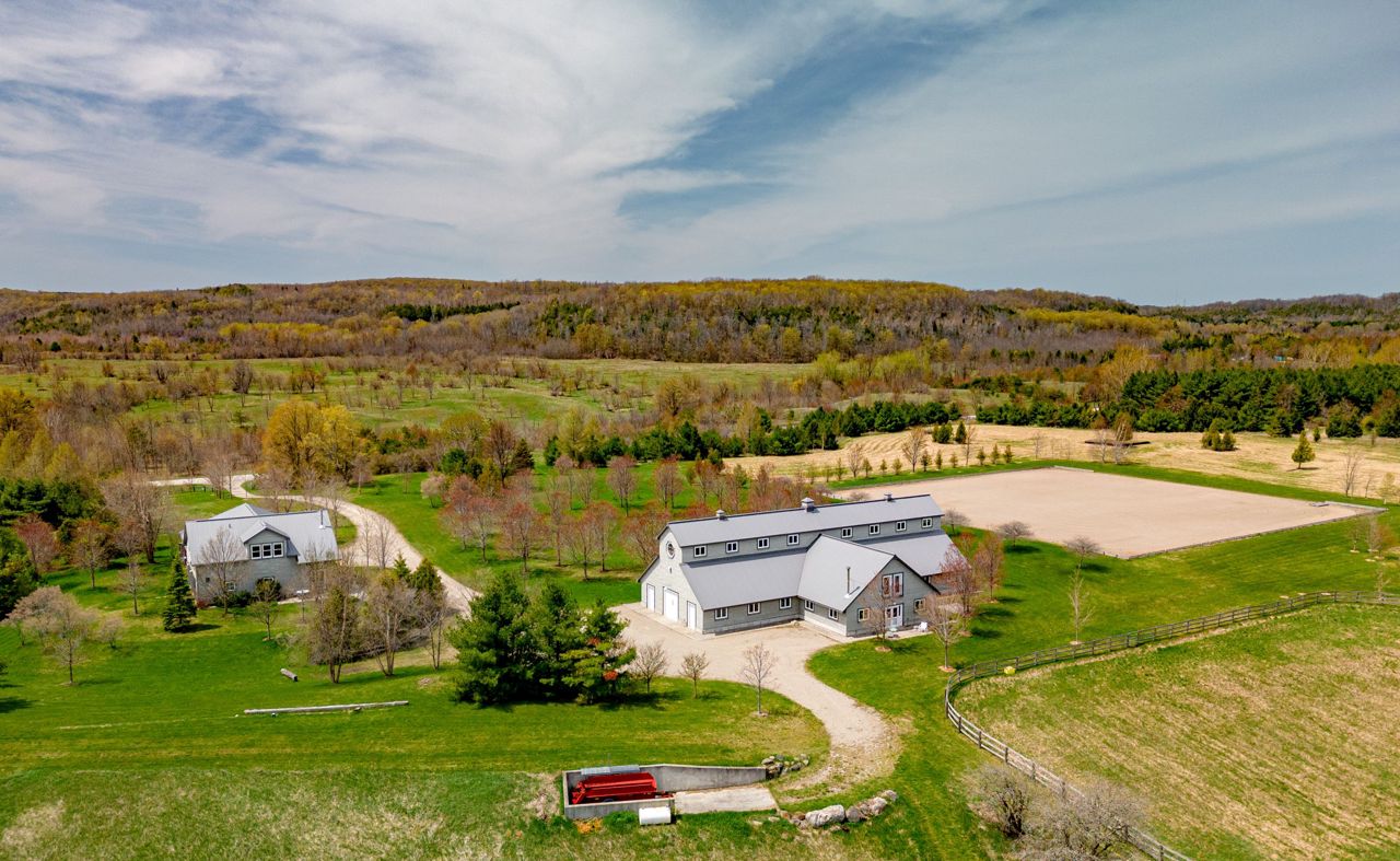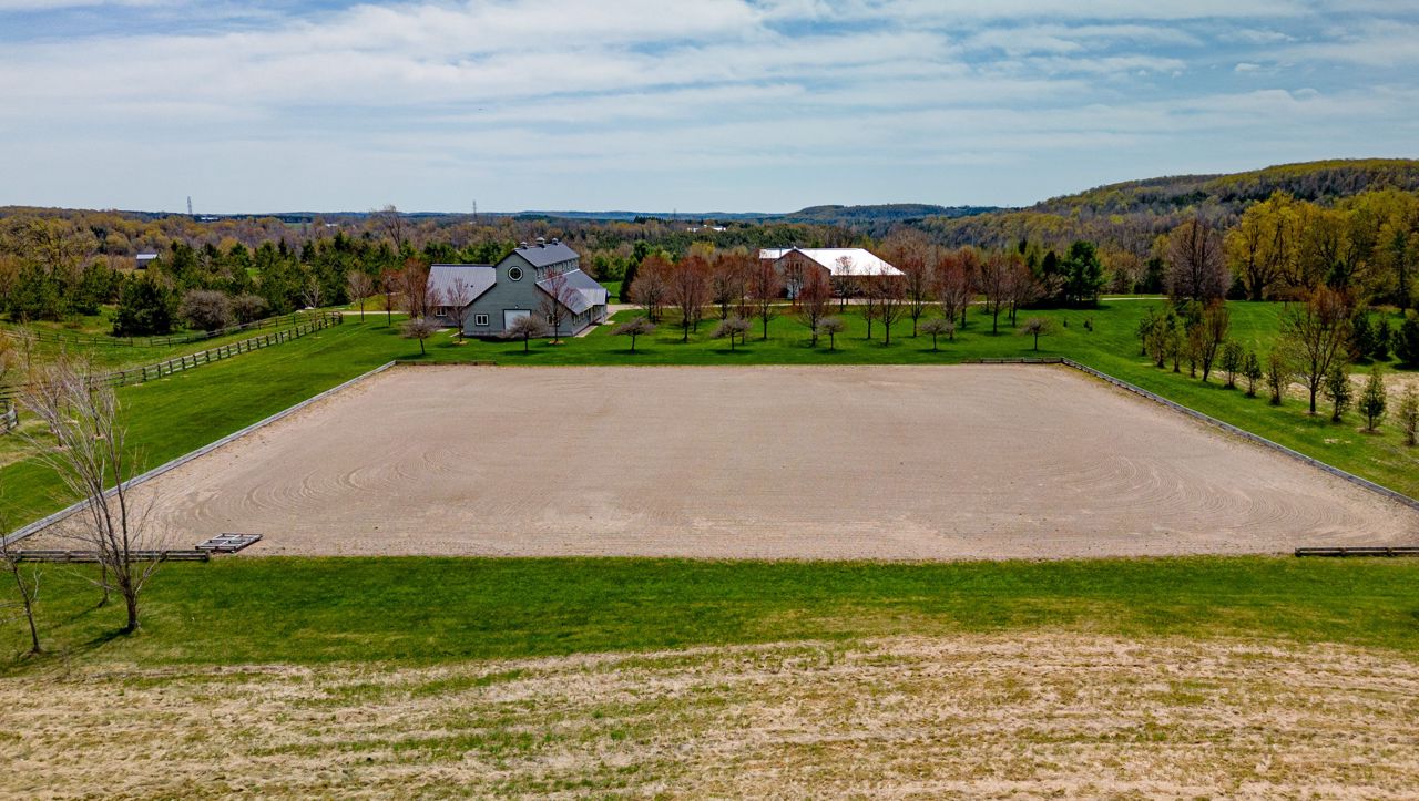 Down a quiet country road this 96 acre picturesque property in the heart of the Mono Township countryside offers endless opportunities. An equestrian’s dream, this property boasts an impressive 14 stall barn built to the highest standards & features a lounge area complete w/ kitchen and full bath. The grounds feature a perfect mix of rolling pastures, park-like grounds & mature woods. A large 230ft x 230ft sand ring sits next to the barn w/ views over several large paddocks & a cross-country field. A bright & spacious staff apartment sits next to the stone wall from the original bank barn & is connected to the large garage/workshop & includes 2 bedrooms, a full kitchen, large living/dining room w/ views out every window, full bath & ensuite laundry. Enjoy the bridle paths that wrap around the paddocks, perimeter and through the trees & are perfect for riding, hiking, snowshoeing & more. A beautiful open canvas to build a main residence w/ many potential building sitesA short walk to Mono Cliffs Park, less than five minutes to Mono Centre, 15 mins to Orangeville, 1.5 hours from TO. Close to many amenities such as Dufferin Forest, Hockley Valley Resort, Mono Cliffs Inn and Adamo Winery.
