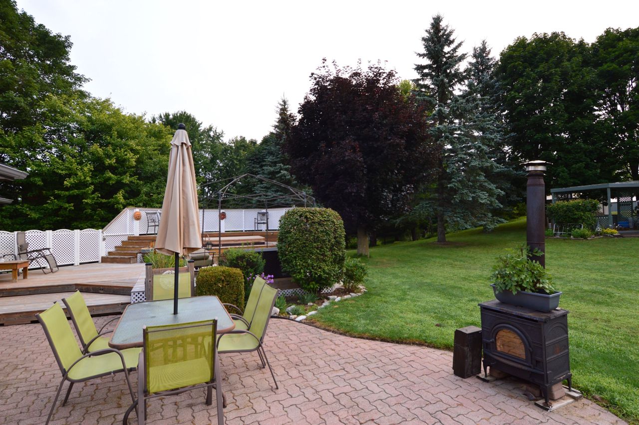 landscaped land with a well maintained and updated home in a very good quality, quiet, mature treed neighbourhood. If you are tired of having your neighbours too close, this lot gives you the space of five 50 by 100 foot lots with room to do what you want, whether to put on an addition for the in-laws and a pool and still have lots of privacy.Stone Counter Tops. Fridge, Stove, Dishwasher, Microwave, Washer and Dryer. Water Softener, Gas Fireplace, Hot Tub, Large Patio & Decks, Cupola, 2 sheds, Owned Water Heater, Gas Heated Garage, Garage Door Opener, Wood Stove on Patio.