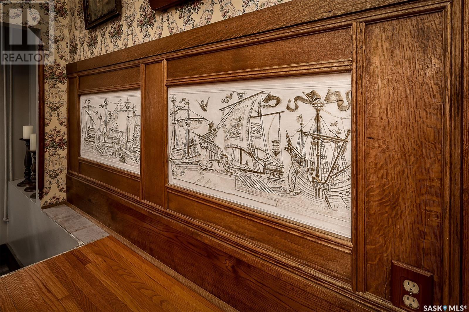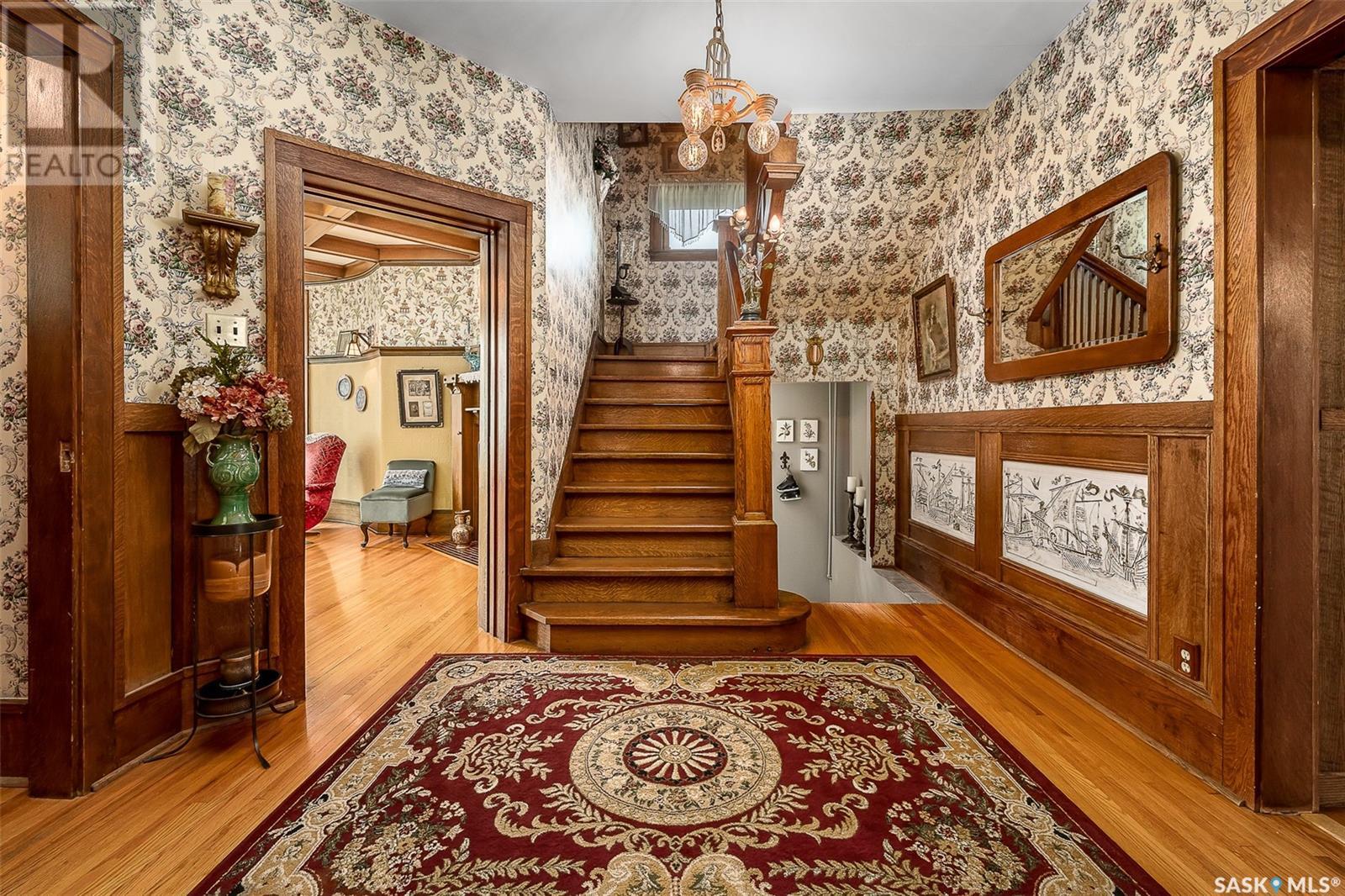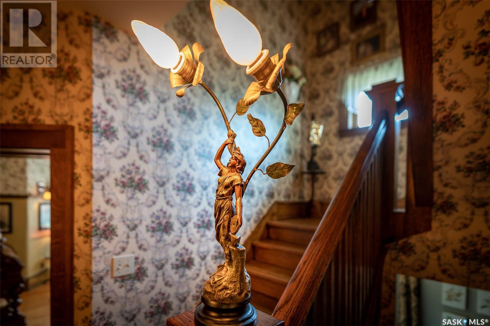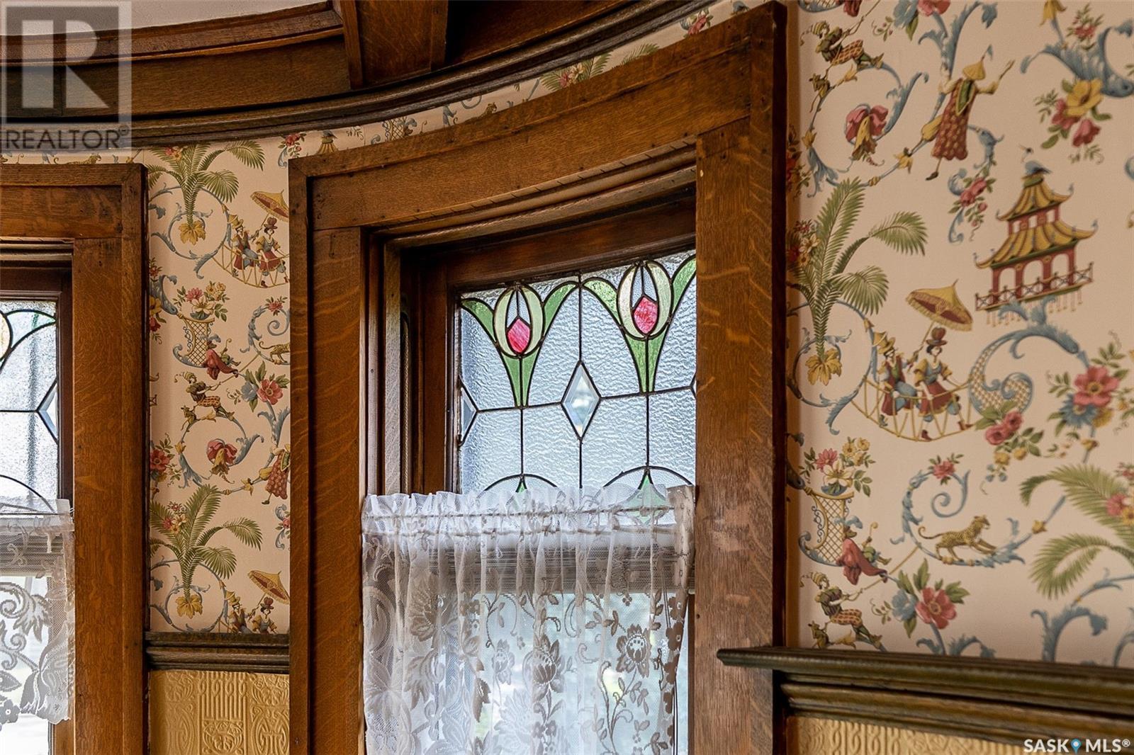 Step into 1912…Welcome to the “Queen Anne.” The most STUNNING HERITAGE HOME. Nothing compares to the grace & attention to detail that this beauty offers. It is untouched by time. Through the original front door be welcomed by a large foyer with original hardwood floors & gorgeous insets. The 1907 “Lady of Industry” fixture, imported from France, adorns the bannister. Enter the TURRET through the pocket door. Beamed ceilings, Anna Galyptic wall coverings, built in china cabinet, plate rack, original tiled fireplace (electric insert) & original curved glass. Enter the living room through double pocket doors. The dining room boasts bronze wall sconces & a glass door to kitchen, great for entertaining. The kitchen was renovated in 1996 with custom ordered wood to uphold the character of the home. Fine detailing with built in china cabinet, pantry, island & window seat. The addition was built in 1996 (apv). The main floor bathroom also serves as laundry space. As you ascend into the 2nd storey you will find equal attention to the fine touches. The hallways have curated insets & Lincrusta detailing. The 1st bedroom features the original fireplace & the 2nd level turret with curved glass. The primary bedroom is beautifully finished with more original stained glass & built in window seating. There are 2 additional bedrooms. Upper level has ample closet spaces, a 2-piece bath & a 3-piece bath with claw foot tub, repurposed antique tin ceiling & buffet sink. Basement is open for development & the new boiler was installed in 2018 (apv). The exterior of the home is beautifully landscaped. There is a large deck, double garage, UGS and natural gas BBQ hook up. This historic home is adorned throughout with period lighting, hardwood, original stained glass & the quaintest details for the vintage. There are so many extra “touches” that must be seen to be appreciated. Contact an agent for a full list of details or to book your private tour. (id:22211)