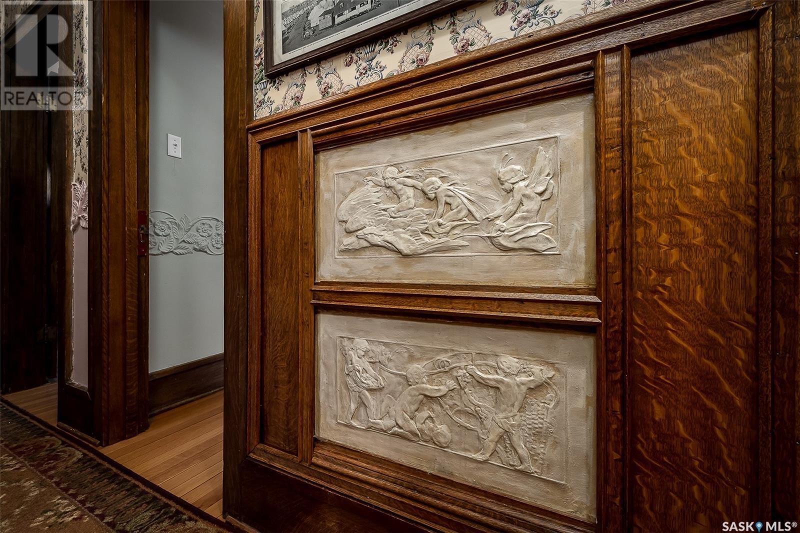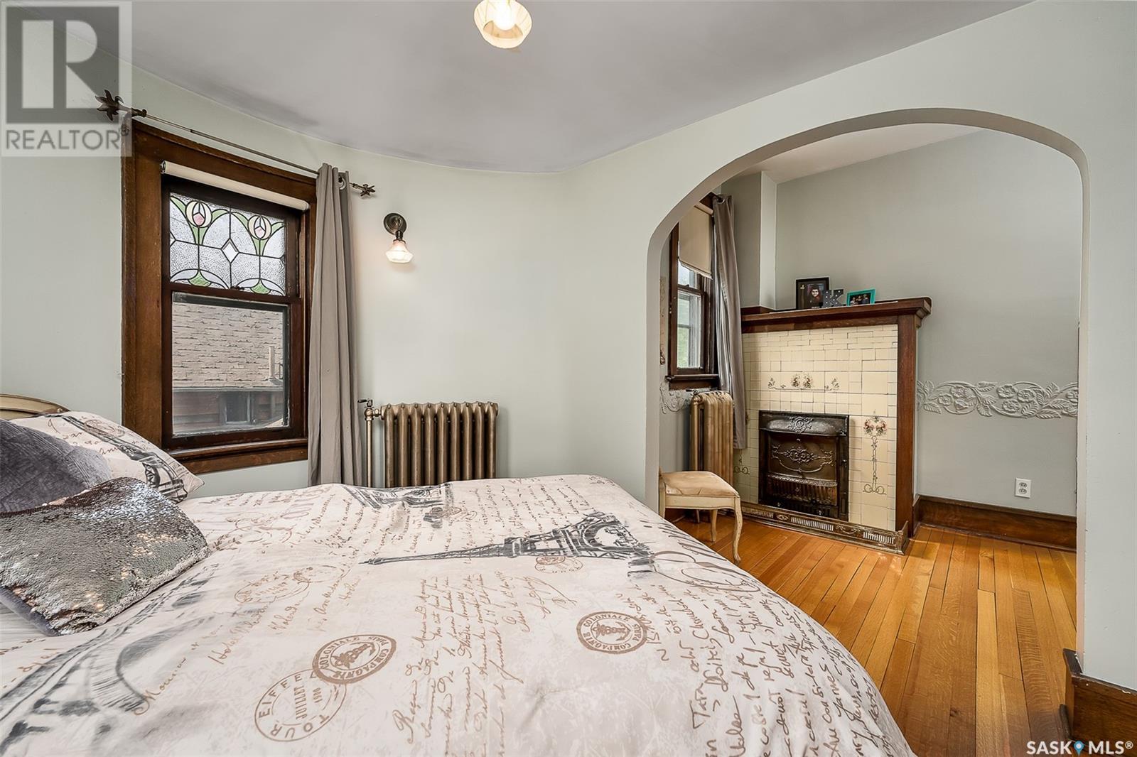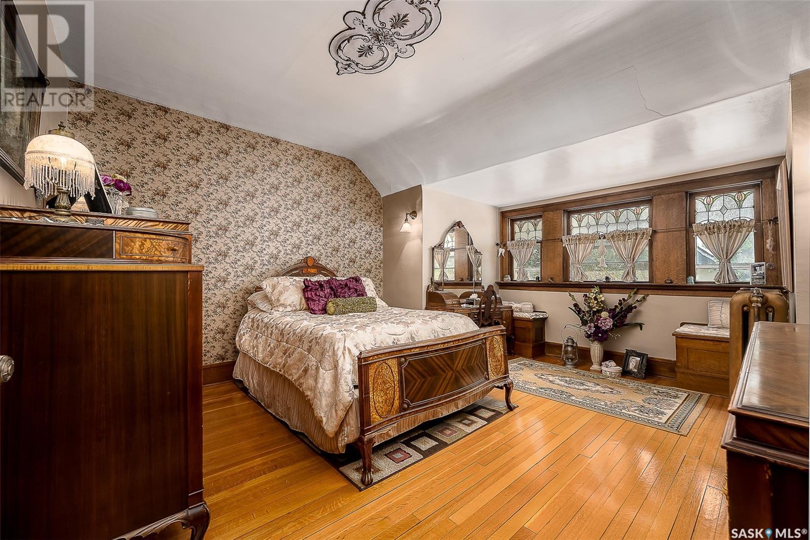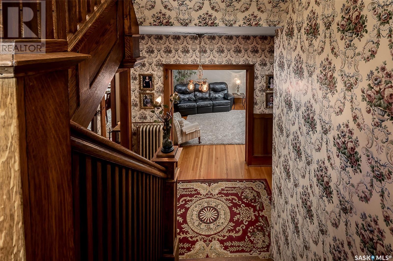Step into 1912…Welcome to the “Queen Anne.” The most STUNNING HERITAGE HOME. Nothing compares to the grace & attention to detail that this beauty offers. It is untouched by time. Through the original front door be welcomed by a large foyer with original hardwood floors & gorgeous insets. The 1907 “Lady of Industry” fixture, imported from France, adorns the bannister. Enter the TURRET through the pocket door. Beamed ceilings, Anna Galyptic wall coverings, built in china cabinet, plate rack, original tiled fireplace (electric insert) & original curved glass. Enter the living room through double pocket doors. The dining room boasts bronze wall sconces & a glass door to kitchen, great for entertaining. The kitchen was renovated in 1996 with custom ordered wood to uphold the character of the home. Fine detailing with built in china cabinet, pantry, island & window seat. The addition was built in 1996 (apv). The main floor bathroom also serves as laundry space. As you ascend into the 2nd storey you will find equal attention to the fine touches. The hallways have curated insets & Lincrusta detailing. The 1st bedroom features the original fireplace & the 2nd level turret with curved glass. The primary bedroom is beautifully finished with more original stained glass & built in window seating. There are 2 additional bedrooms. Upper level has ample closet spaces, a 2-piece bath & a 3-piece bath with claw foot tub, repurposed antique tin ceiling & buffet sink. Basement is open for development & the new boiler was installed in 2018 (apv). The exterior of the home is beautifully landscaped. There is a large deck, double garage, UGS and natural gas BBQ hook up. This historic home is adorned throughout with period lighting, hardwood, original stained glass & the quaintest details for the vintage. There are so many extra “touches” that must be seen to be appreciated. Contact an agent for a full list of details or to book your private tour. (id:22211)