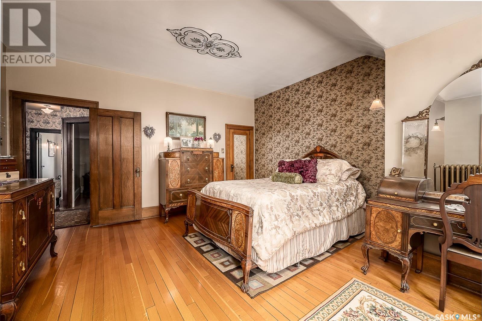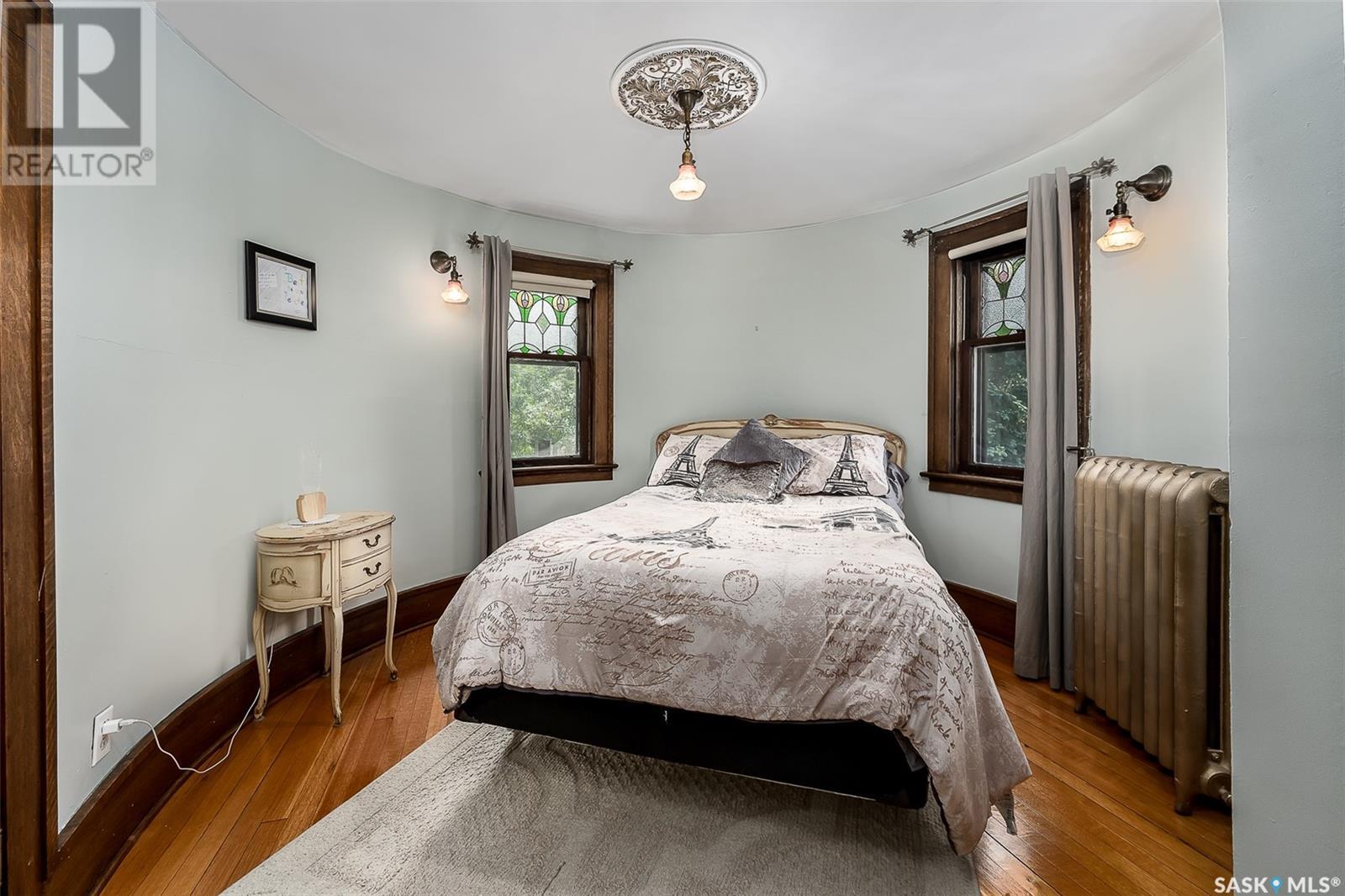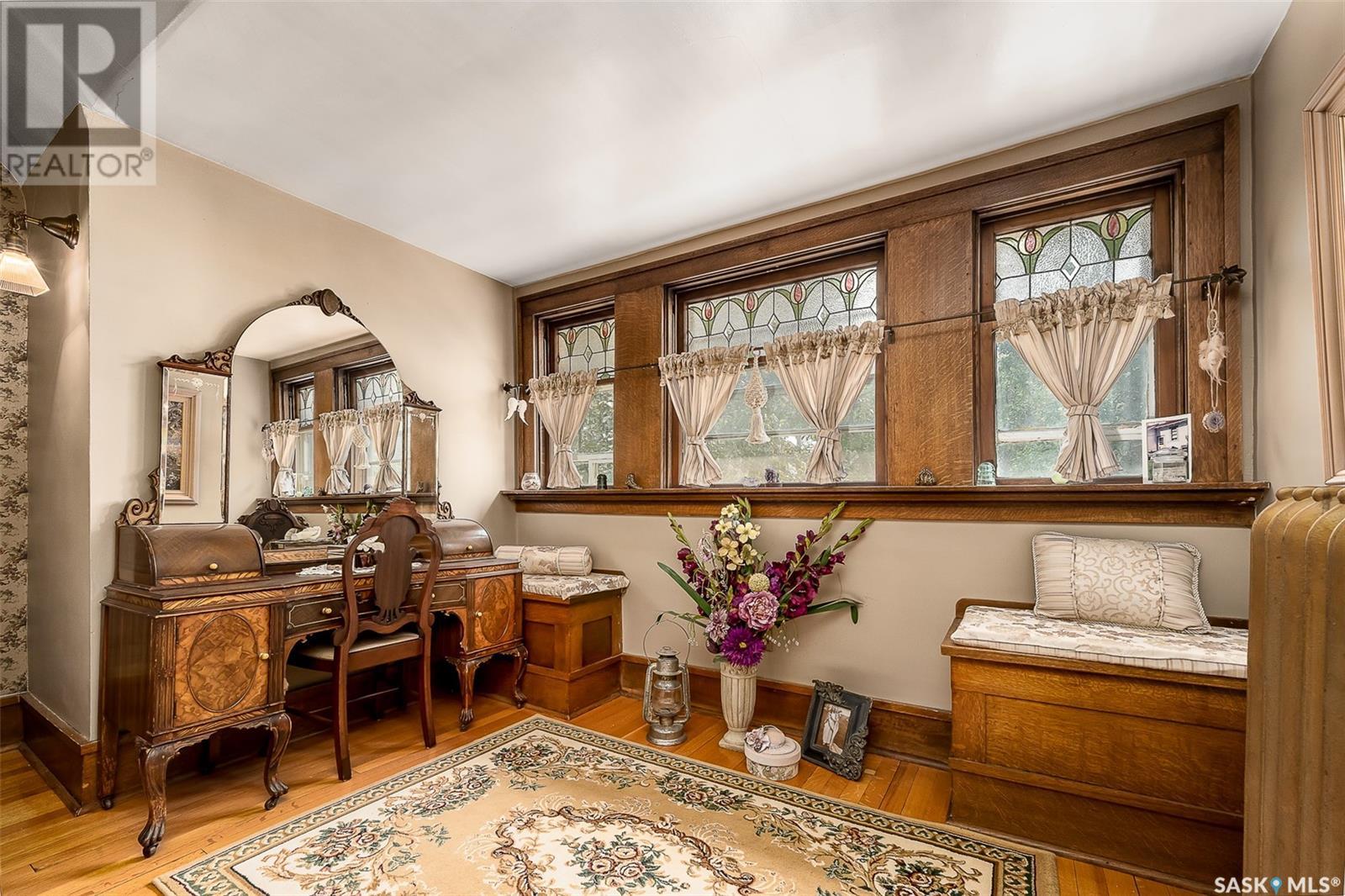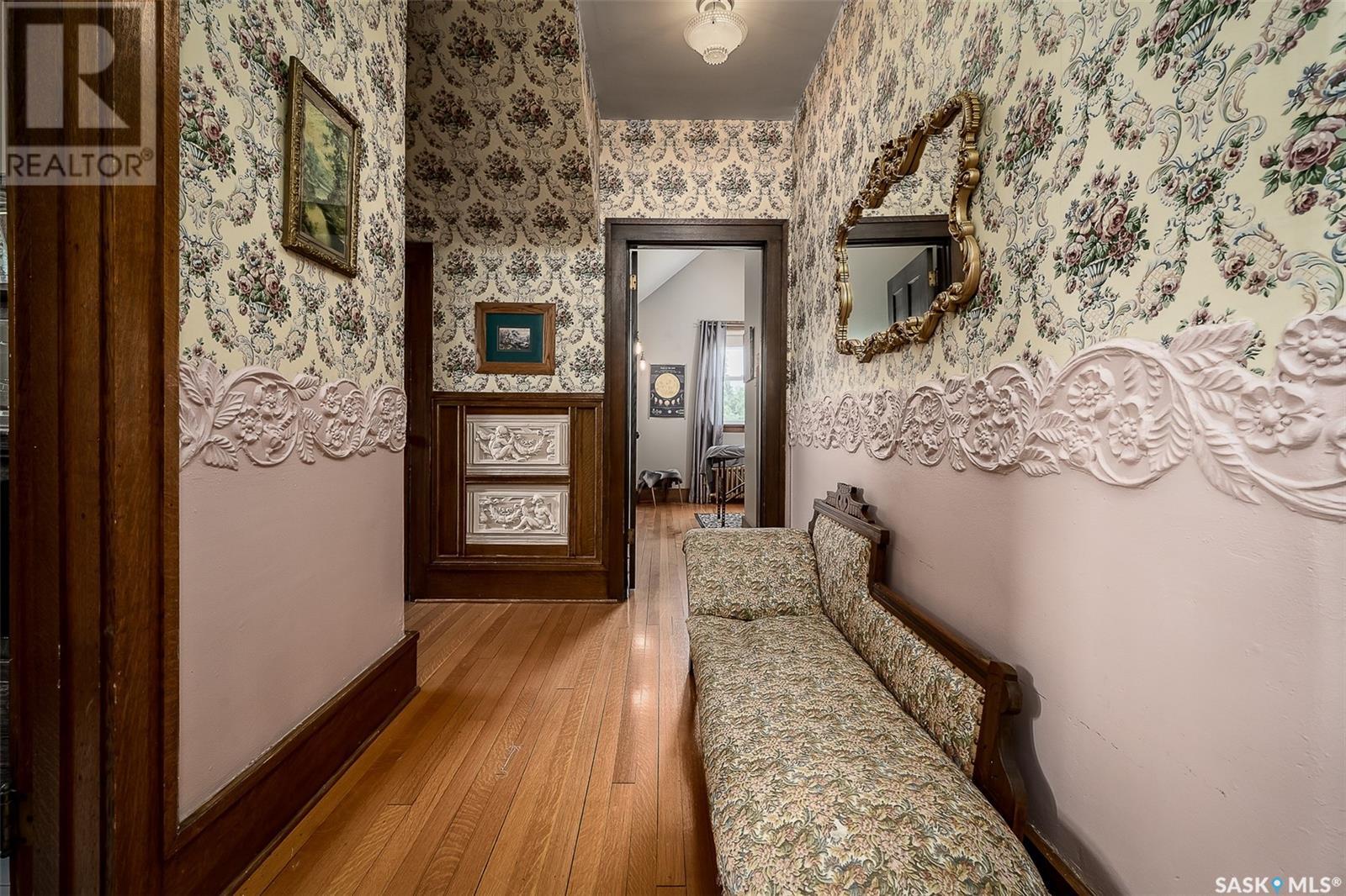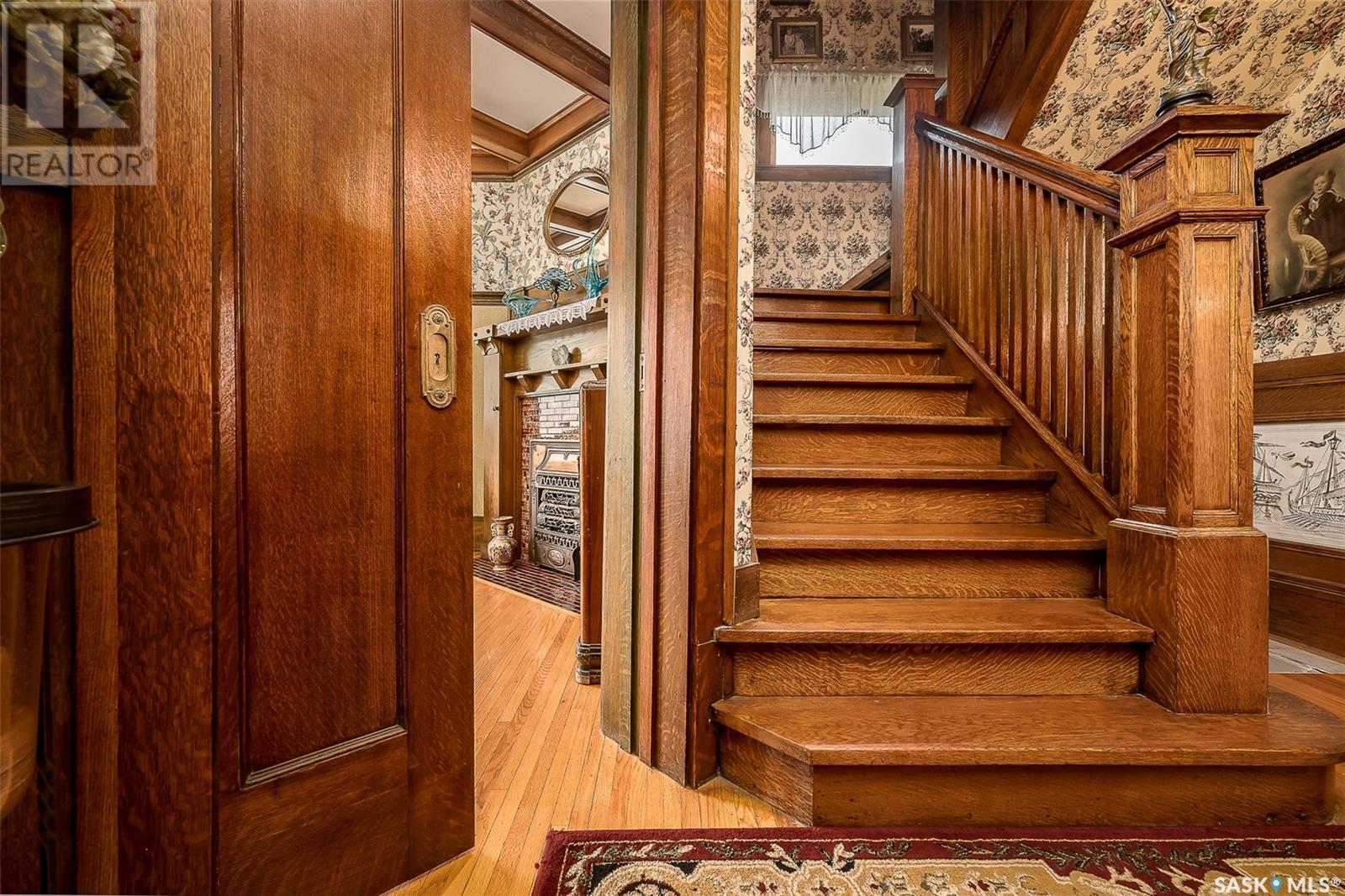 Step into 1912…Welcome to the “Queen Anne.” The most STUNNING HERITAGE HOME. Nothing compares to the grace & attention to detail that this beauty offers. It is untouched by time. Through the original front door be welcomed by a large foyer with original hardwood floors & gorgeous insets. The 1907 “Lady of Industry” fixture, imported from France, adorns the bannister. Enter the TURRET through the pocket door. Beamed ceilings, Anna Galyptic wall coverings, built in china cabinet, plate rack, original tiled fireplace (electric insert) & original curved glass. Enter the living room through double pocket doors. The dining room boasts bronze wall sconces & a glass door to kitchen, great for entertaining. The kitchen was renovated in 1996 with custom ordered wood to uphold the character of the home. Fine detailing with built in china cabinet, pantry, island & window seat. The addition was built in 1996 (apv). The main floor bathroom also serves as laundry space. As you ascend into the 2nd storey you will find equal attention to the fine touches. The hallways have curated insets & Lincrusta detailing. The 1st bedroom features the original fireplace & the 2nd level turret with curved glass. The primary bedroom is beautifully finished with more original stained glass & built in window seating. There are 2 additional bedrooms. Upper level has ample closet spaces, a 2-piece bath & a 3-piece bath with claw foot tub, repurposed antique tin ceiling & buffet sink. Basement is open for development & the new boiler was installed in 2018 (apv). The exterior of the home is beautifully landscaped. There is a large deck, double garage, UGS and natural gas BBQ hook up. This historic home is adorned throughout with period lighting, hardwood, original stained glass & the quaintest details for the vintage. There are so many extra “touches” that must be seen to be appreciated. Contact an agent for a full list of details or to book your private tour. (id:22211)