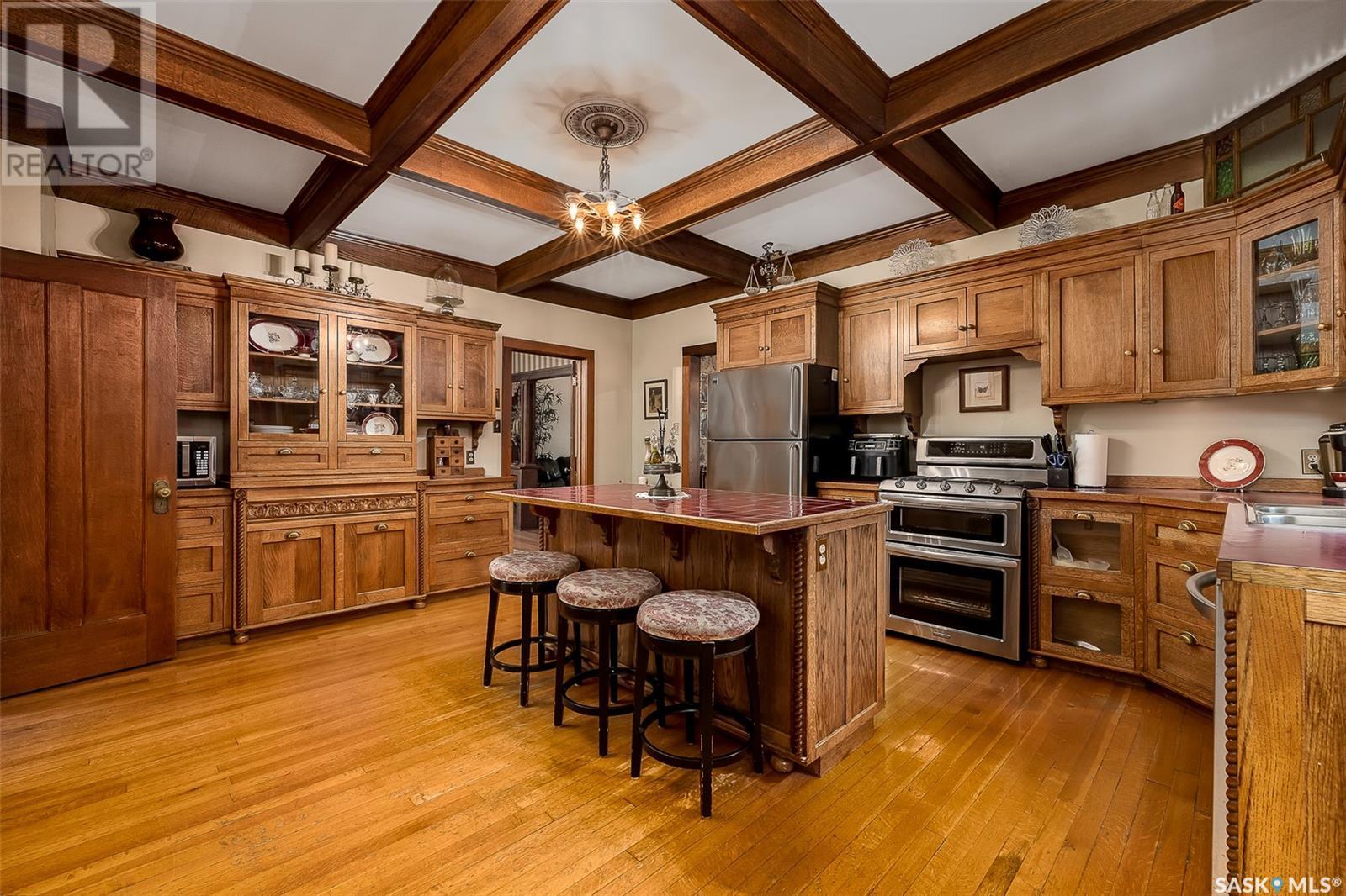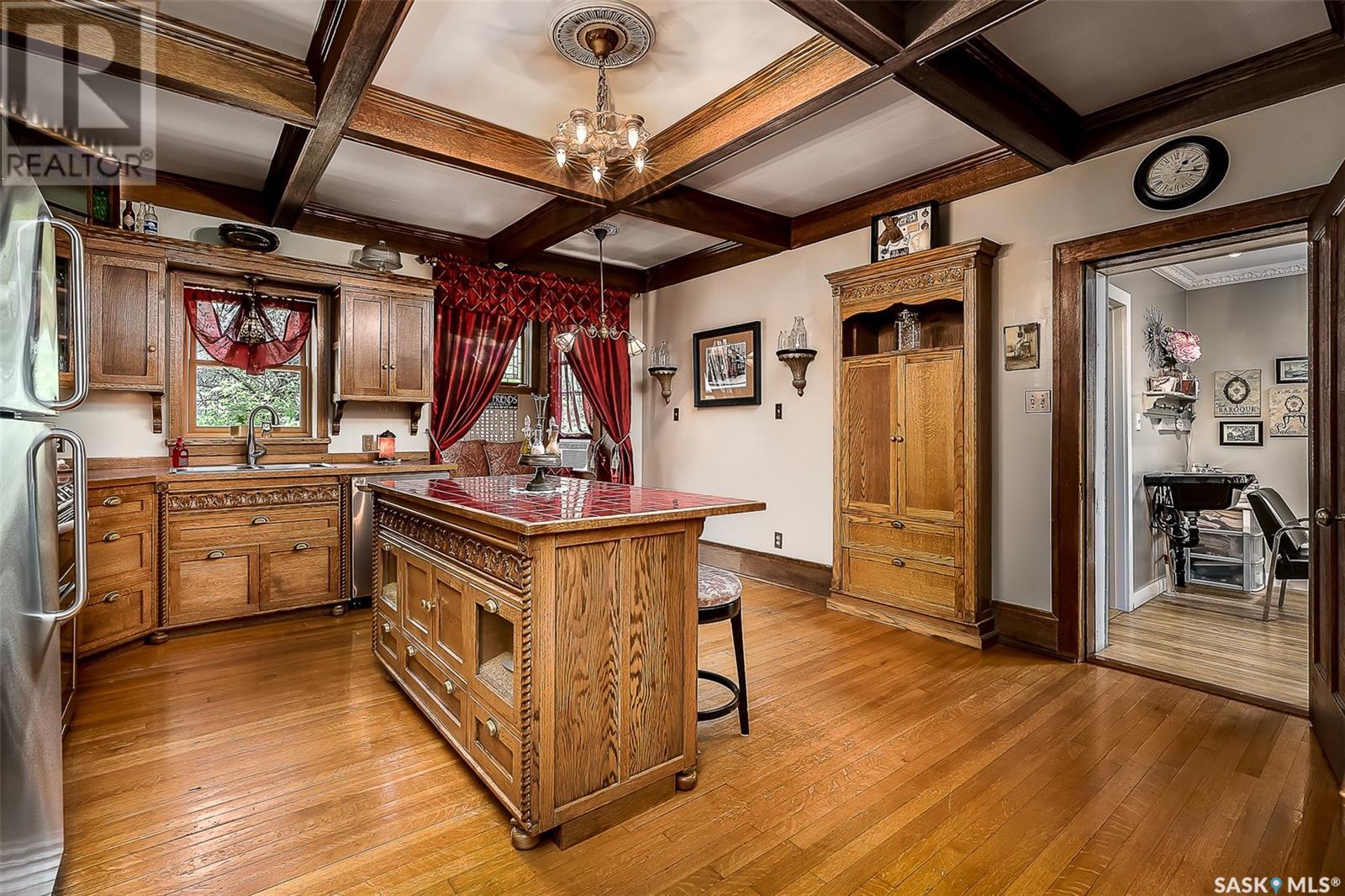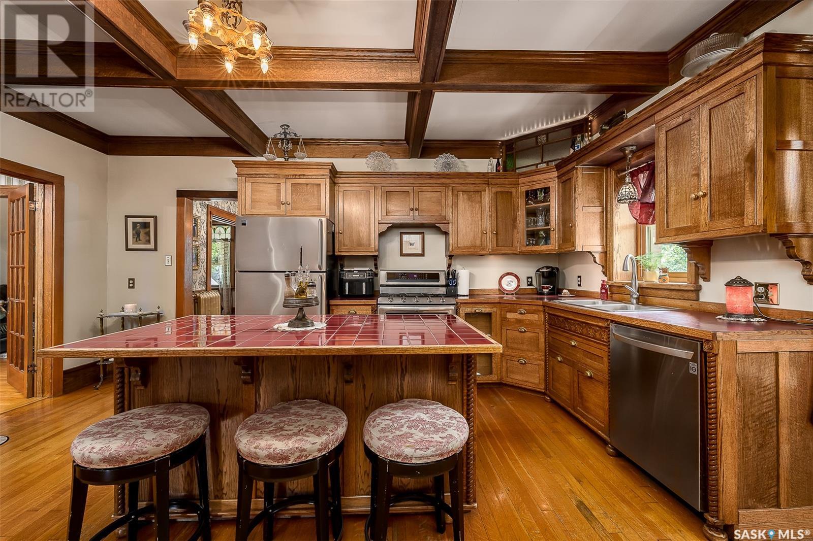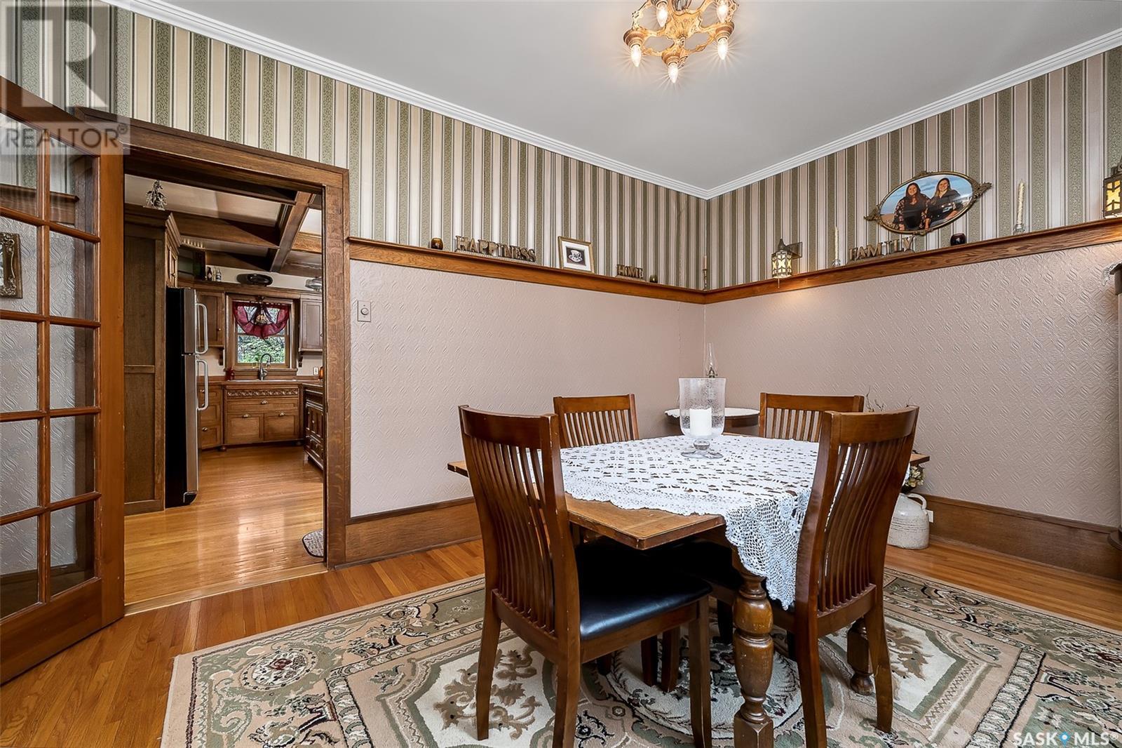 Step into 1912…Welcome to the “Queen Anne.” The most STUNNING HERITAGE HOME. Nothing compares to the grace & attention to detail that this beauty offers. It is untouched by time. Through the original front door be welcomed by a large foyer with original hardwood floors & gorgeous insets. The 1907 “Lady of Industry” fixture, imported from France, adorns the bannister. Enter the TURRET through the pocket door. Beamed ceilings, Anna Galyptic wall coverings, built in china cabinet, plate rack, original tiled fireplace (electric insert) & original curved glass. Enter the living room through double pocket doors. The dining room boasts bronze wall sconces & a glass door to kitchen, great for entertaining. The kitchen was renovated in 1996 with custom ordered wood to uphold the character of the home. Fine detailing with built in china cabinet, pantry, island & window seat. The addition was built in 1996 (apv). The main floor bathroom also serves as laundry space. As you ascend into the 2nd storey you will find equal attention to the fine touches. The hallways have curated insets & Lincrusta detailing. The 1st bedroom features the original fireplace & the 2nd level turret with curved glass. The primary bedroom is beautifully finished with more original stained glass & built in window seating. There are 2 additional bedrooms. Upper level has ample closet spaces, a 2-piece bath & a 3-piece bath with claw foot tub, repurposed antique tin ceiling & buffet sink. Basement is open for development & the new boiler was installed in 2018 (apv). The exterior of the home is beautifully landscaped. There is a large deck, double garage, UGS and natural gas BBQ hook up. This historic home is adorned throughout with period lighting, hardwood, original stained glass & the quaintest details for the vintage. There are so many extra “touches” that must be seen to be appreciated. Contact an agent for a full list of details or to book your private tour. (id:22211)