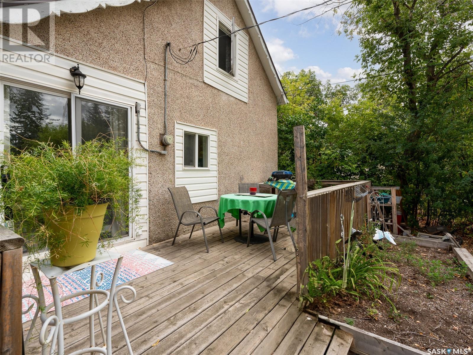 Motivated seller!! Solid starter home or revenue property close to Moose Jaw's historic downtown! This home is within walking distance to shops, restaurants, grocery stores, etc! This home is solid and has many great recent updates including: new furnace and water heater in 2020, new sewer/water line in 2022, new eaves in 2022, some new fixtures, paint, etc! Come through the front door and you are greeted by a beautiful, inviting living space so full of charm and warmth! The front bay window brings in plenty of natural light and you can cozy up to the fireplace on those winter nights. You have a large, updated kitchen with plenty of cabinetry, perfect for the chef in the family! You also have dining area and main floor laundry just off the kitchen! Upstairs you will find two spacious bedrooms, and a full 4 piece updated bathroom with beautiful tiled shower. There are nice big patio doors leading out to the backyard where there has been a parking pad roughed in the back as well as garden area and a nice deck! This home is ready for you to call your own and is available for quick possession if need be! Contact the listing agent today to book your showing and for any questions! (id:22211)