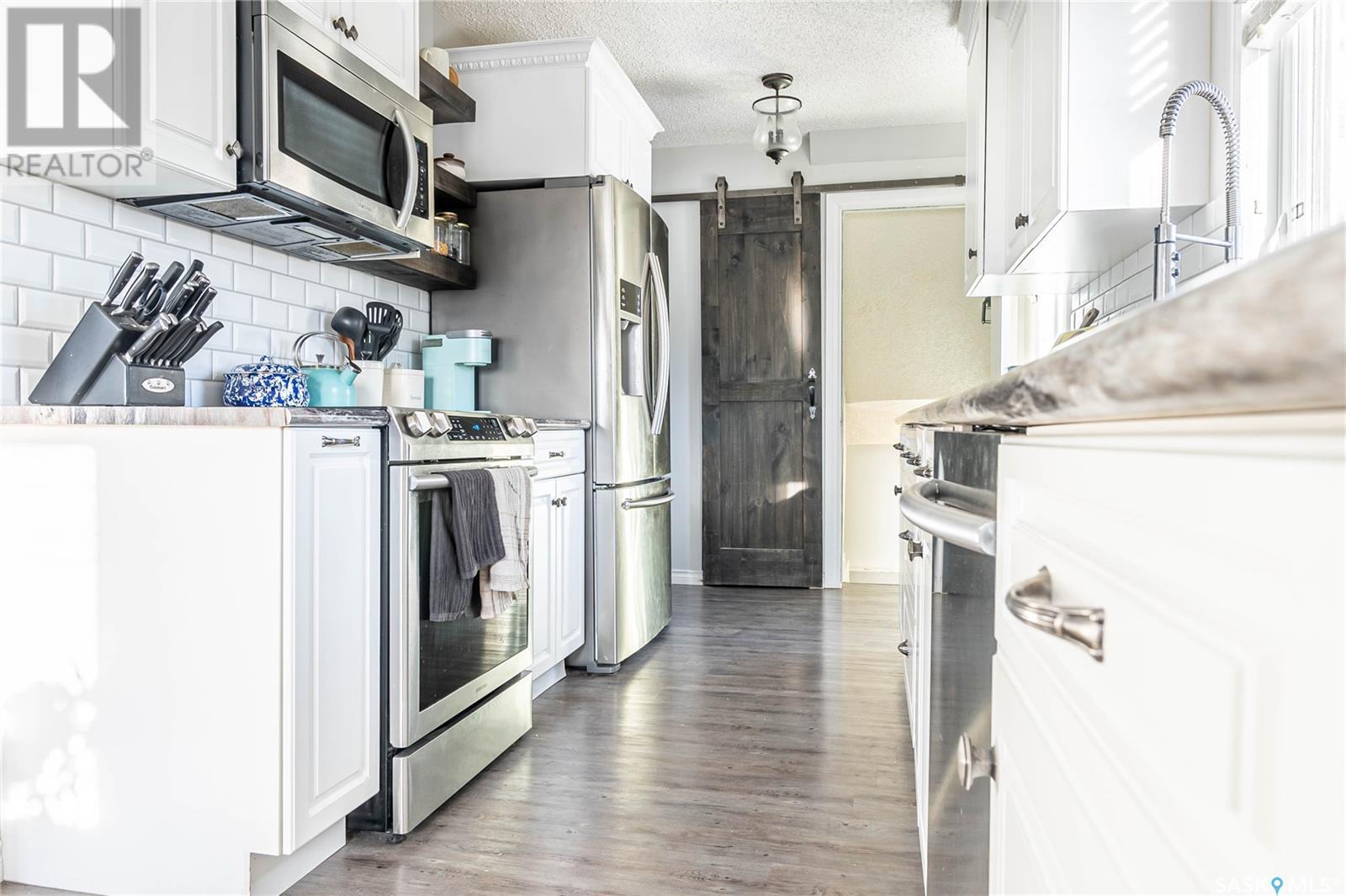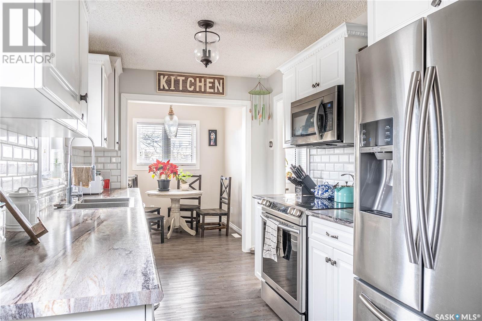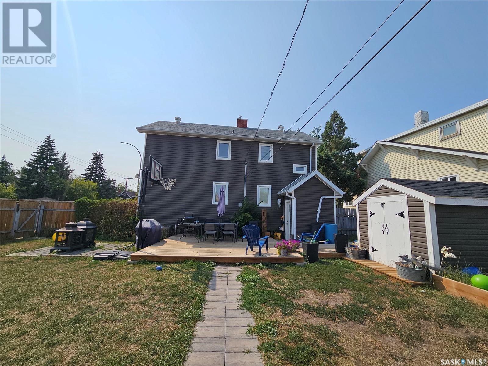 Welcome to this inviting 2-Storey family home in the coveted "Avenues" neighborhood, where modern upgrades meet classic charm. Conveniently situated near shopping, schools, and Saskatchewan Polytechnic, this residence offers an ideal blend of comfort and convenience. Upon entering, you'll be greeted by a cozy wood-burning fireplace and a welcoming seating area that flows into a sunlit living room. The adjacent dining room leads to an updated kitchen boasting newer cabinets, countertops, a stylish backsplash, and stainless steel appliances. Upstairs, three well-appointed bedrooms provide ample space, while the basement hosts a flexible den or fourth bedroom, or additional family room for the kids! Outside, the property features updated siding, windows, a deck, a fence, and even a raised garden. A standout feature is the heated 36'x24' garage, perfect for your projects and parking needs. This home, nestled on three lots, offers both room to move and a sense of privacy. Don't miss out—contact us today to experience this modern, charming lifestyle firsthand! (id:22211)