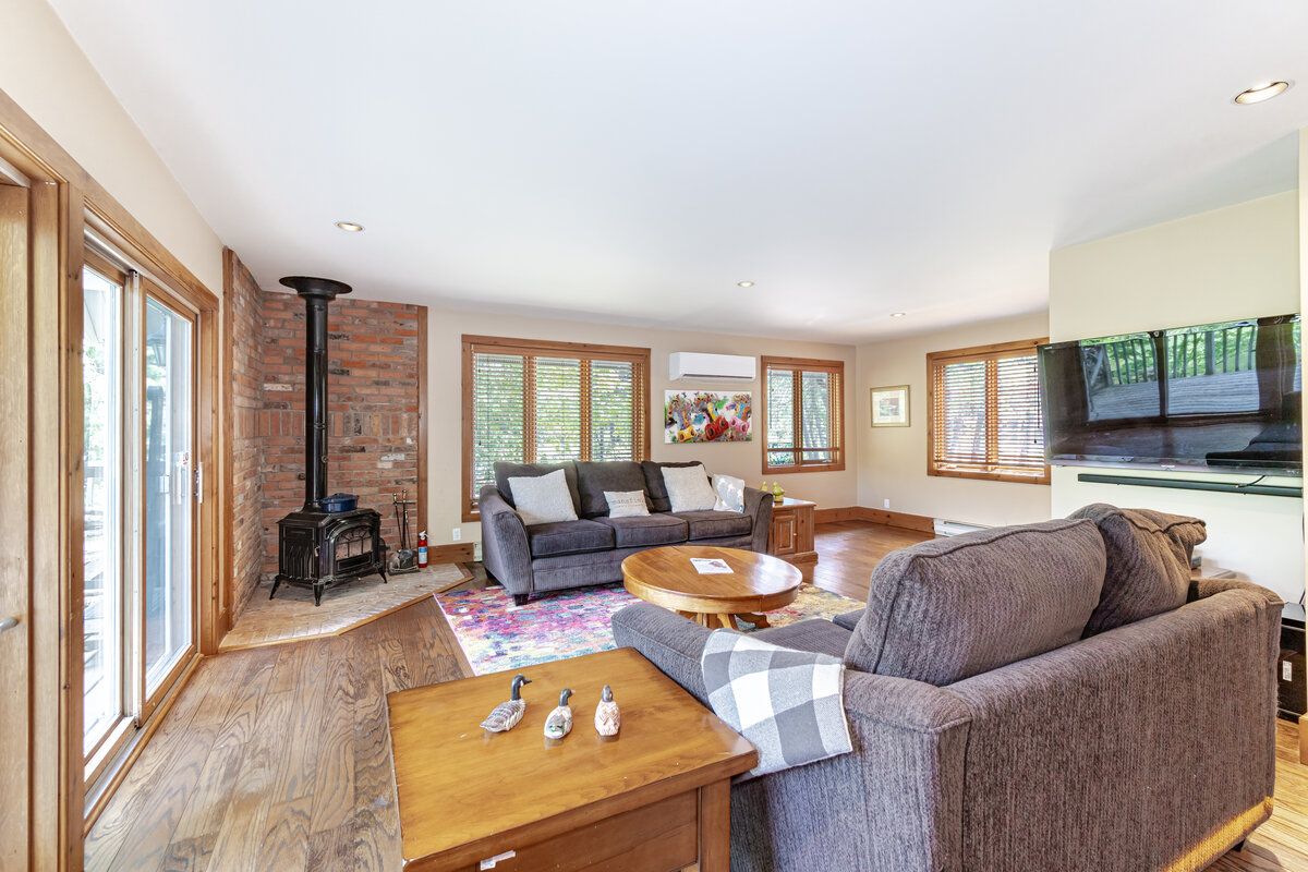 Cozy Four Bedroom All-Season Family Chalet At The Base Of Mansfield Ski Club. One of The Best Locations With Picturesque Setting Overlooking Pond Perfect for Winter Skating and Summer Paddling. This Home Has A Cool Layout Perfect For Entertaining While Offering Areas For Privacy When Needed. This Property Has Two Walk-Out Basements, One With TV Lounge; A Perfect Retreat For The Kids After A Fun Day Skiing Or Swimming & Playing Outside. The Other Walk-Out Features Heated Floor with Ski Room/Workshop, Two Bedrooms And Walk-Out To Hot Tub. Private Primary Suite With 5PC Ensuite & Balcony. Great Room With Views of Beautiful Backyard & Pond With Wood Stove Perfect For Family Games Nights & Entertaining. Only One Hour From Toronto! And Walking Distance To Skiing, Local Trails & Multi-Sport/Tennis Court. A Perfect Home For Family Fun & Creating Memories All Year Round.Hot Tub, Views, Heated Floor, Wood Stove, Fireplace.